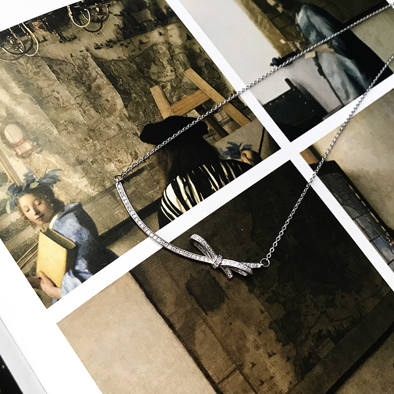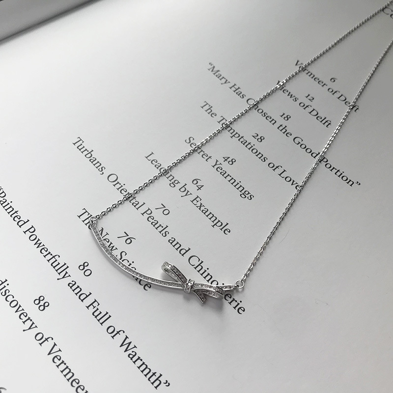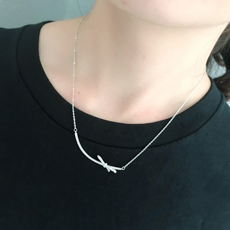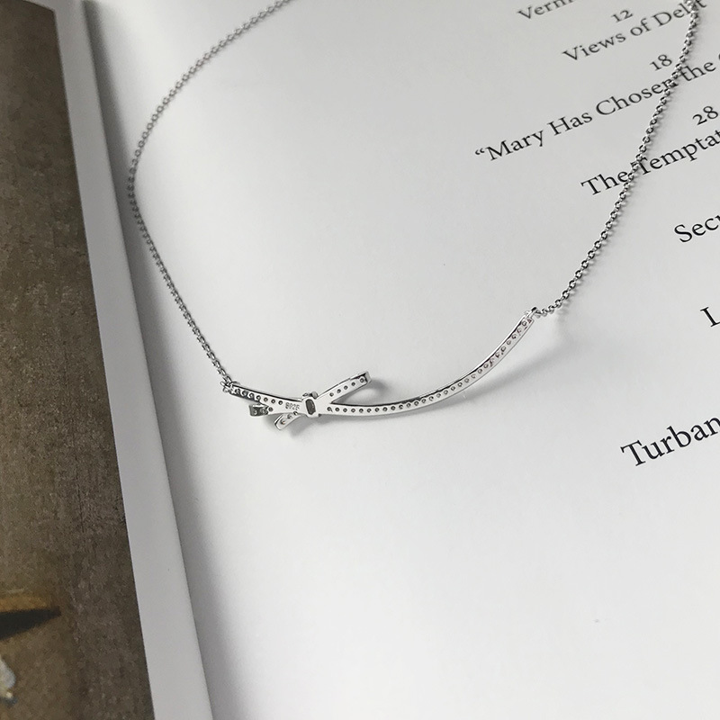 S925純銀輕奢迷人微笑的蝴蝶結吊墜項鍊鎖骨鍊 (微笑的蝴蝶結 925純銀)