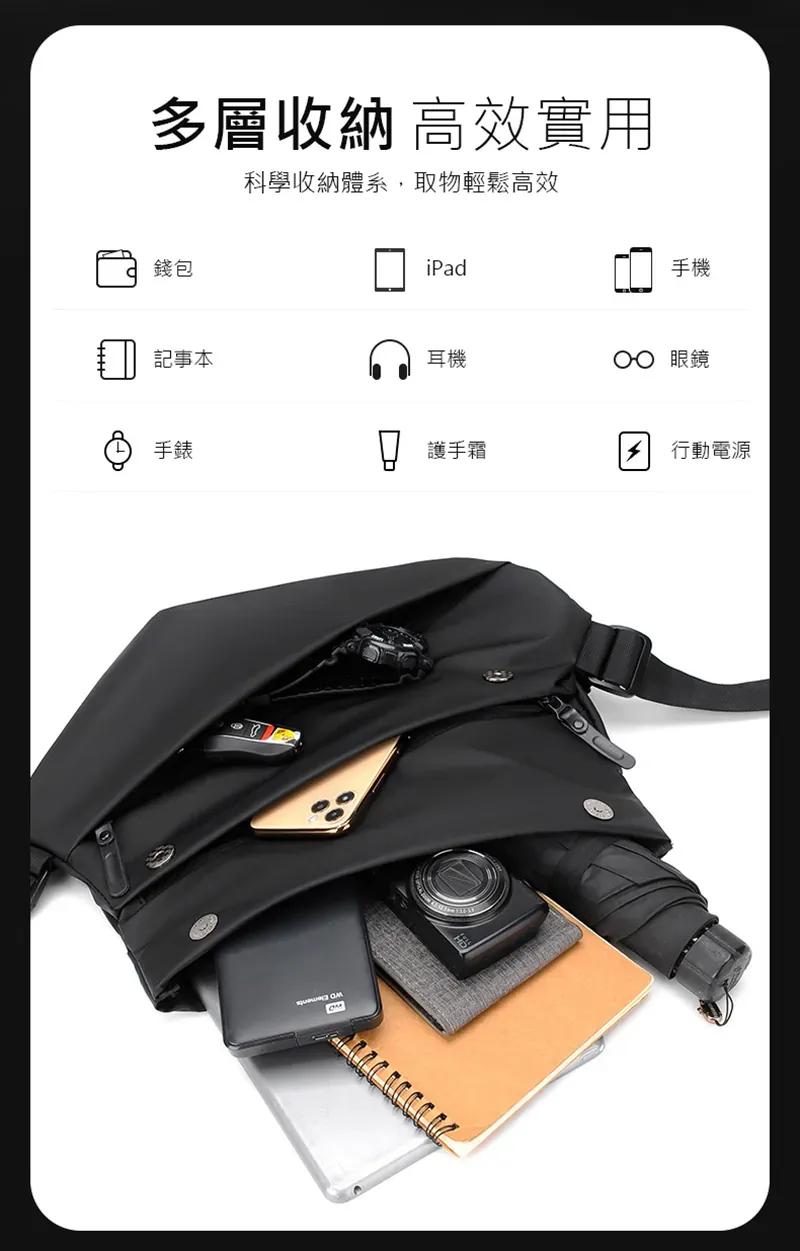 日式個性純色防盜胸包斜背包 | 快開式個性磁吸暗釦 | 耐磨耐刮防水面料 | 多層收納大容量 | 輕便男女個性斜背側背胸包