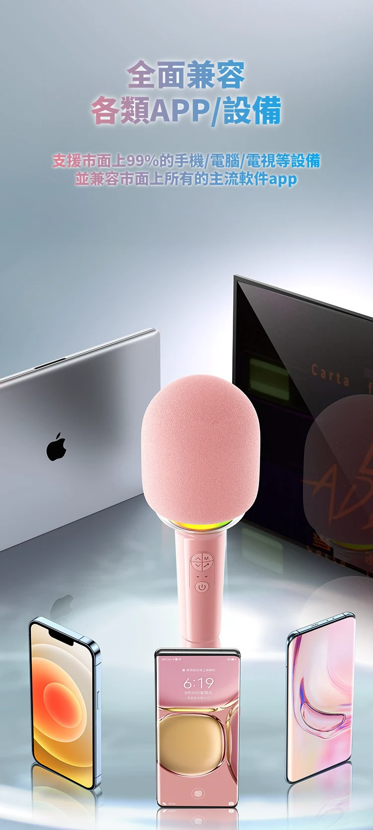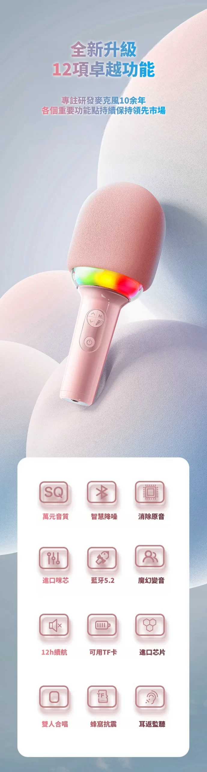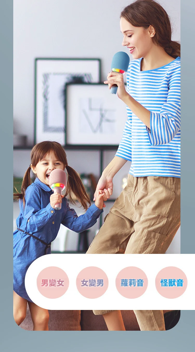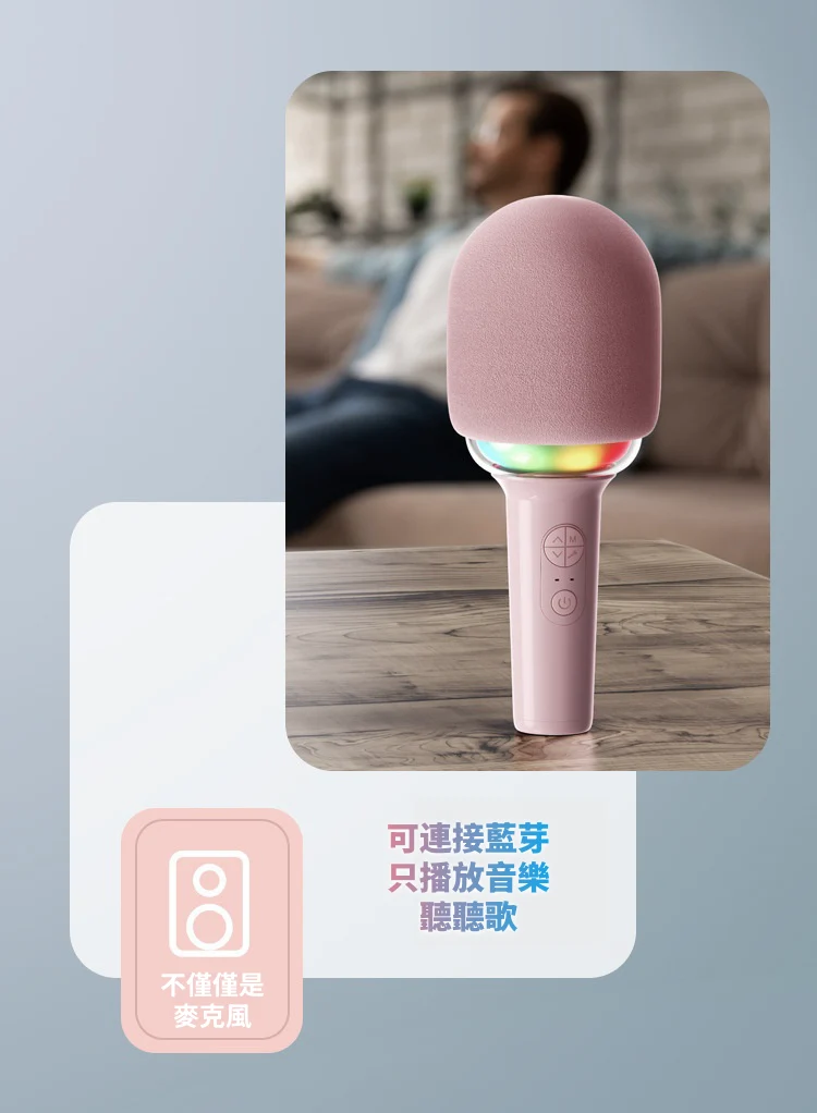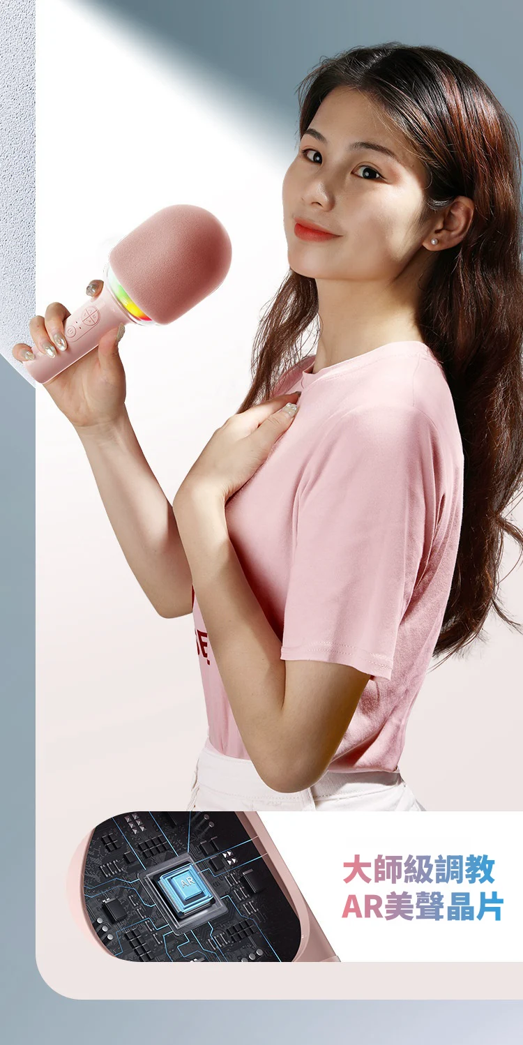 怎麼唱都好聽 | K歌之王藍芽喇叭麥克風 | 智慧修音歌聲更動人 | 一鍵消除原音 | 雙核DSP降噪 | 多種音效魔聲 | 超長續航暢玩一整天 | 氣氛K歌燈效
