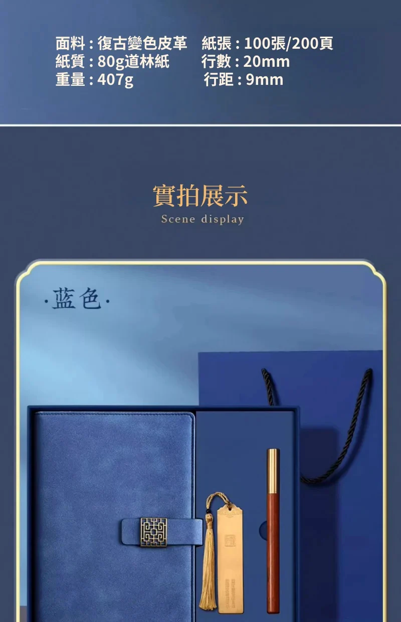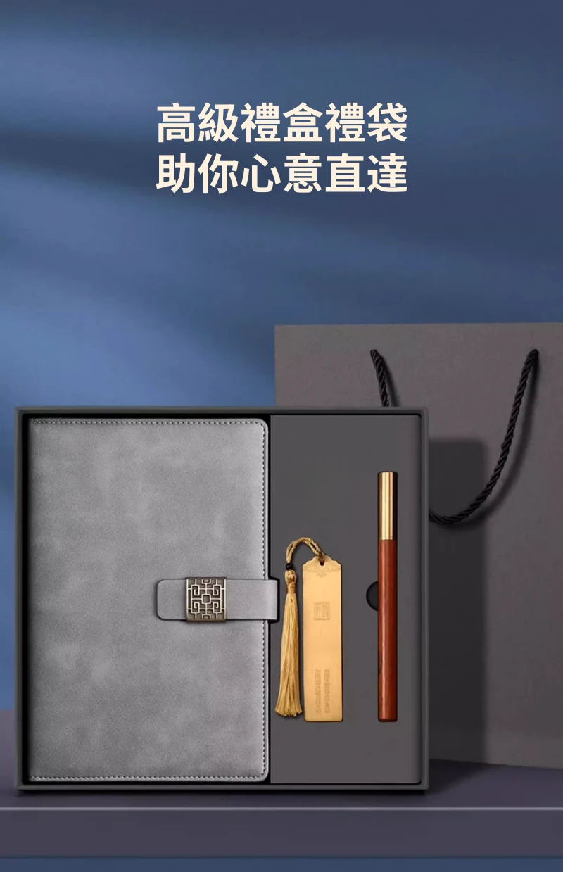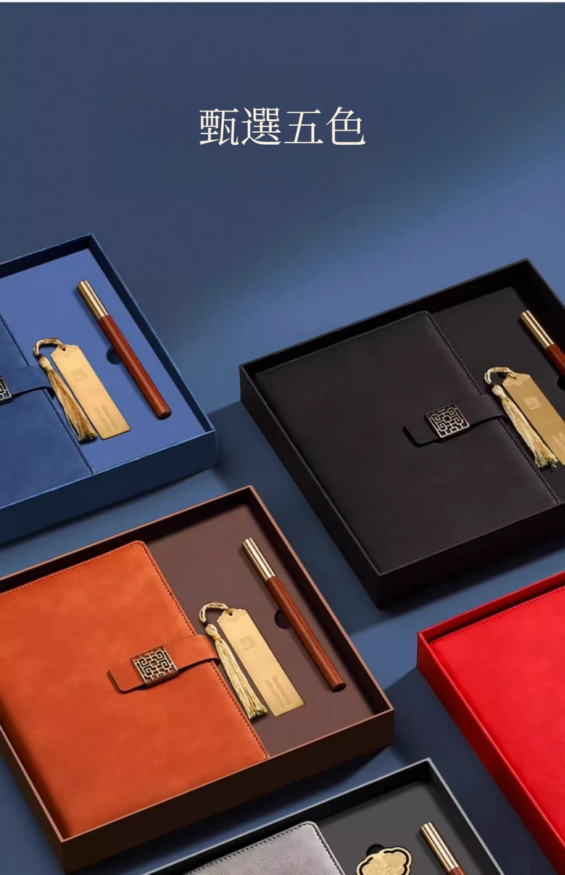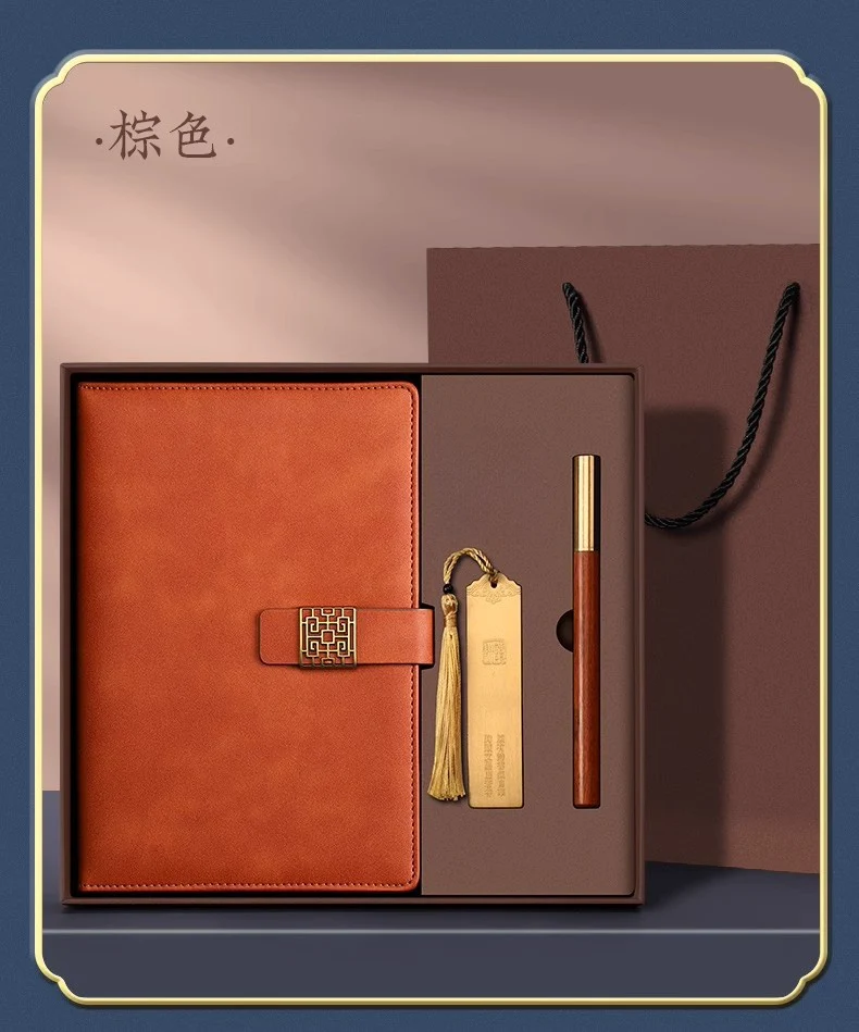 古風敘事高級皮面記事本禮盒組 | 高級配銅帽檀木筆 | 加厚80g道林紙 | 精美黃銅書籤 | 復古磨砂皮面 | 高檔送師友畢業交換禮物記事本禮盒組