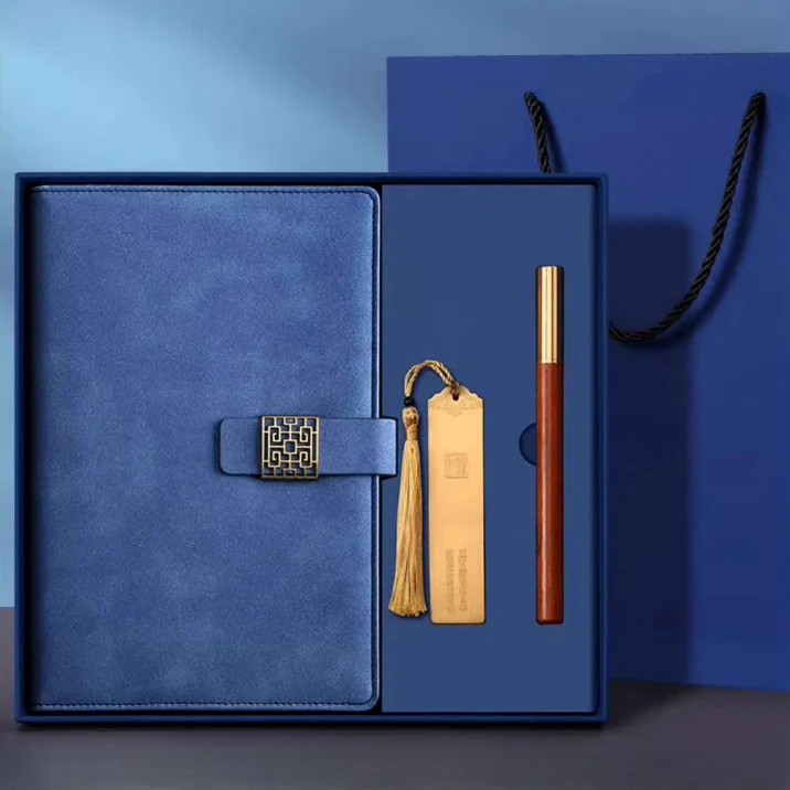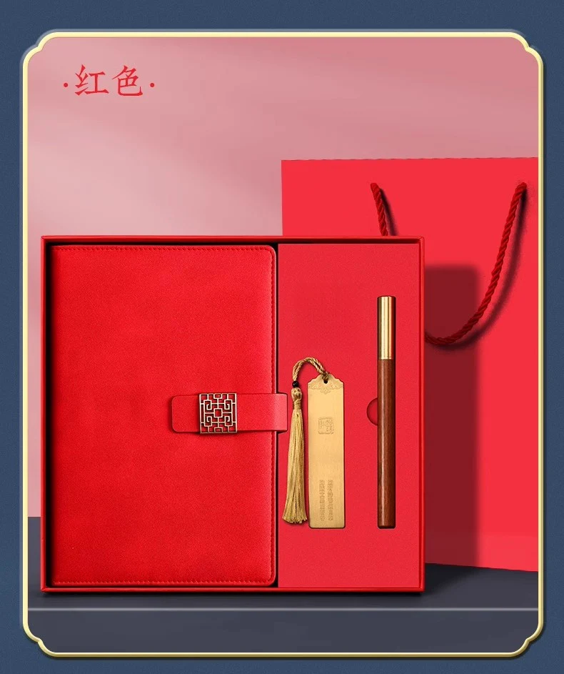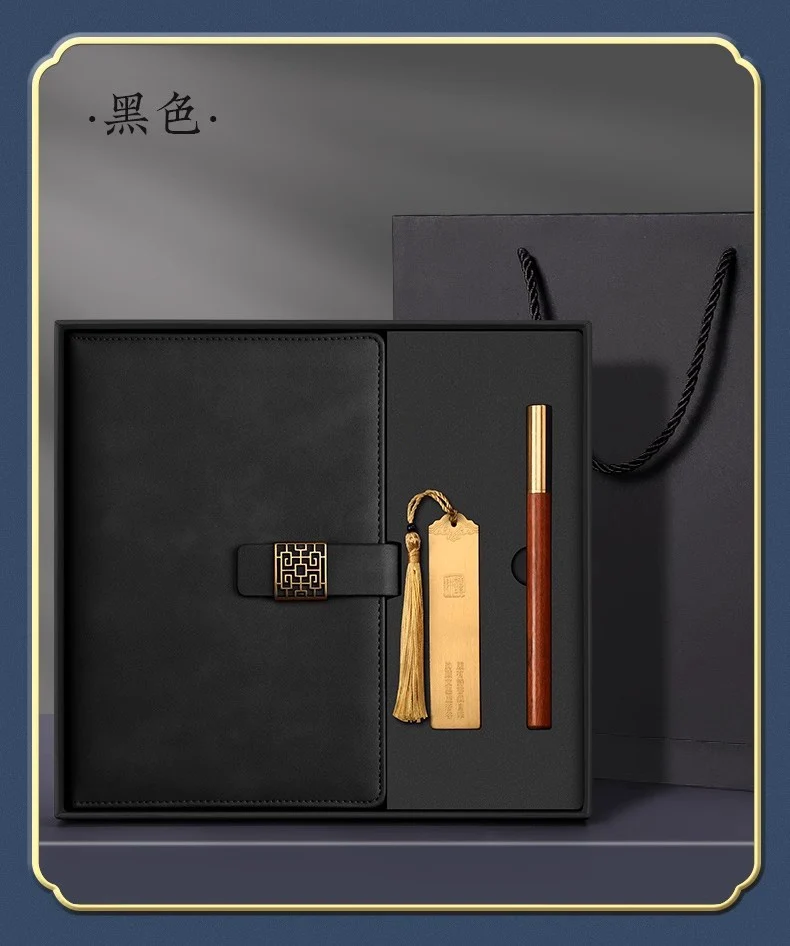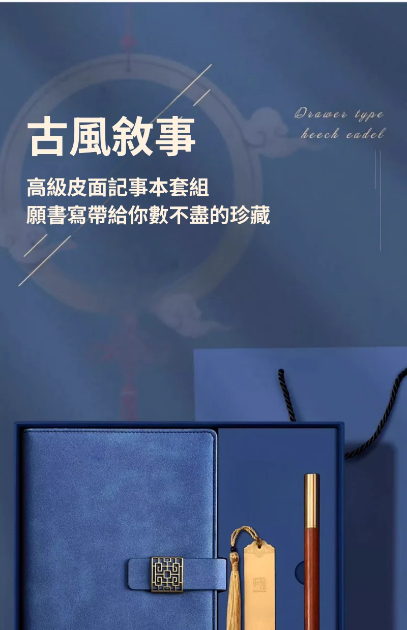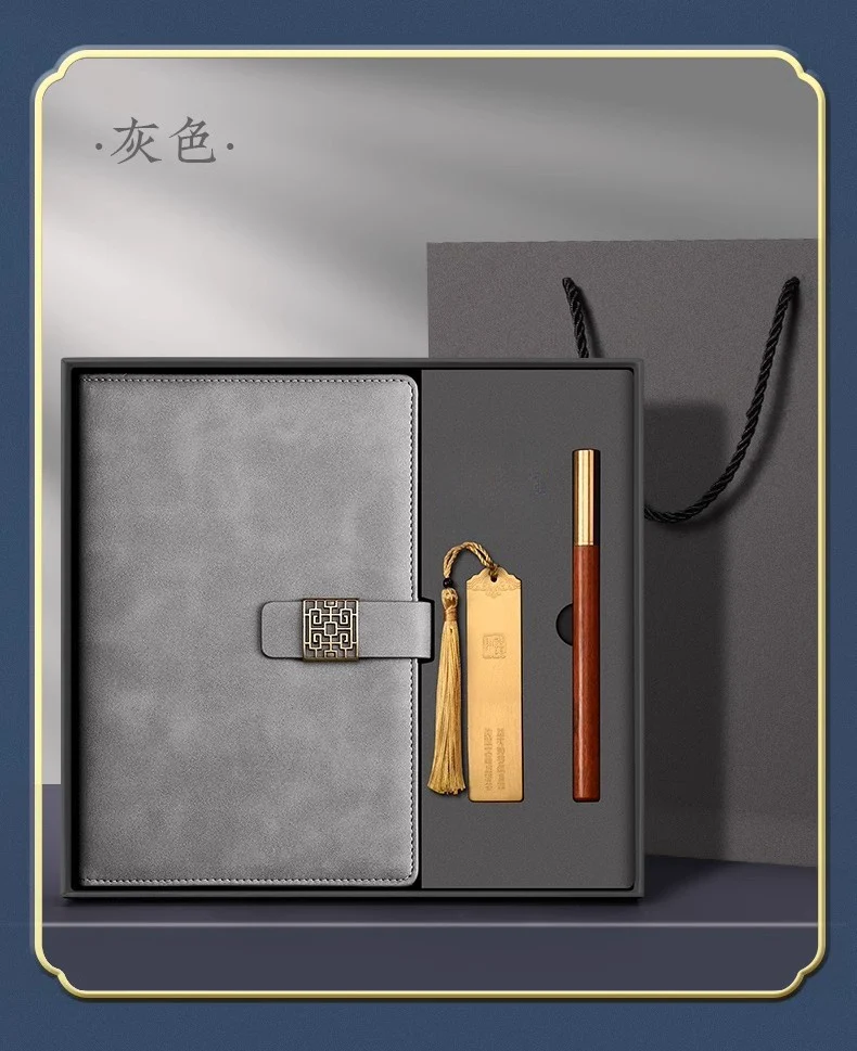古風敘事高級皮面記事本禮盒組 | 高級配銅帽檀木筆 | 加厚80g道林紙 | 精美黃銅書籤 | 復古磨砂皮面 | 高檔送師友畢業交換禮物記事本禮盒組