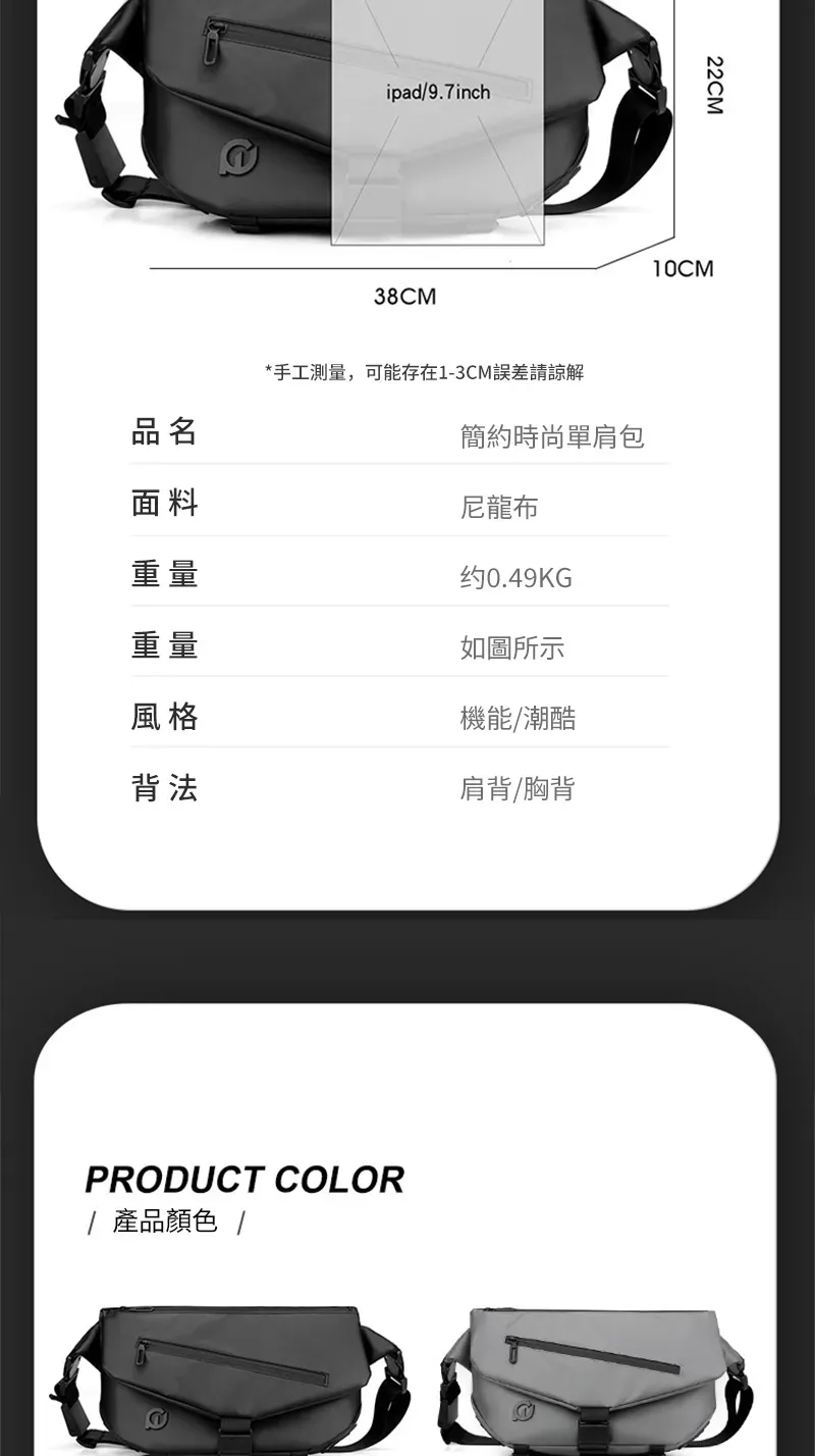 小眾個性暗夜飛行斜背包 | 高密防水尼龍面料 | 大容量多隔層科學收納 | 乾濕分離可放雨傘 | 日本設計師款個性男士胸包斜背包
