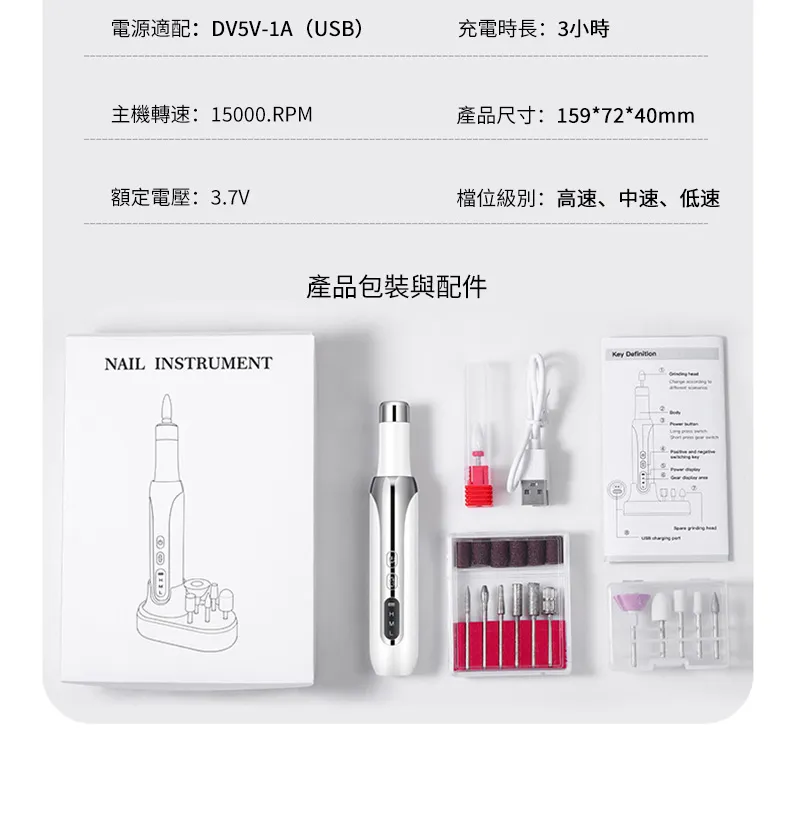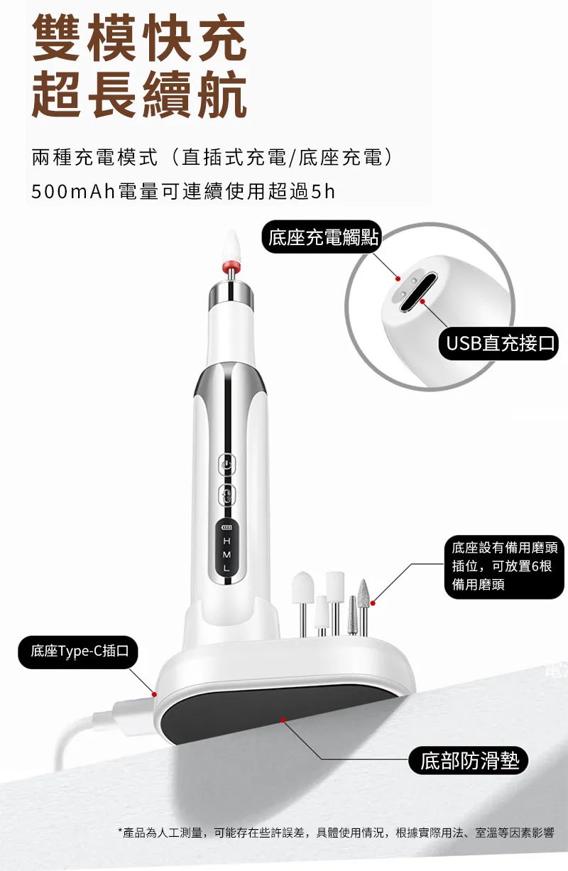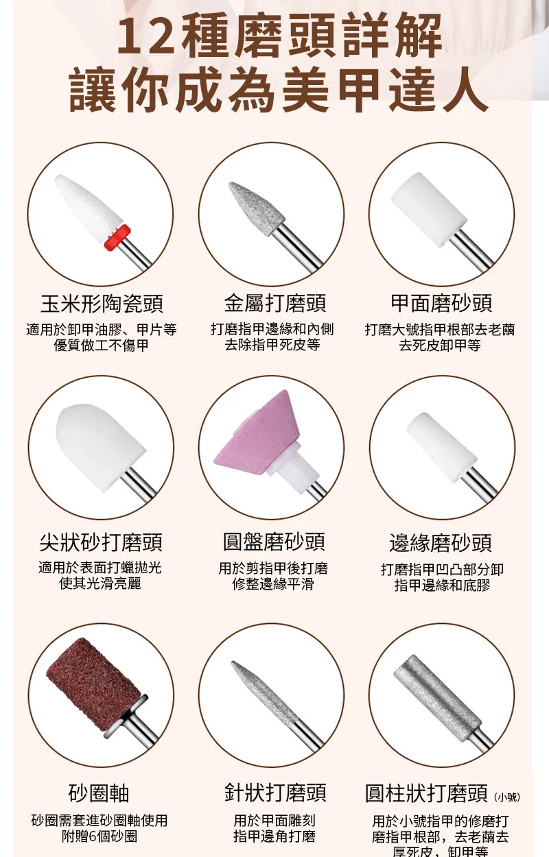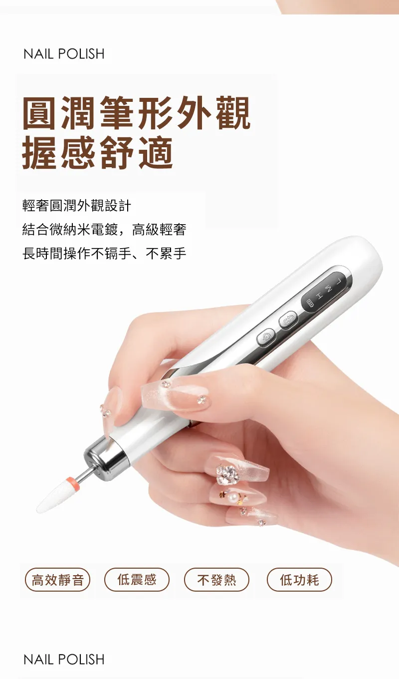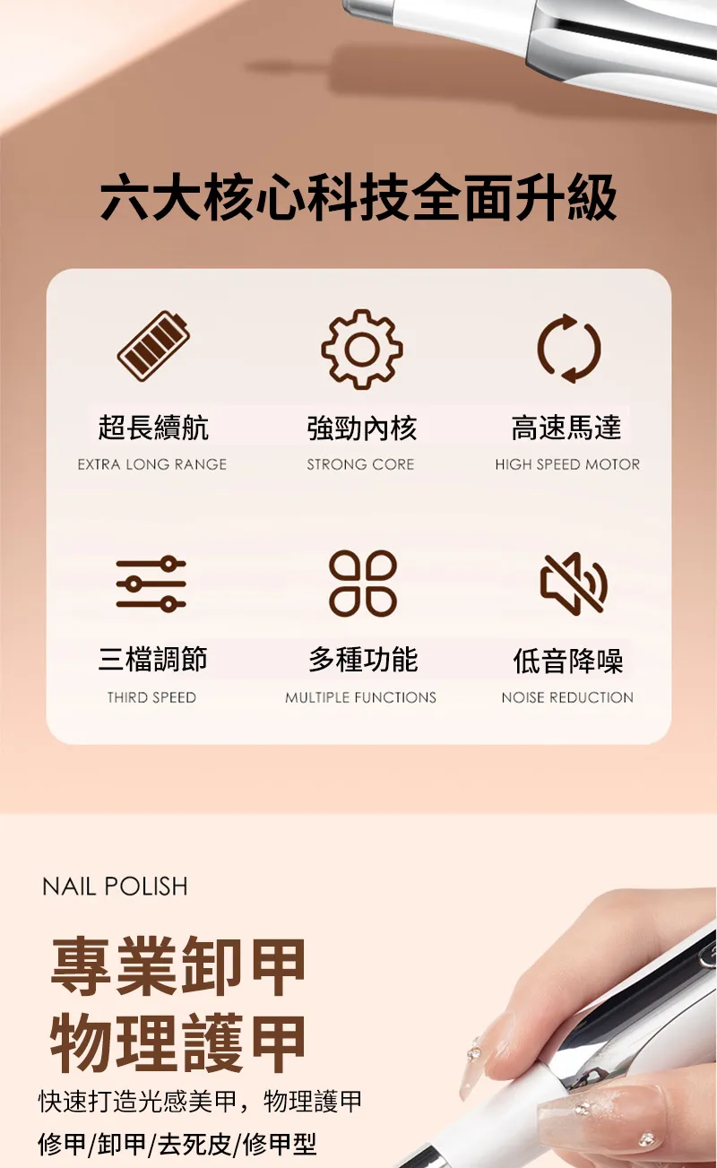美學沙龍級全功能電動美甲機 | 30秒打造光感美甲 | 卸磨拋修去死皮全功能 | 三檔雙向強勁低音馬達 | 雙模快充超長續航 | 附送12種打磨頭修甲儀