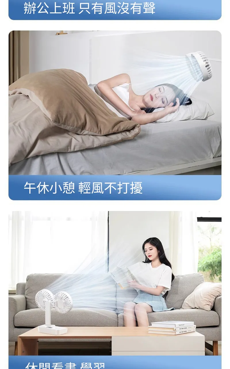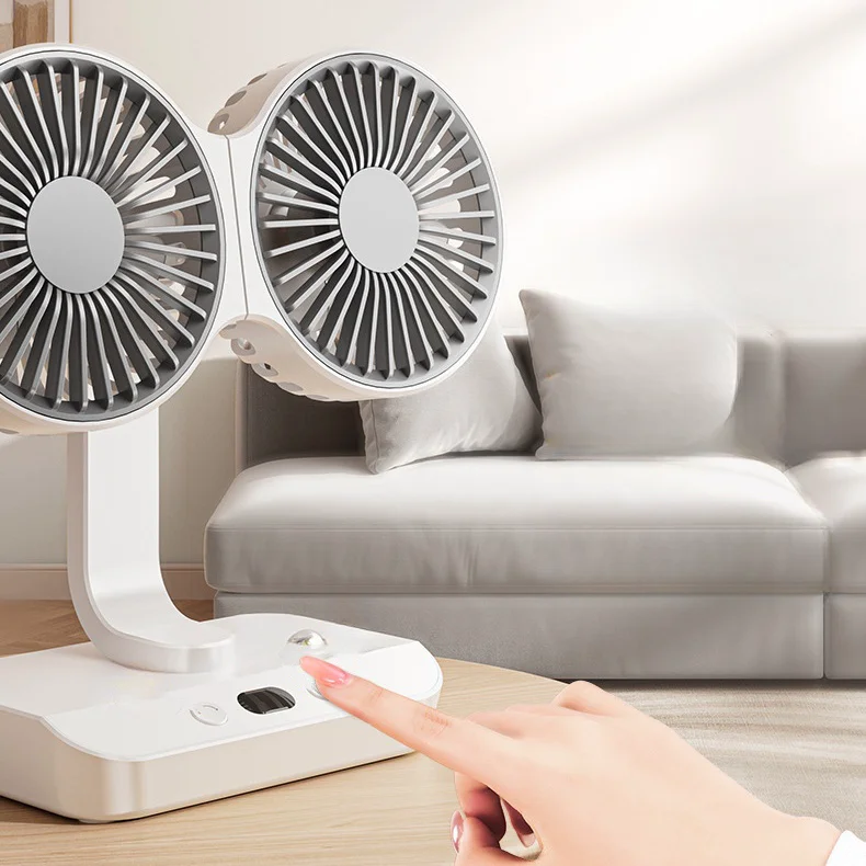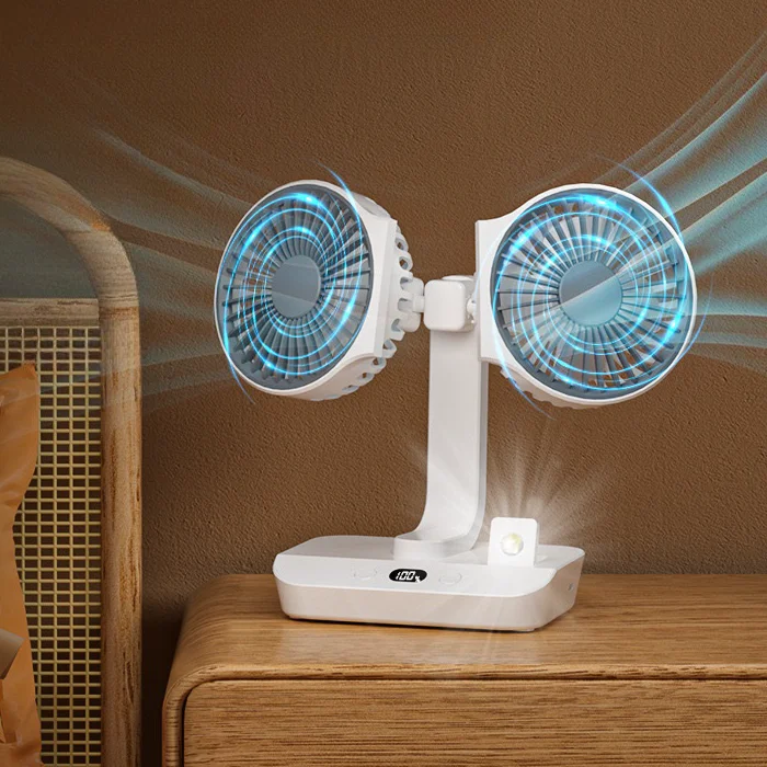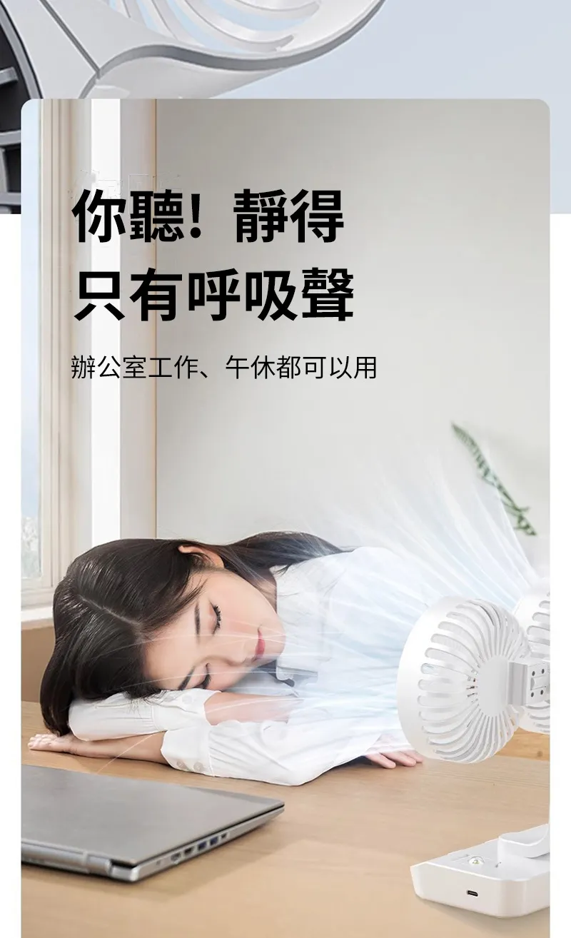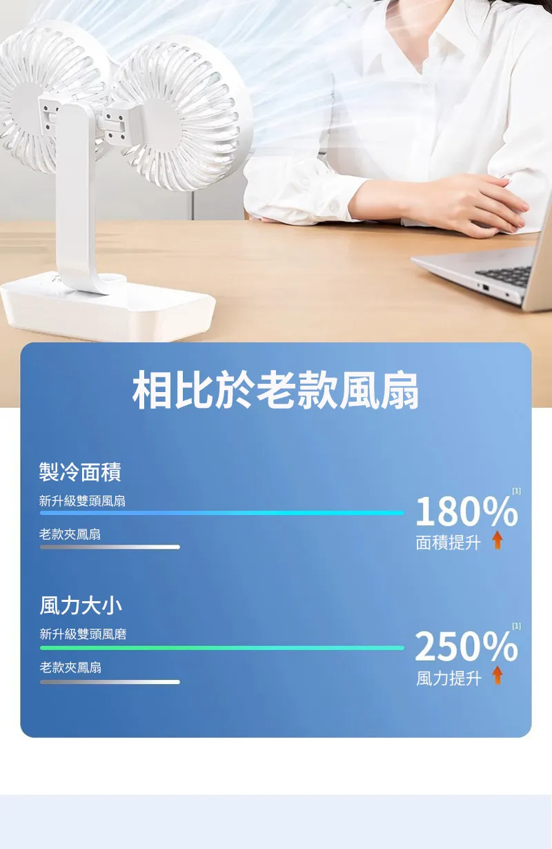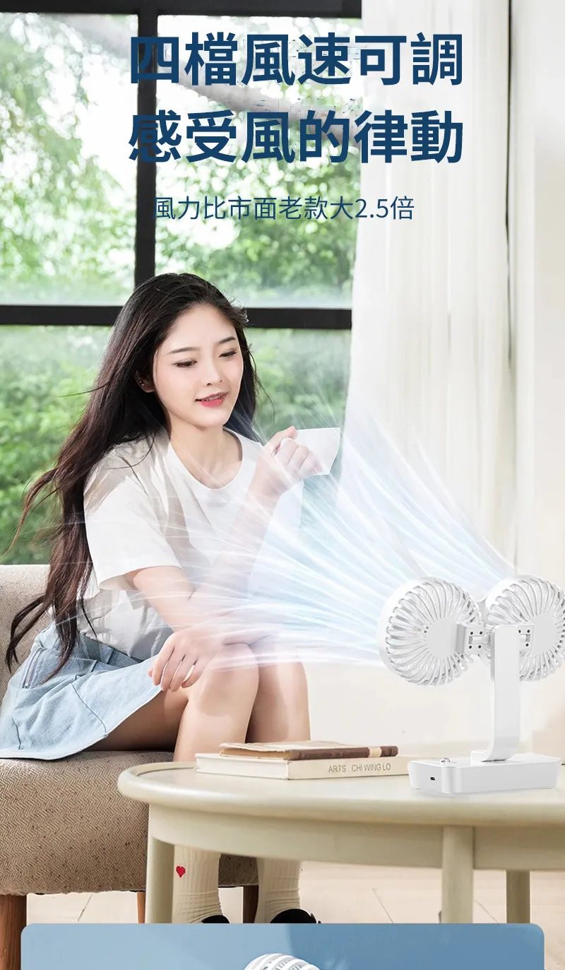 頂配旗艦颶風級雙頭風扇 | 多角度定點懸停 | 雙馬達3米大風 | 六葉渦輪扇葉 | 四檔風速可調 | 舒爽自動搖頭 | 無線超長續航 | USB桌掛兩用風扇