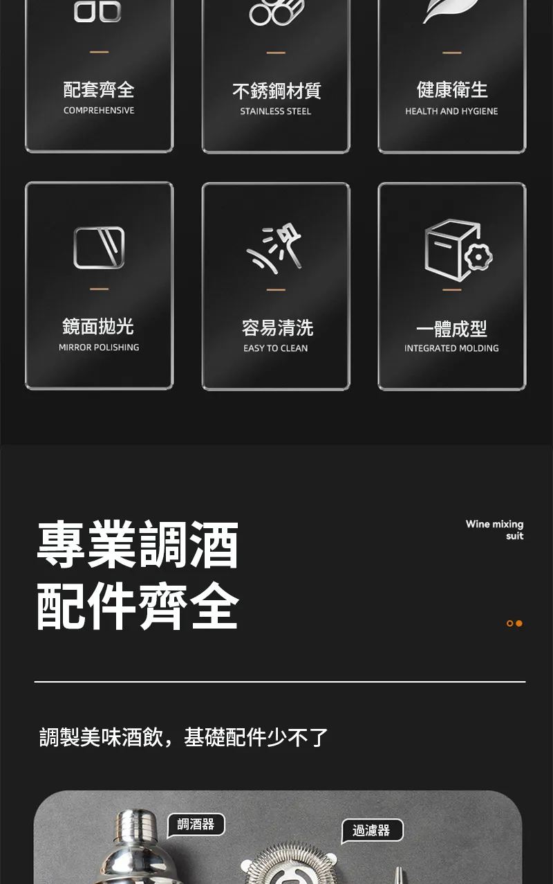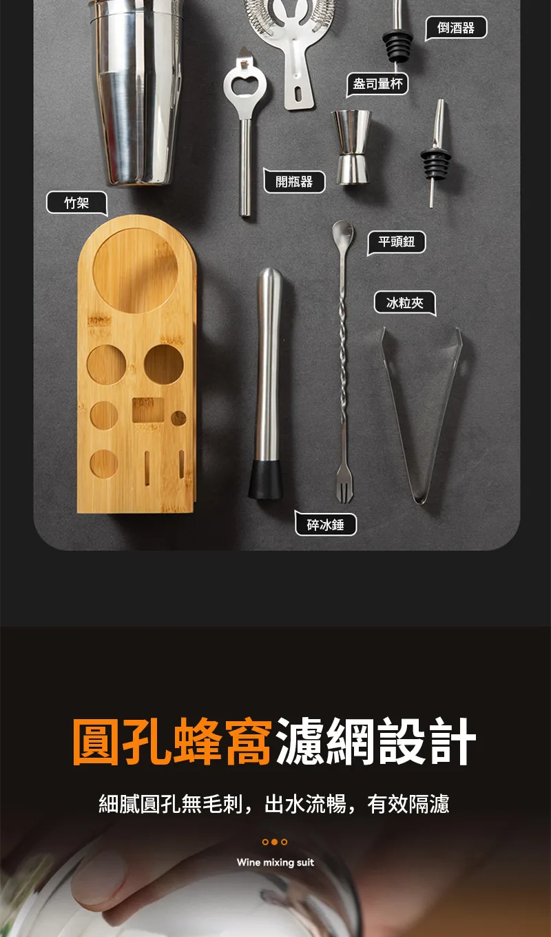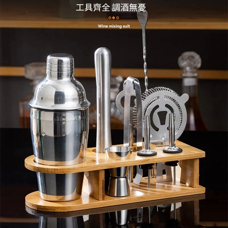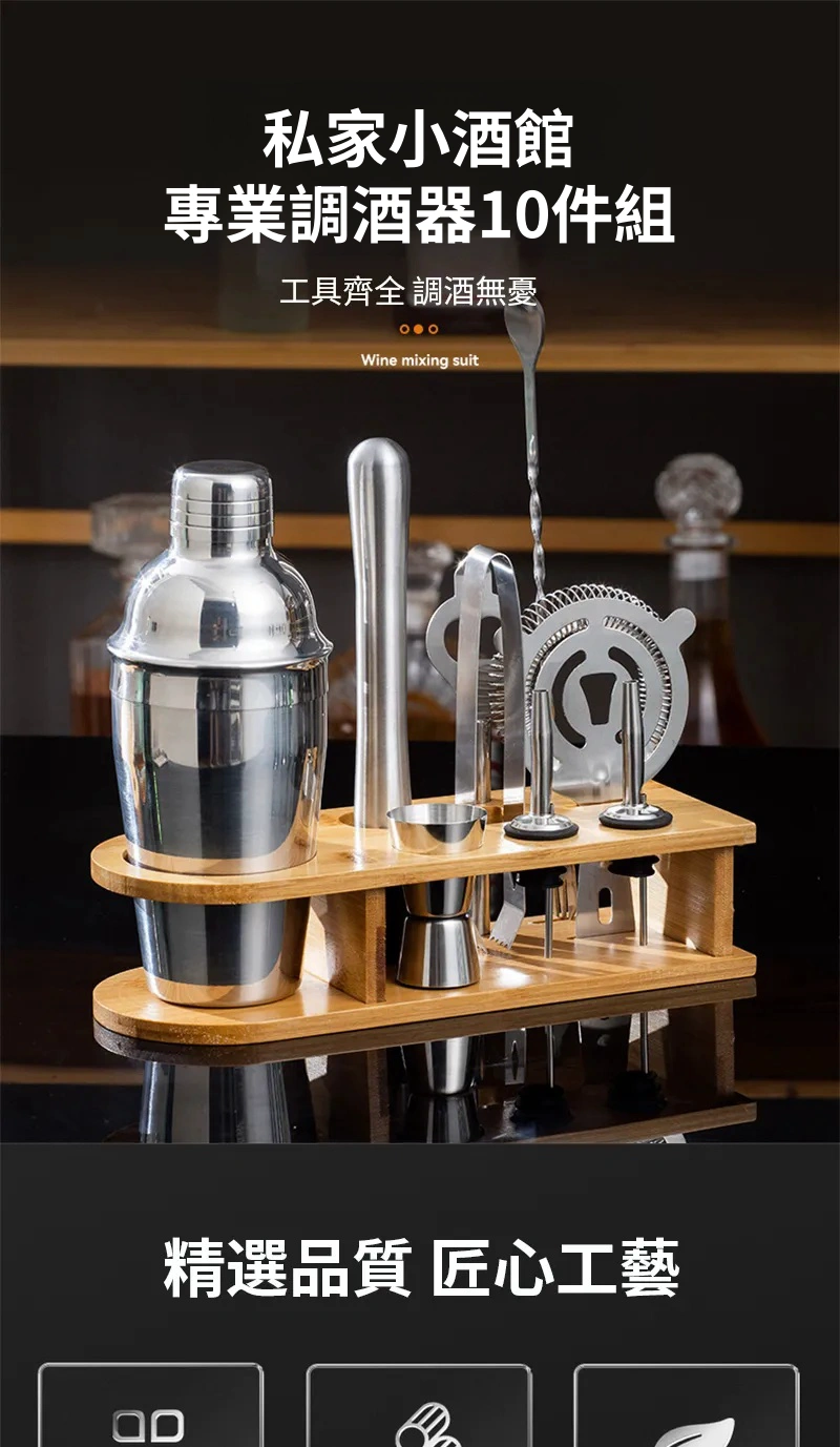 SGS認證專業級全功能私家調酒器十件套組 | 鎢鋼模具狂搖不漏 | 加厚克重完美手感 | 鏡面拋光耐腐耐氧化 | 一體成型易拆易洗 | 高級竹木收納底座