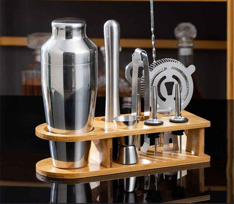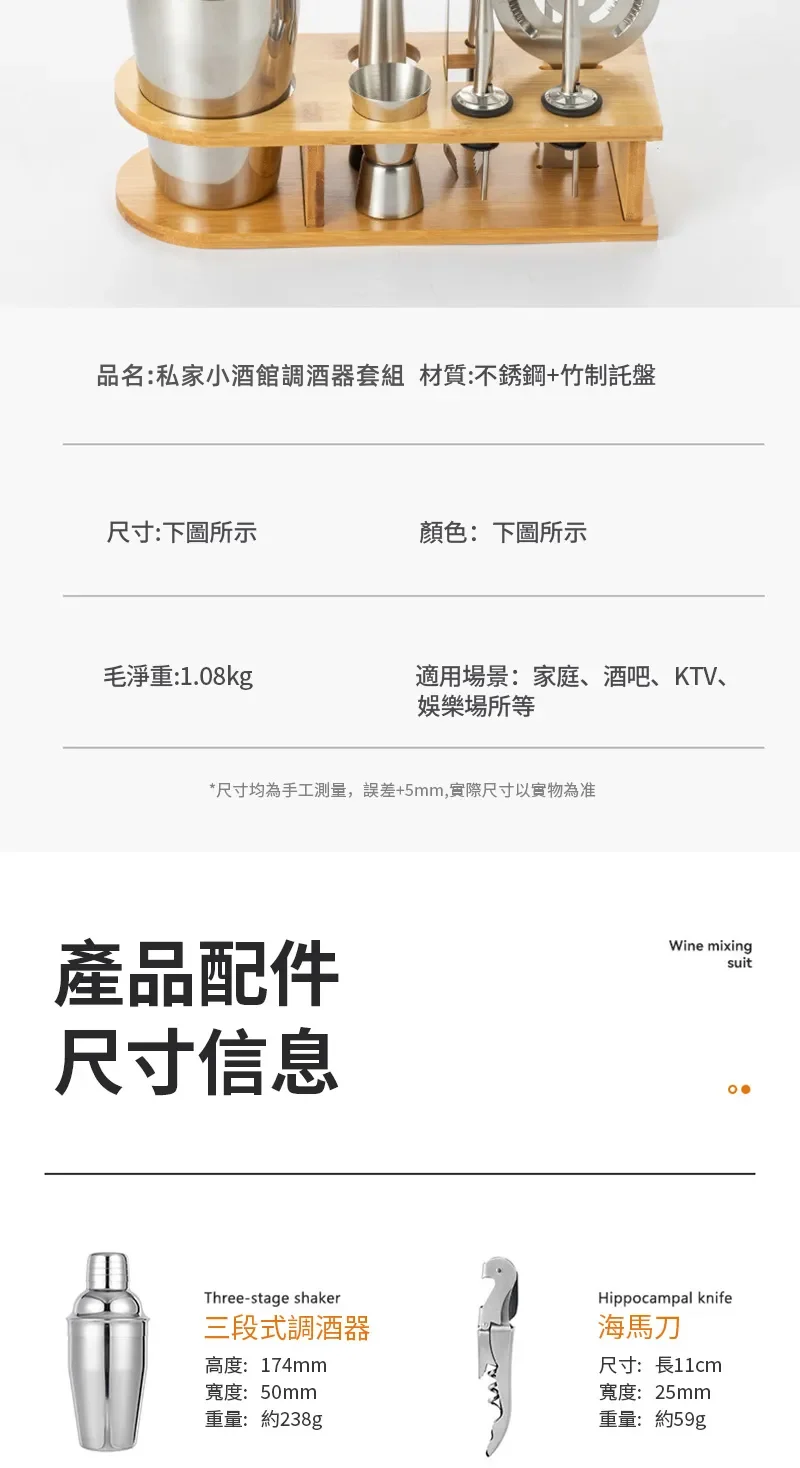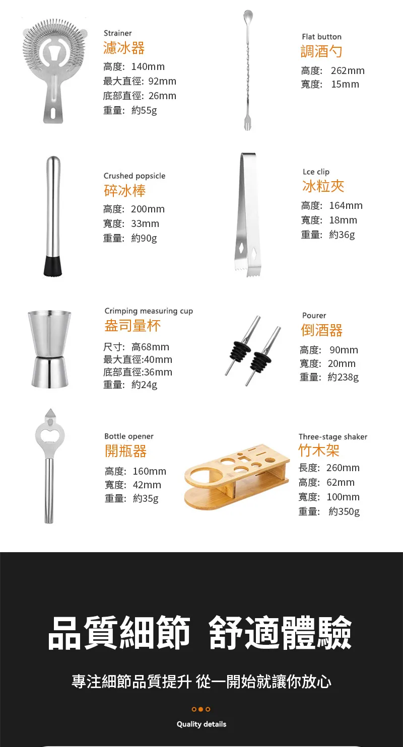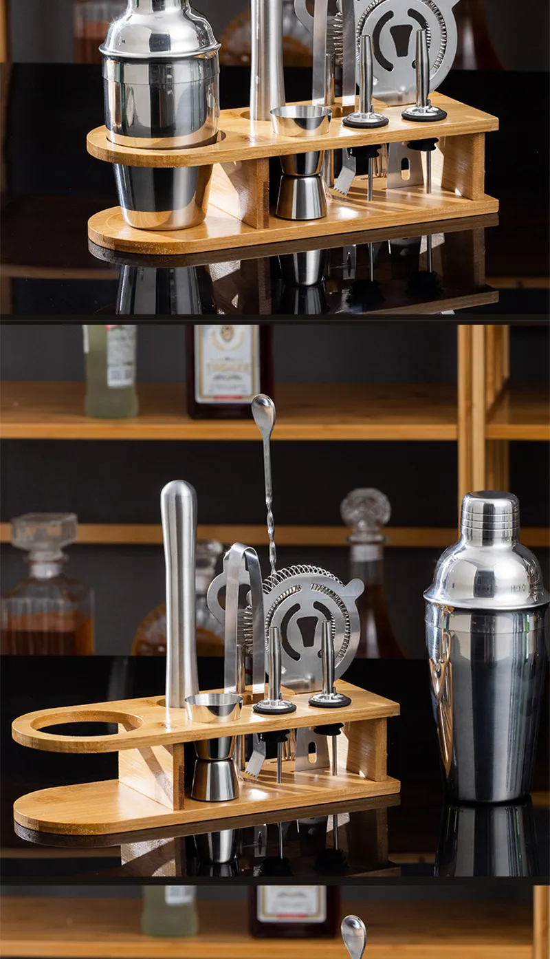 SGS認證專業級全功能私家調酒器十件套組 | 鎢鋼模具狂搖不漏 | 加厚克重完美手感 | 鏡面拋光耐腐耐氧化 | 一體成型易拆易洗 | 高級竹木收納底座