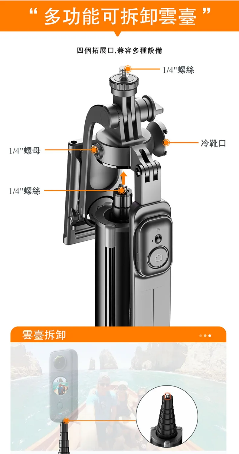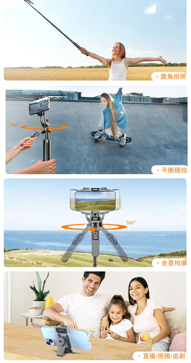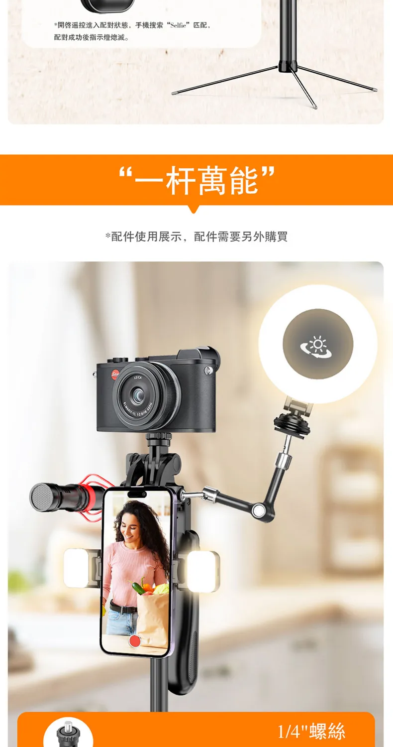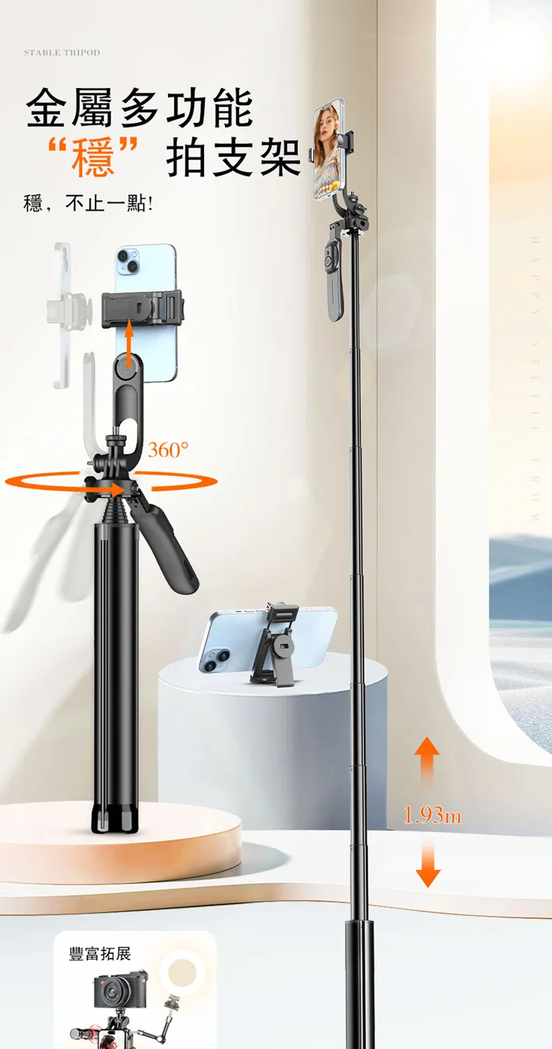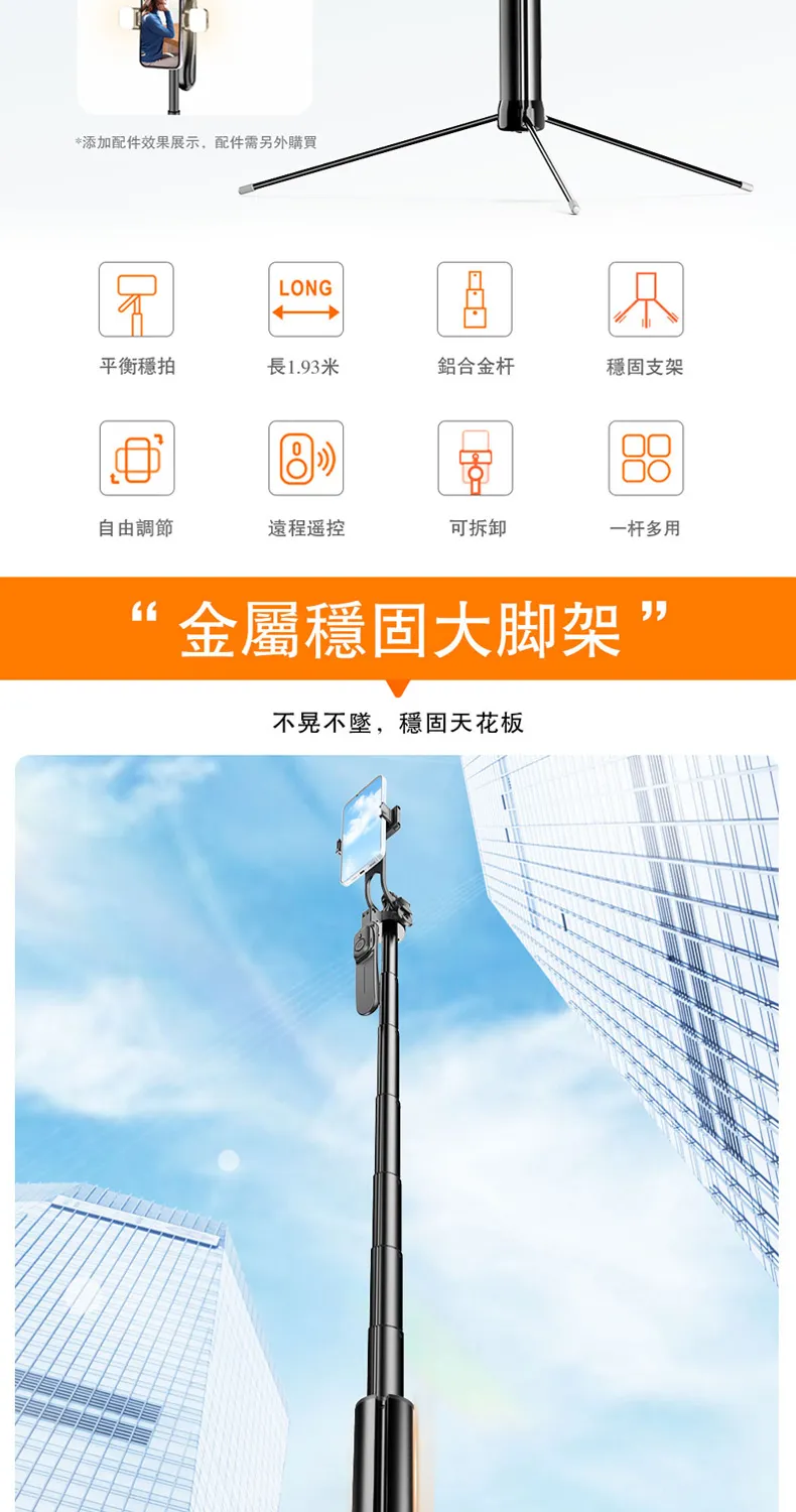 至尊頂配專業級全功能雲台腳架 | 平衡穩拍手抖畫面不抖 | 無線藍芽遙控操作 | 1.93米鋁合金拉桿 | 360度全景環拍 | 萬向調節直播雲台自拍腳架