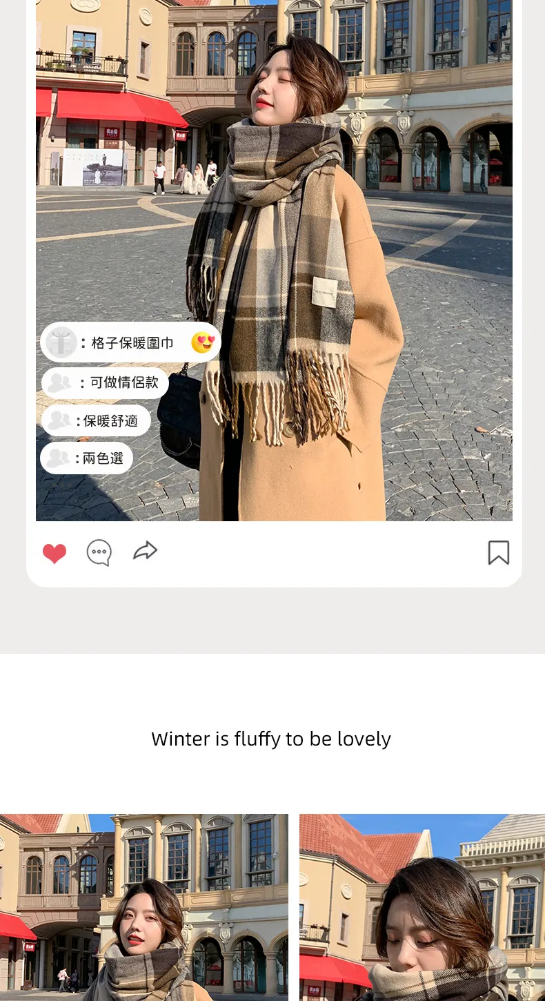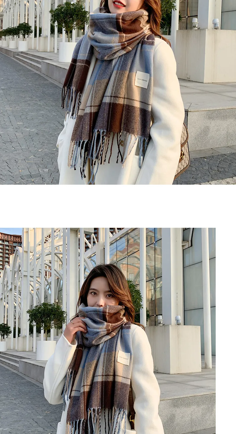 歐式復古顯白拼色格紋圍巾 | 超軟糯厚實羊絨手感 | 加長款式可做披肩 | 氣質減齡軟糯厚實加長女生格紋保暖圍巾