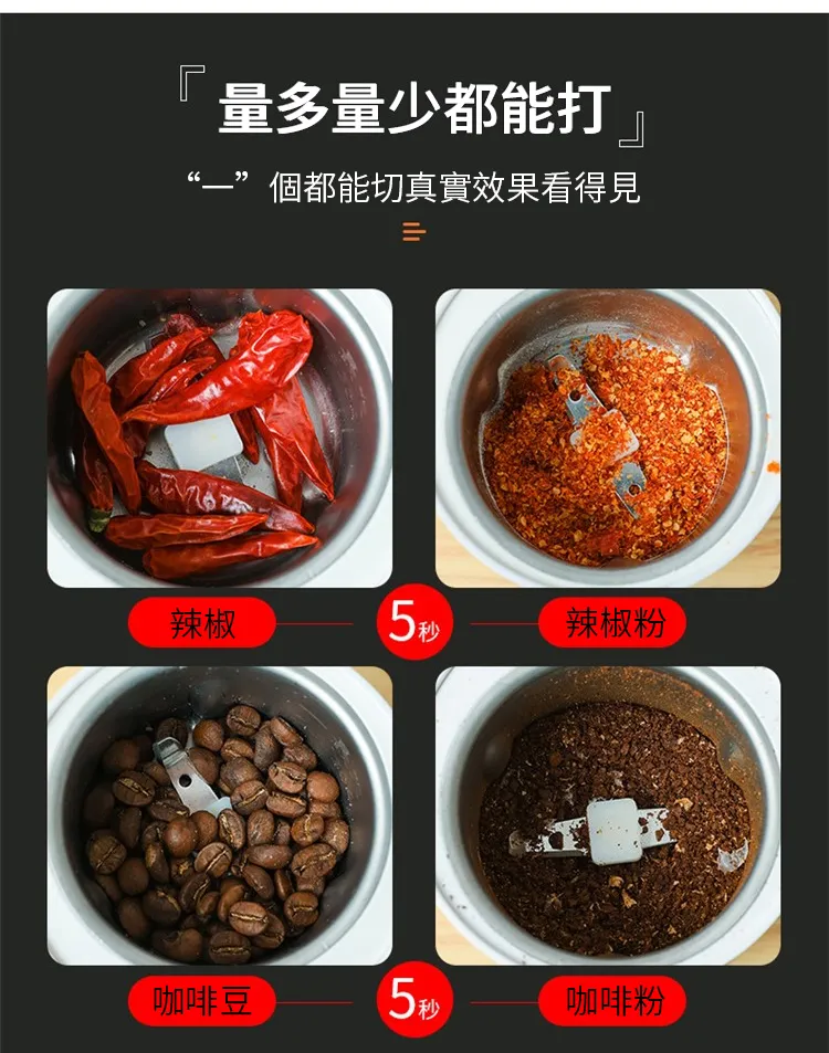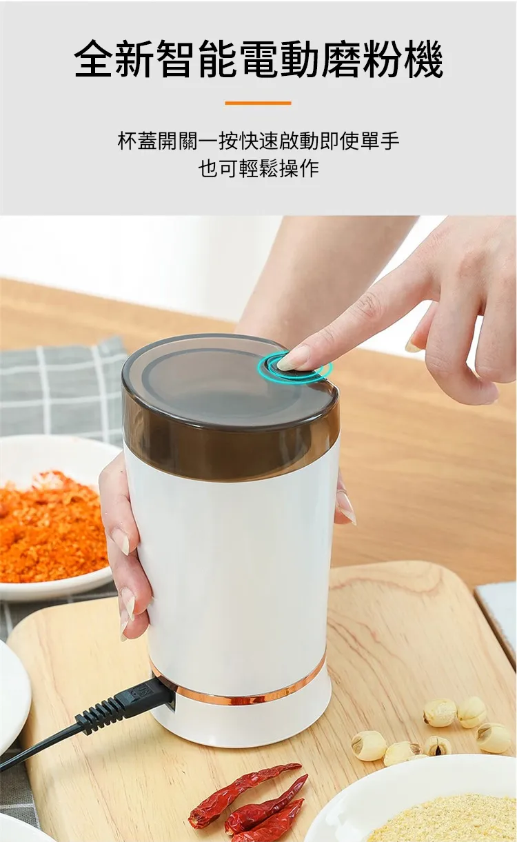 超好用小型全食材電動磨粉機研磨杯 | 強勁馬達細膩出粉 | 304食品級不鏽鋼 | 一字雙刃精鋼刀片 | 快速出粉五穀雜糧咖啡豆黃豆辣椒粉研磨機
