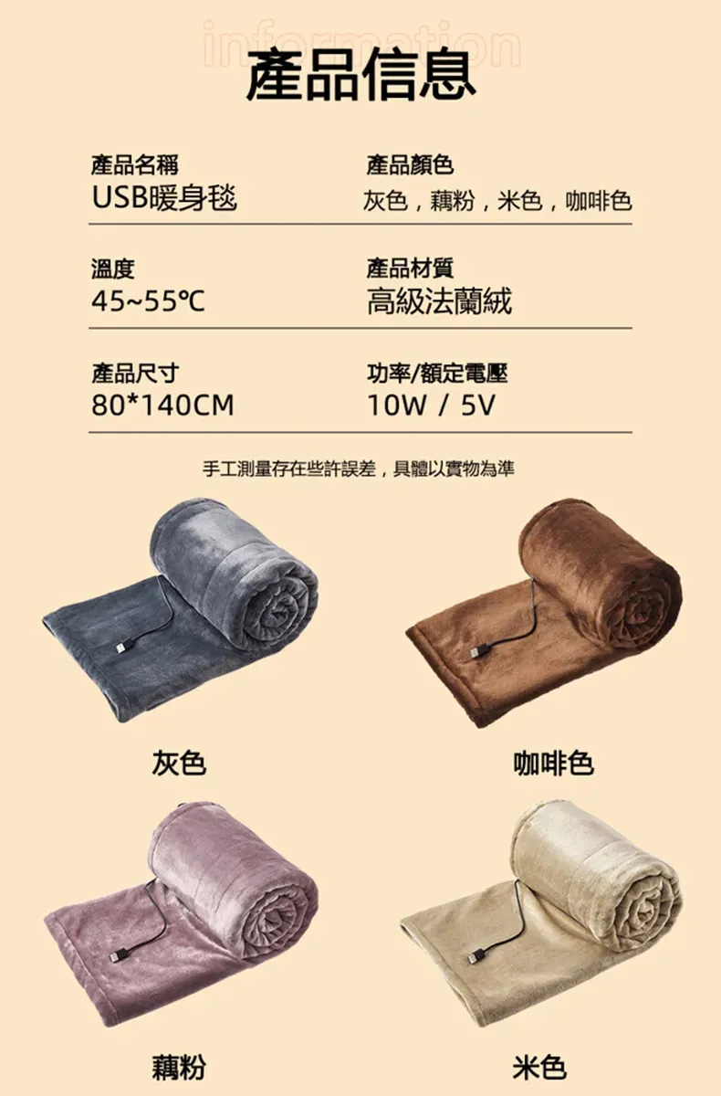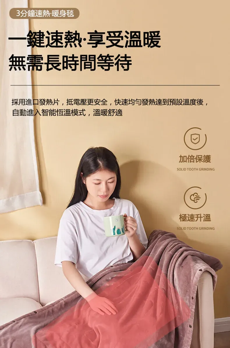 奢級加厚法蘭絨恆溫電毯暖身毯 | USB供電低電壓更安全 | 一鍵速熱多檔調溫 | 超柔親膚法蘭絨 | 支援機洗超方便| 多重安全漏電保護發熱蓋毯