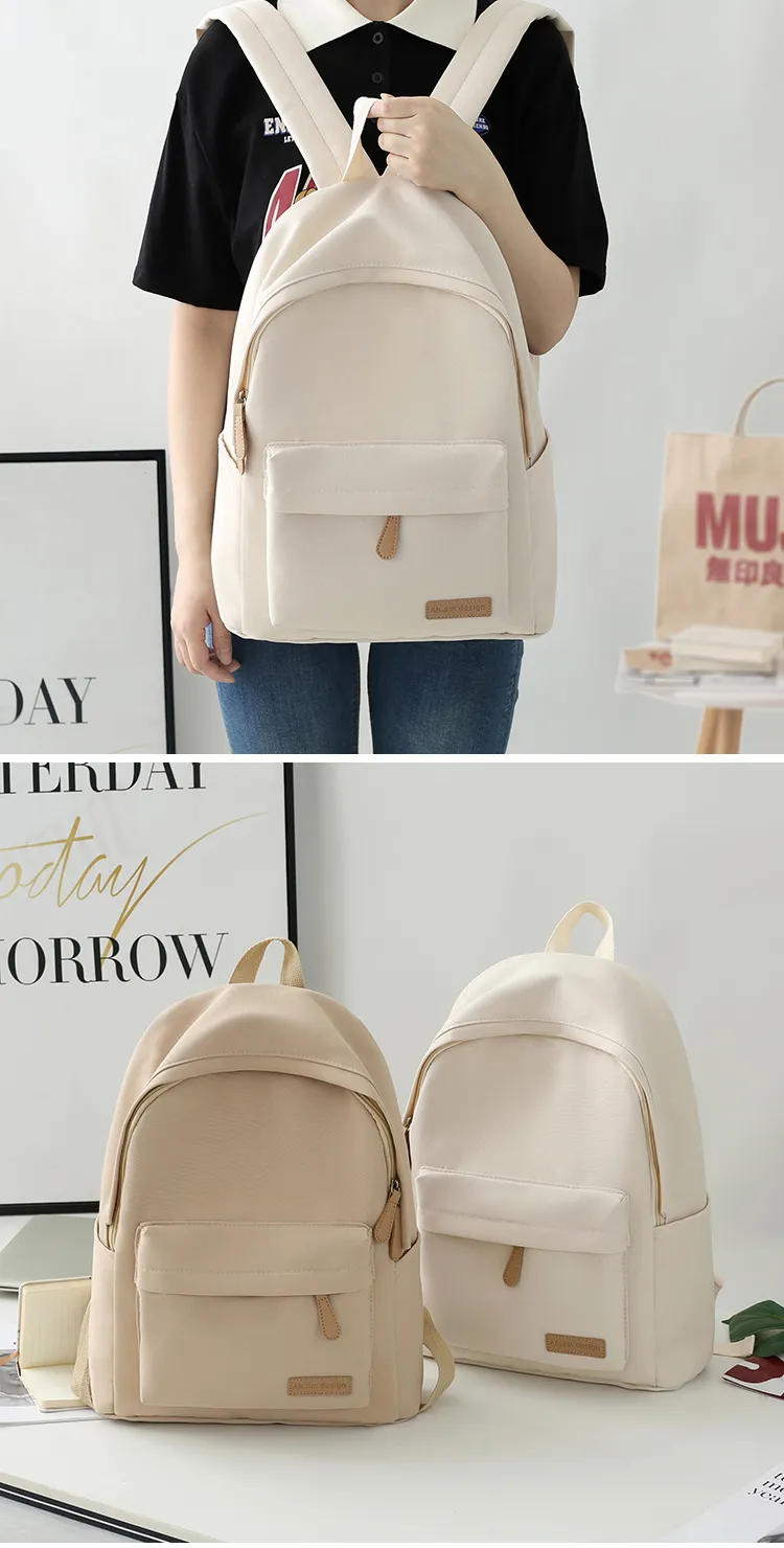 文藝森系純色帆布後背包 | 防潑水順滑牛津布 | 大容量好收納 | 加寬肩帶舒適不勒 | 百搭減齡學院風女生後背包