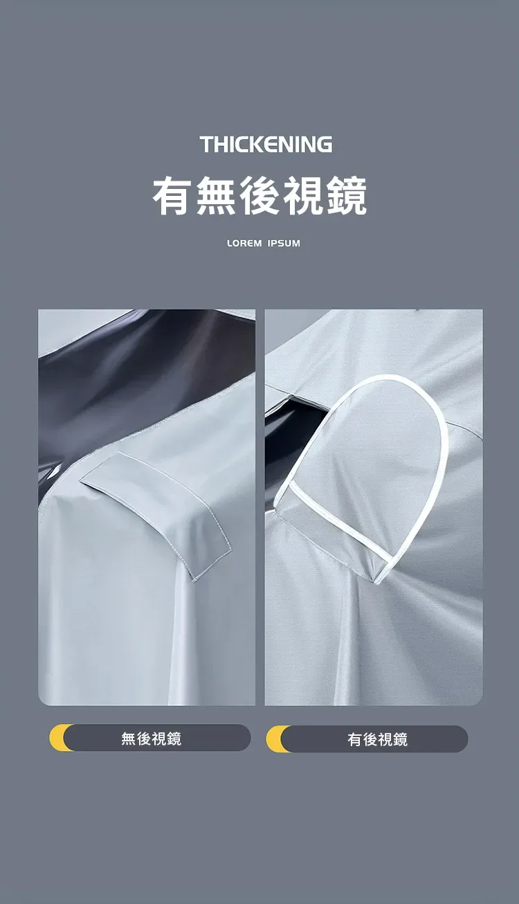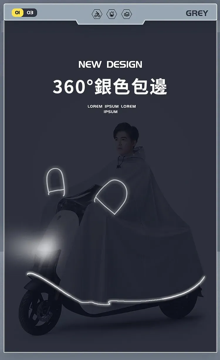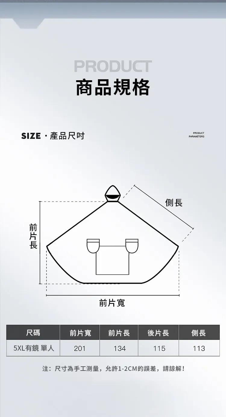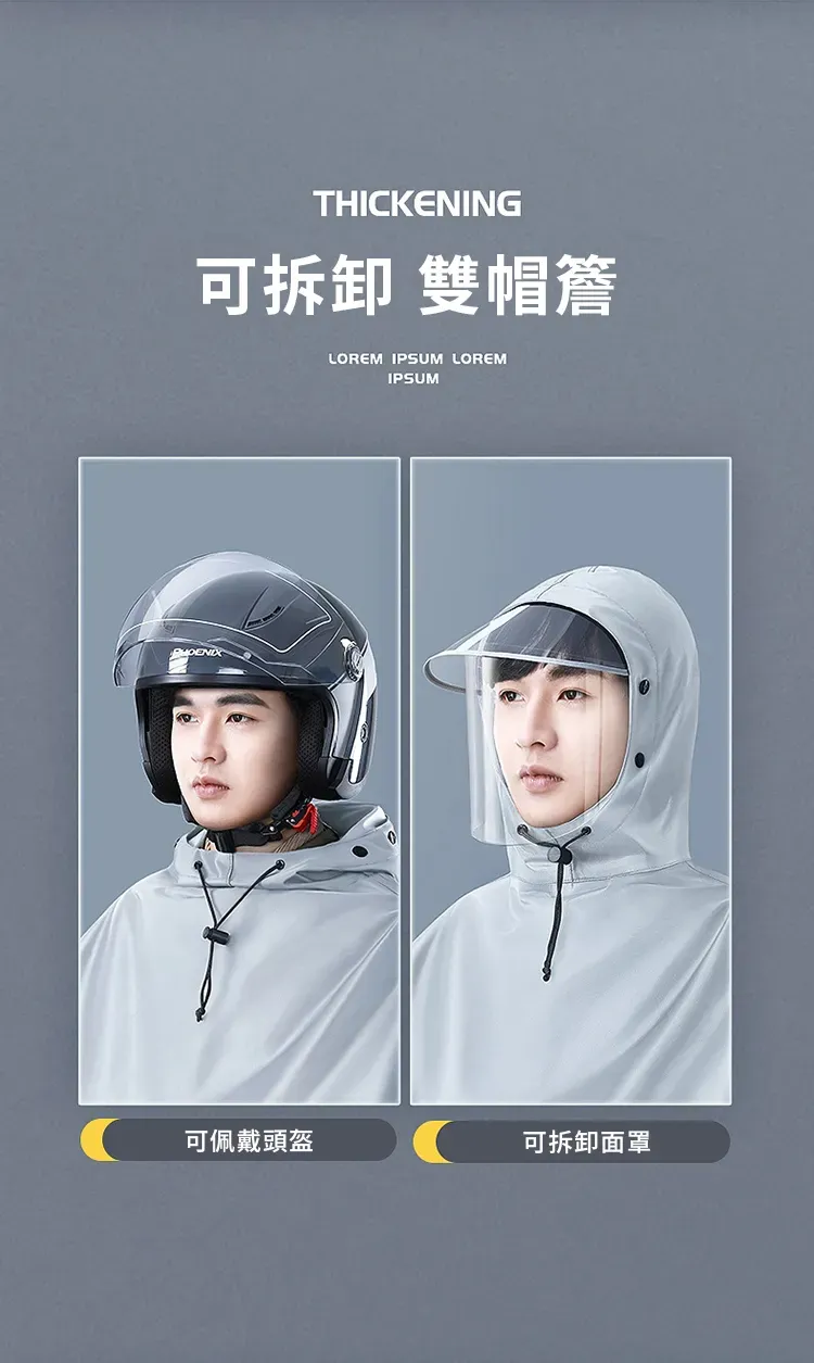 暴雨級全功能旗艦高清可視機車雨衣 | 前透設計不檔車燈 | 可拆卸雙帽簷 | 安全銀色反光條 | 加厚密閉防水面料 | 不挑車型暴雨颶風級機車雨衣