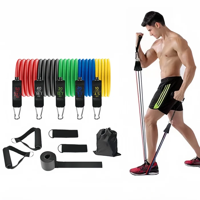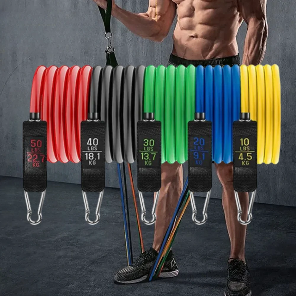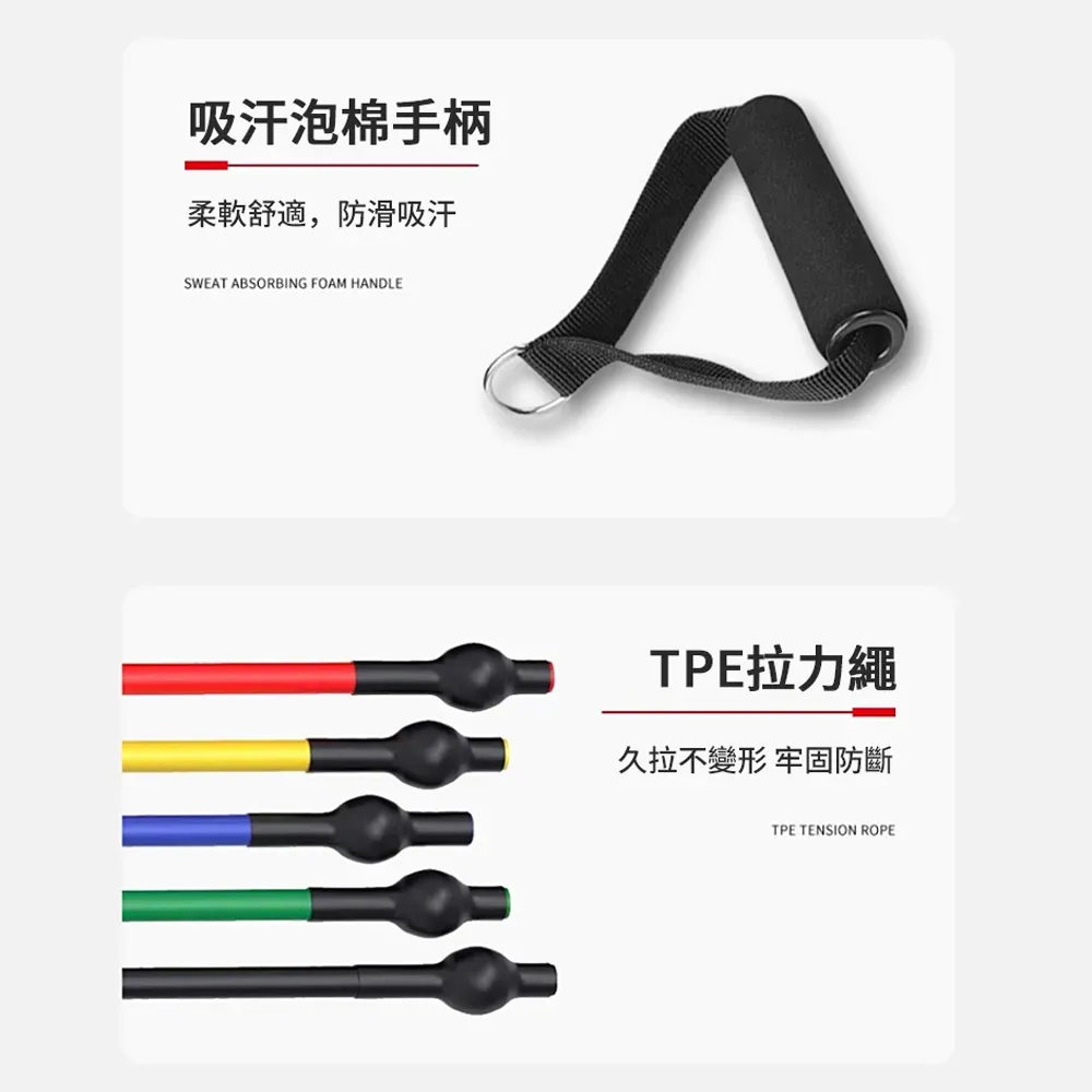 全身增肌健身神器11件套拉力器組 | 胸肌手臂大小腿全訓練 | 安全牢固防斷TPE | 高延展回彈不變形 | 吸汗泡棉手把 | 150磅胸肌臂肌拉力器11件組