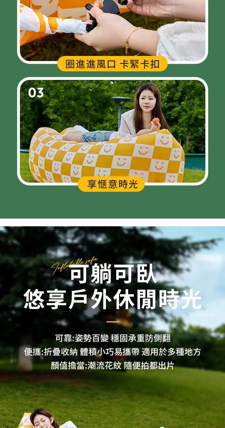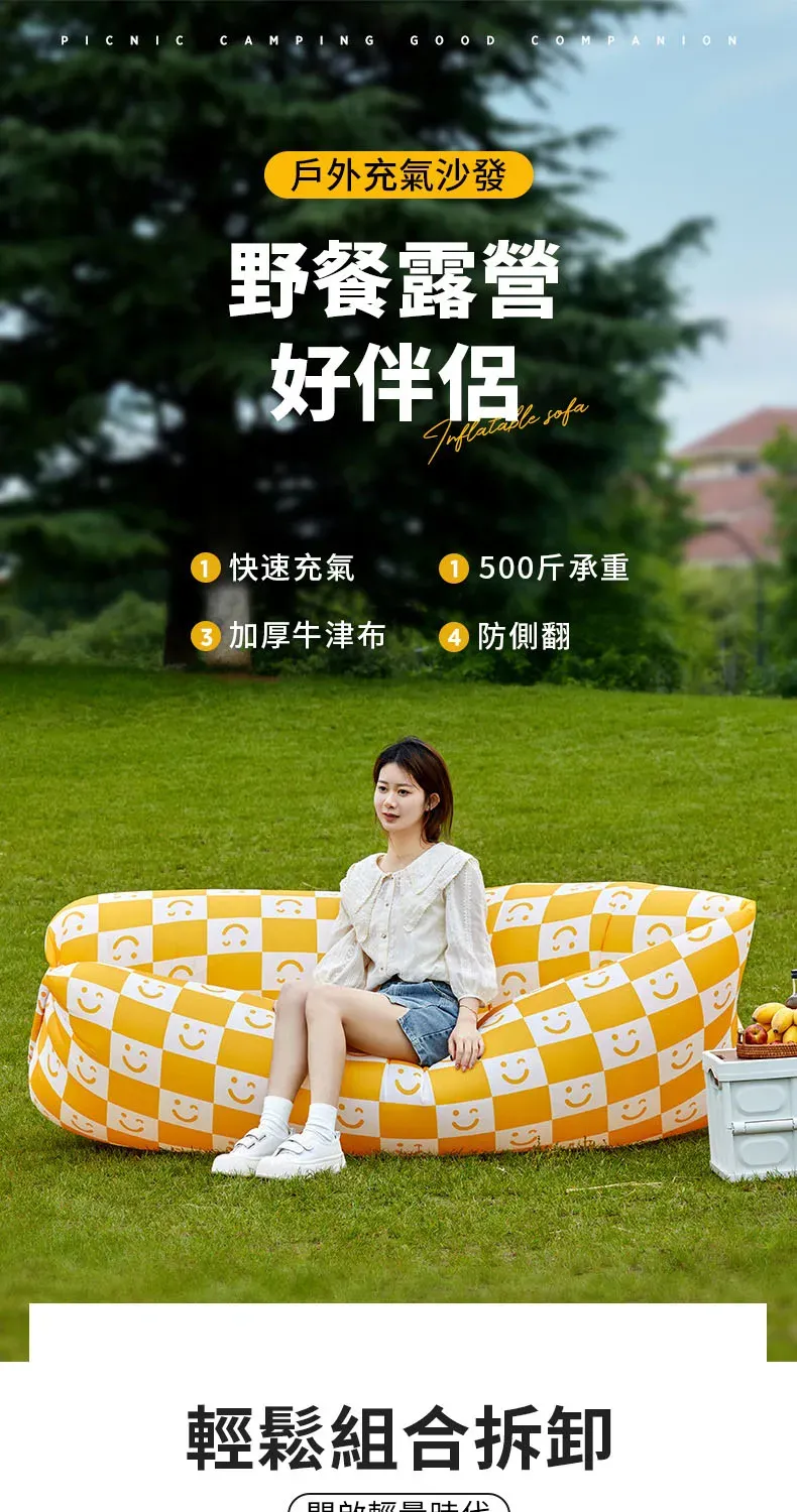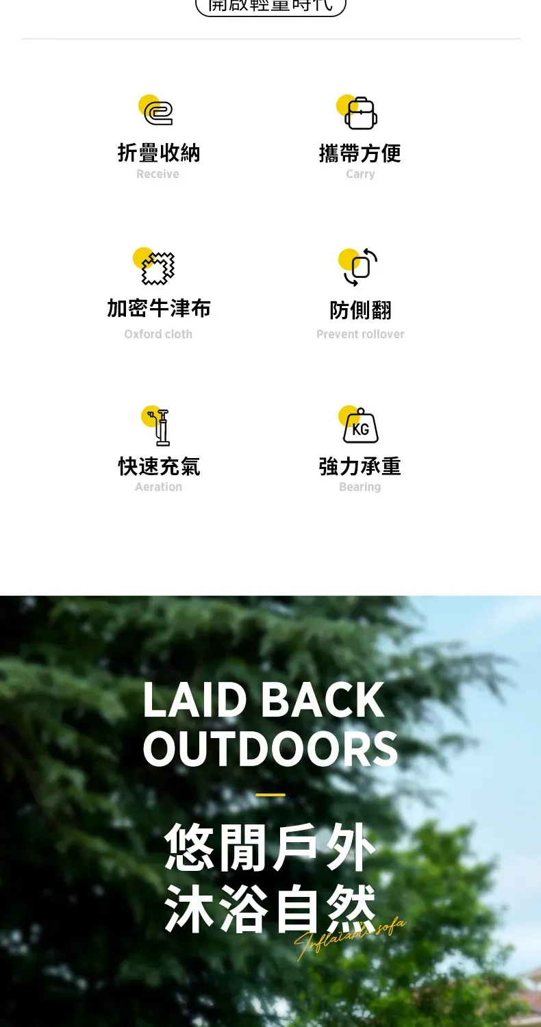 買一送一 | 戶外露營免泵浦充氣沙發 | 250KG強力承重防側翻 | 五秒速充免氣泵 | 折疊收納超方便 | 加密牛津布防水耐磨抗撕裂戶外野餐露營充氣沙發