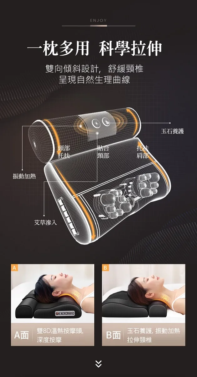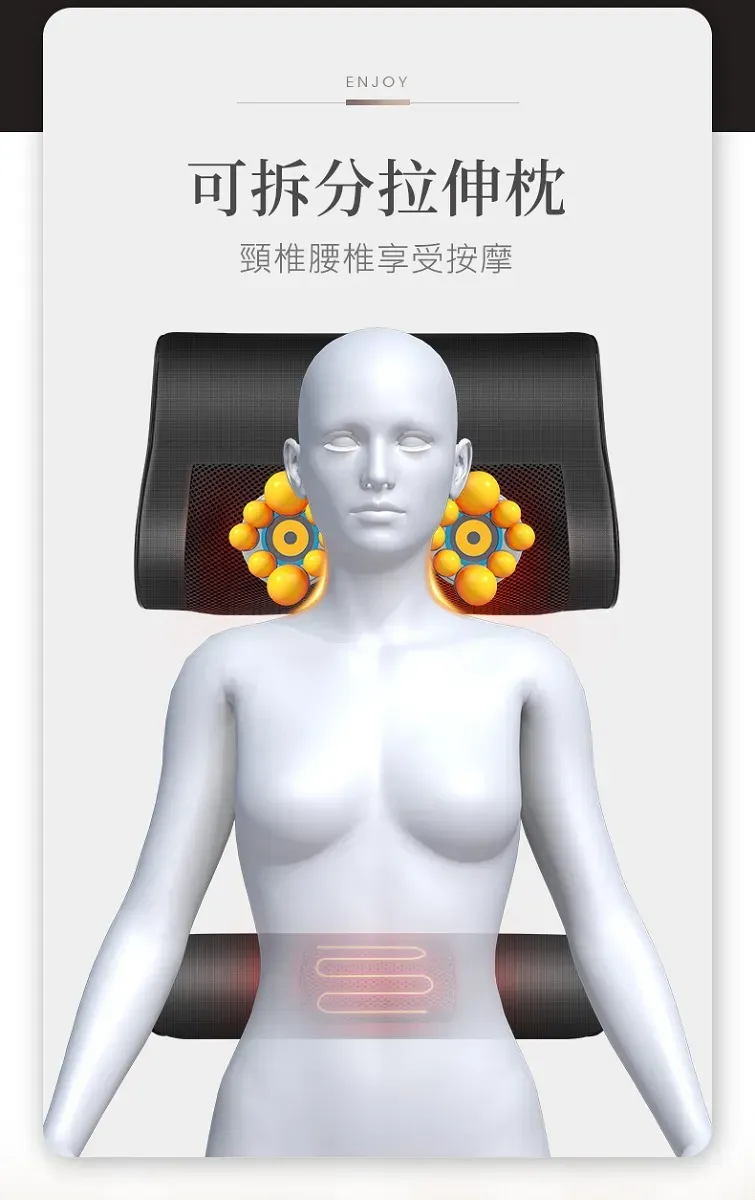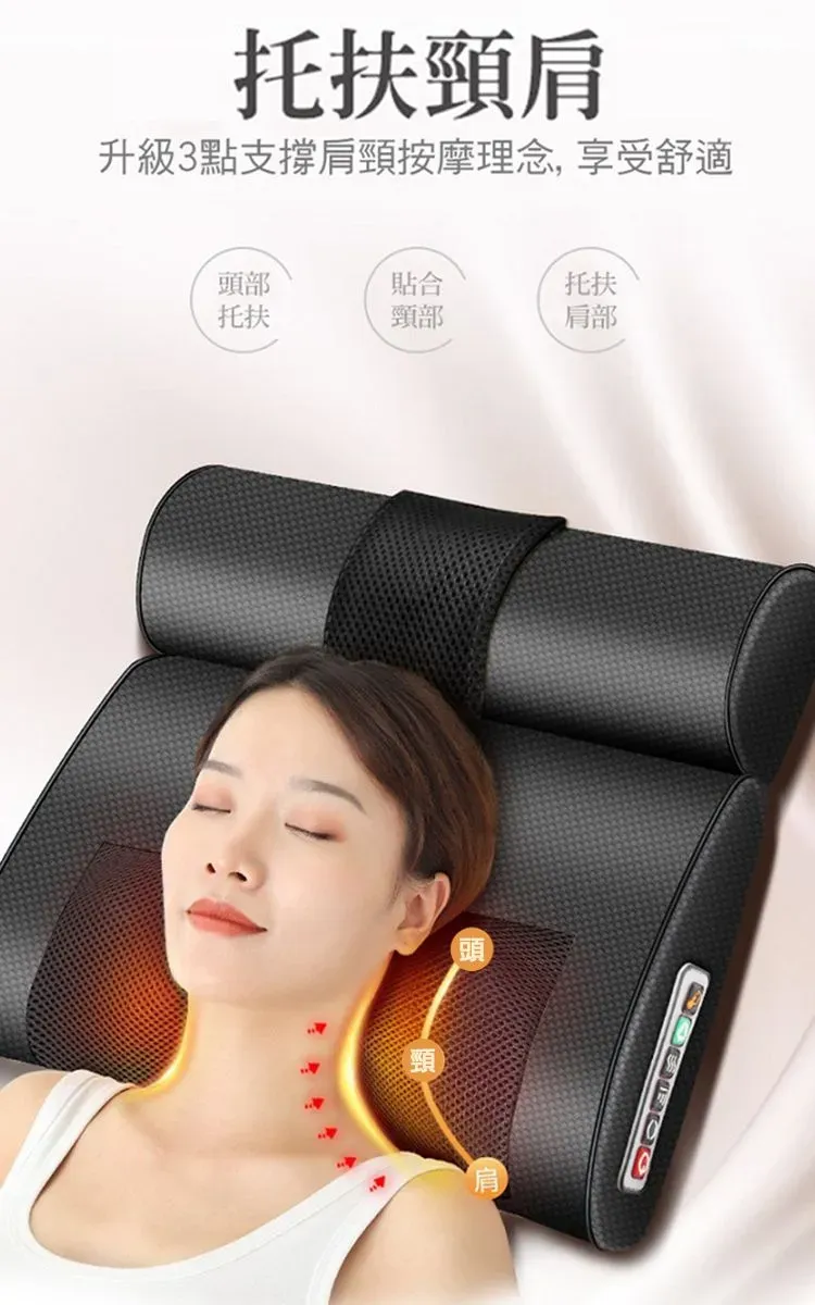 現貨快出養生館級全功能頸椎拉伸熱灸按摩枕 | 雙8D立體真人級推拿揉捏 | 遠紅外溫感熱灸 | 變頻震動深層按摩 | 多模式力度可調 | 送爸媽禮物頸椎按摩枕