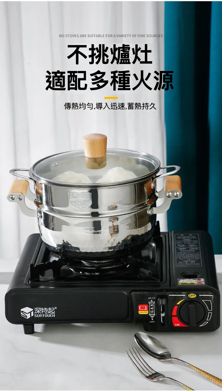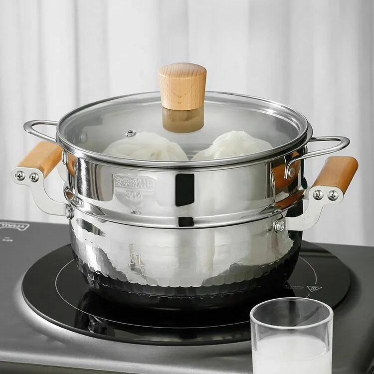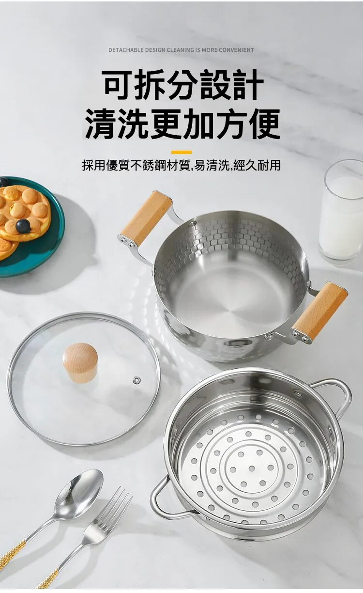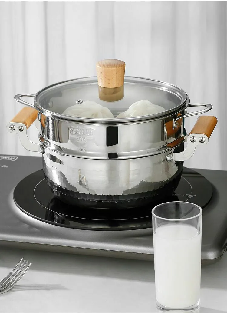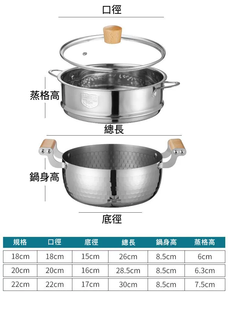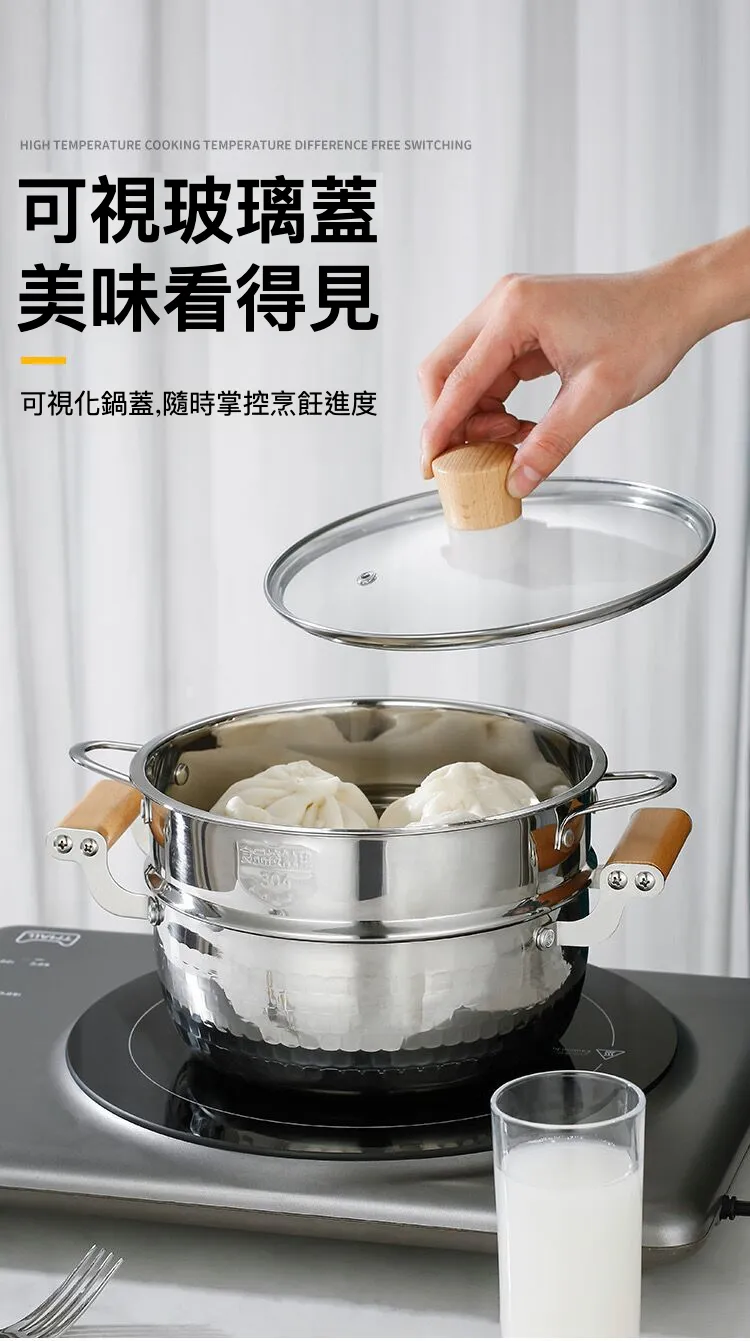奢級日式錘目紋雙層全能蒸煮鍋 | 上蒸下煮健康烹飪 | 傳熱均勻蓄熱持久 | 獨立大容量蒸籠 | 可視高透玻璃鍋蓋 | 食品級304不鏽鋼 | 蒸煮雪平鍋