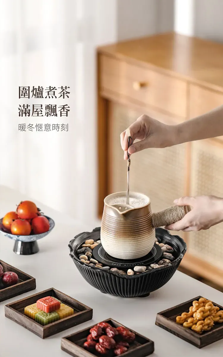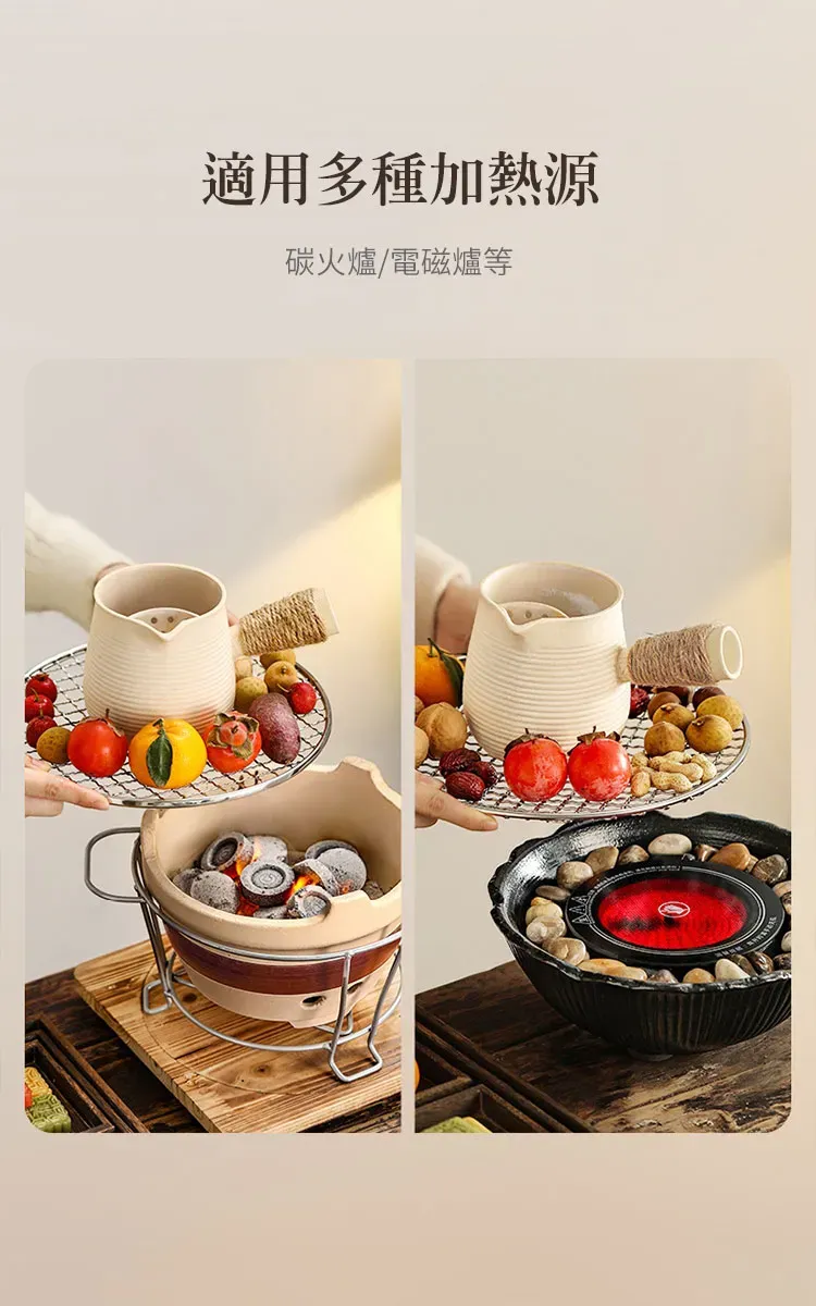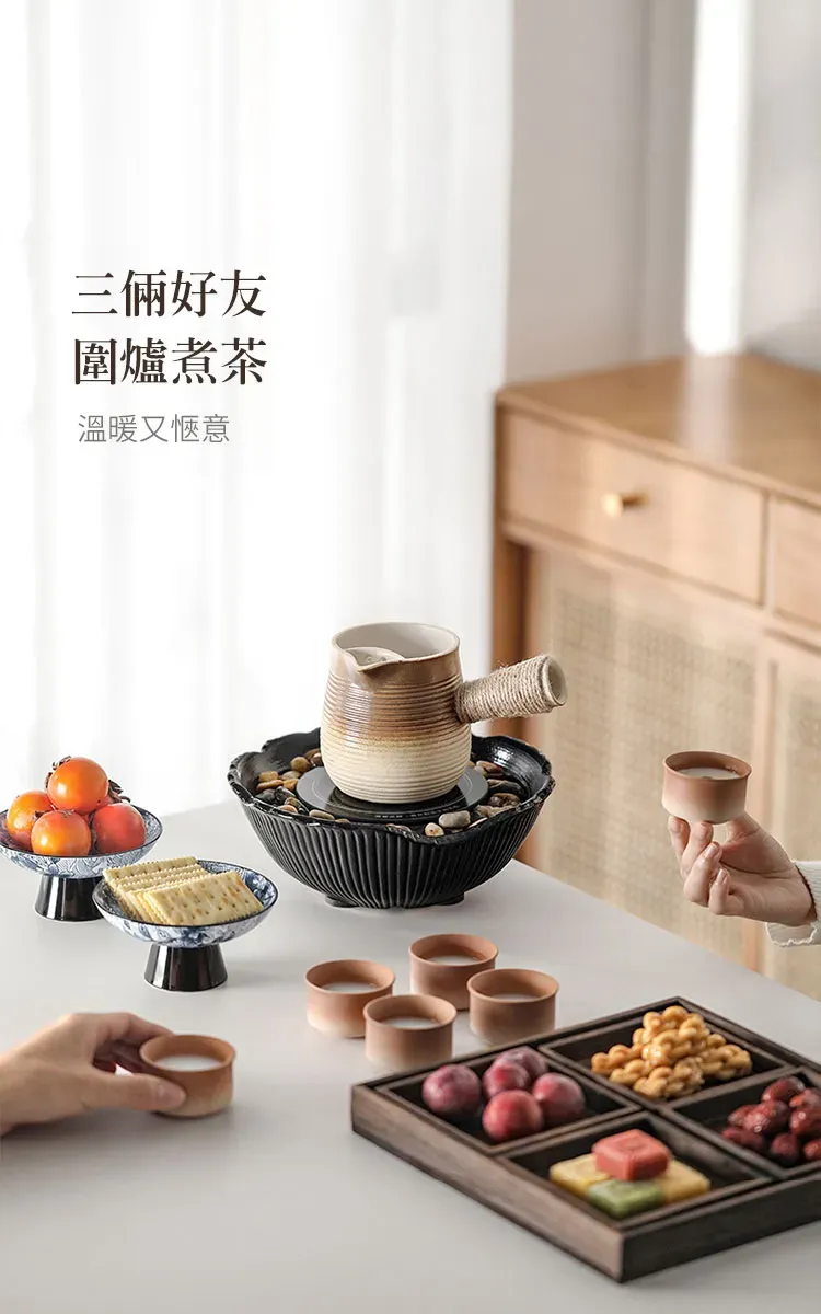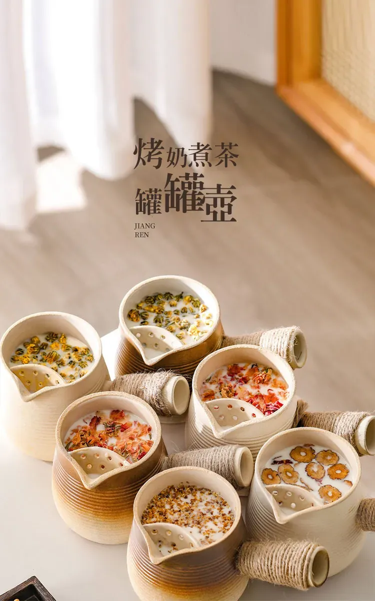古風圍爐烤奶煮茶罐罐壺六杯套組 | 原礦好陶泥軟化水質 | 口感細膩醇香濃郁 | 自帶過濾茶湯分離 | 不挑爐灶乾燒不裂 | 纏線握把防燙隔熱