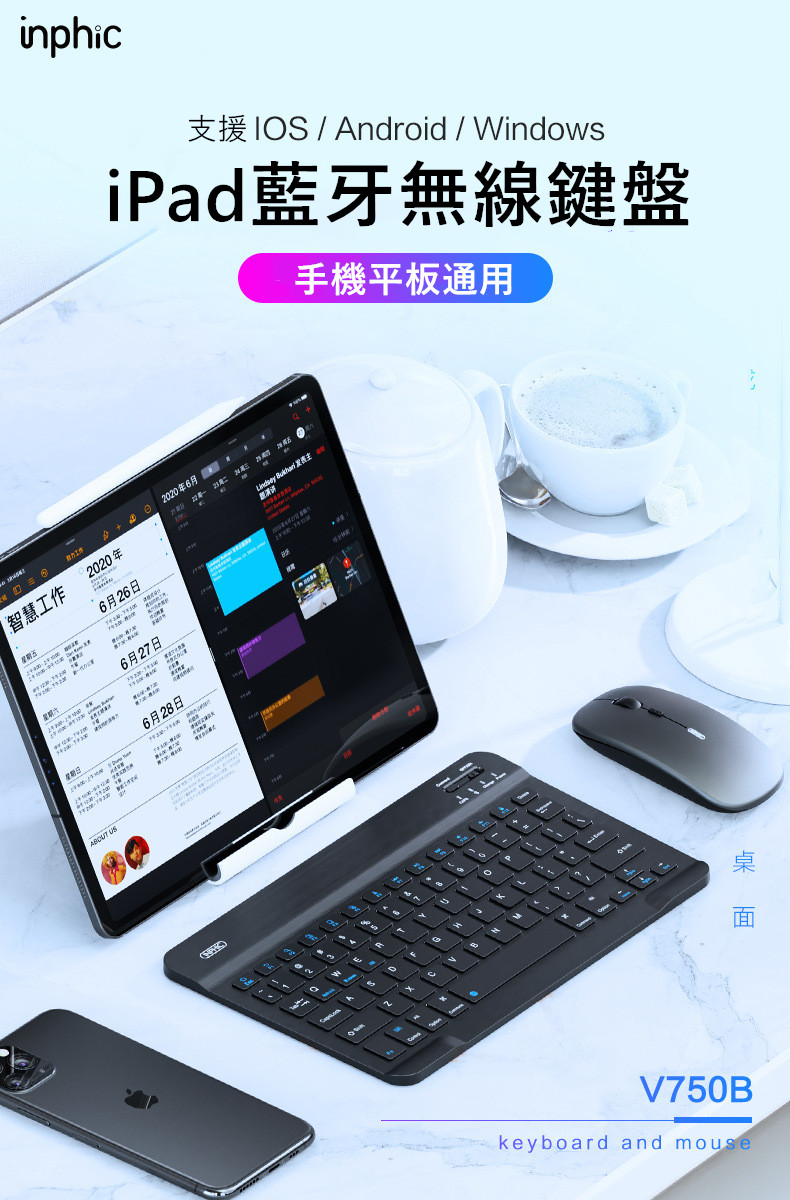 【靜音無線藍牙鍵盤】【剪刀腳鍵】【多媒體按鍵】inphic輕薄便攜多係統兼容靜音手機平板白色無線藍牙鍵盤