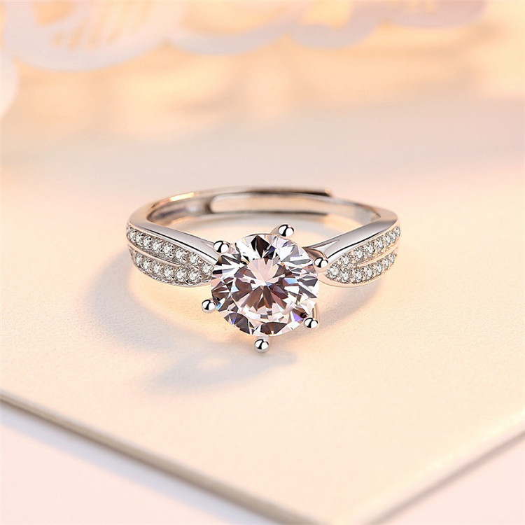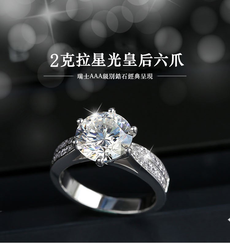 超閃2克拉夢幻星光戒指 國際標準s925純銀 + 2克拉瑞士AAA級真火彩鋯石 經典六爪鑲嵌技術 戒壁群鑲30顆高品質幅鉆 57個獨立切面 流光溢彩 貼心開口設計可隨心調節戒圍