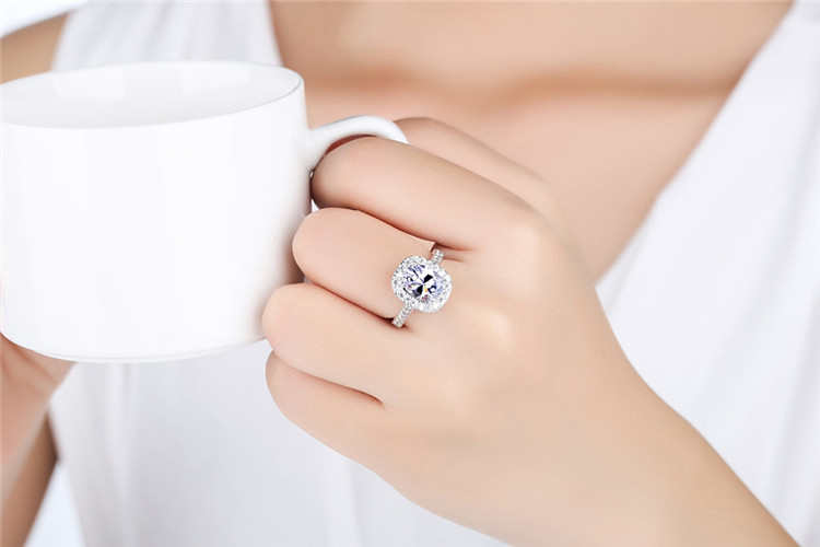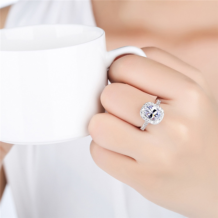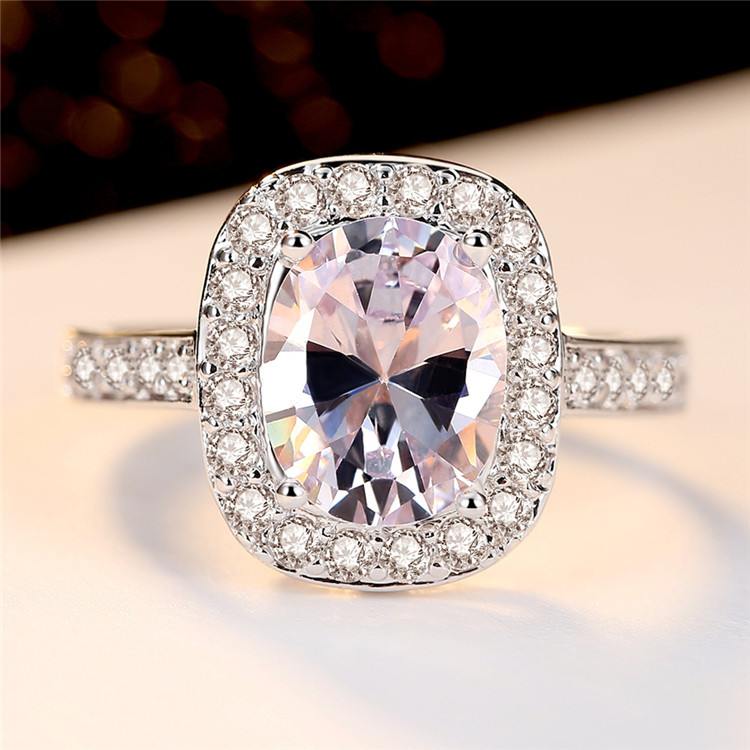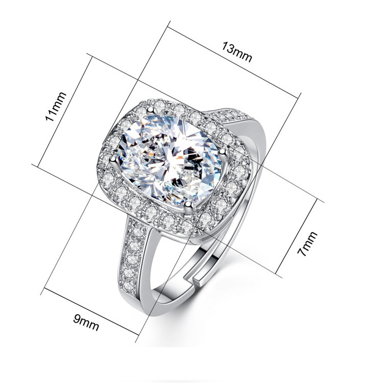 【寵愛】超閃2克拉AAA級真火彩鋯石群鑲滿鑽白銅開口戒指