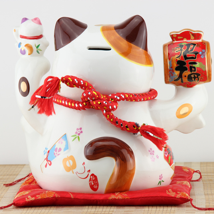 【風生水起招財貓存錢罐】【大號】風生水起純手工精製彩陶日式存錢罐招財貓擺件 (24*21*25cm)