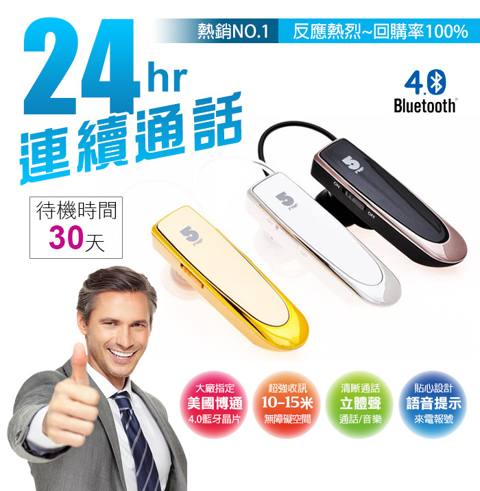【單邊】【真無線4.0】【24小時續航】【支援蘋果安卓】經典商務單邊真無線藍牙耳機