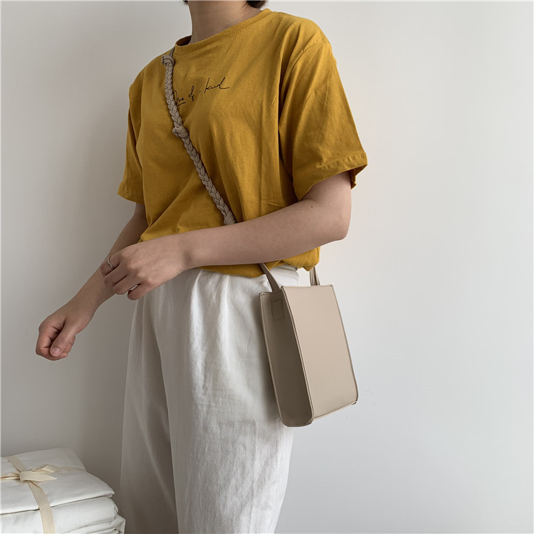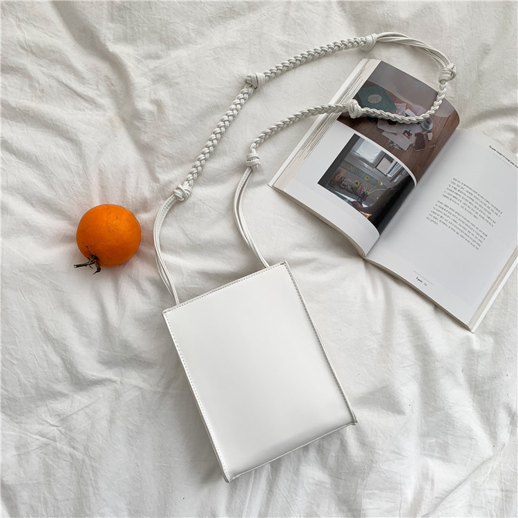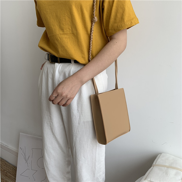 復古線條豎版純色小方包手機包單肩斜背側背包