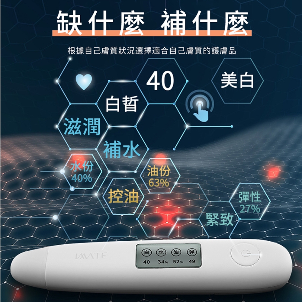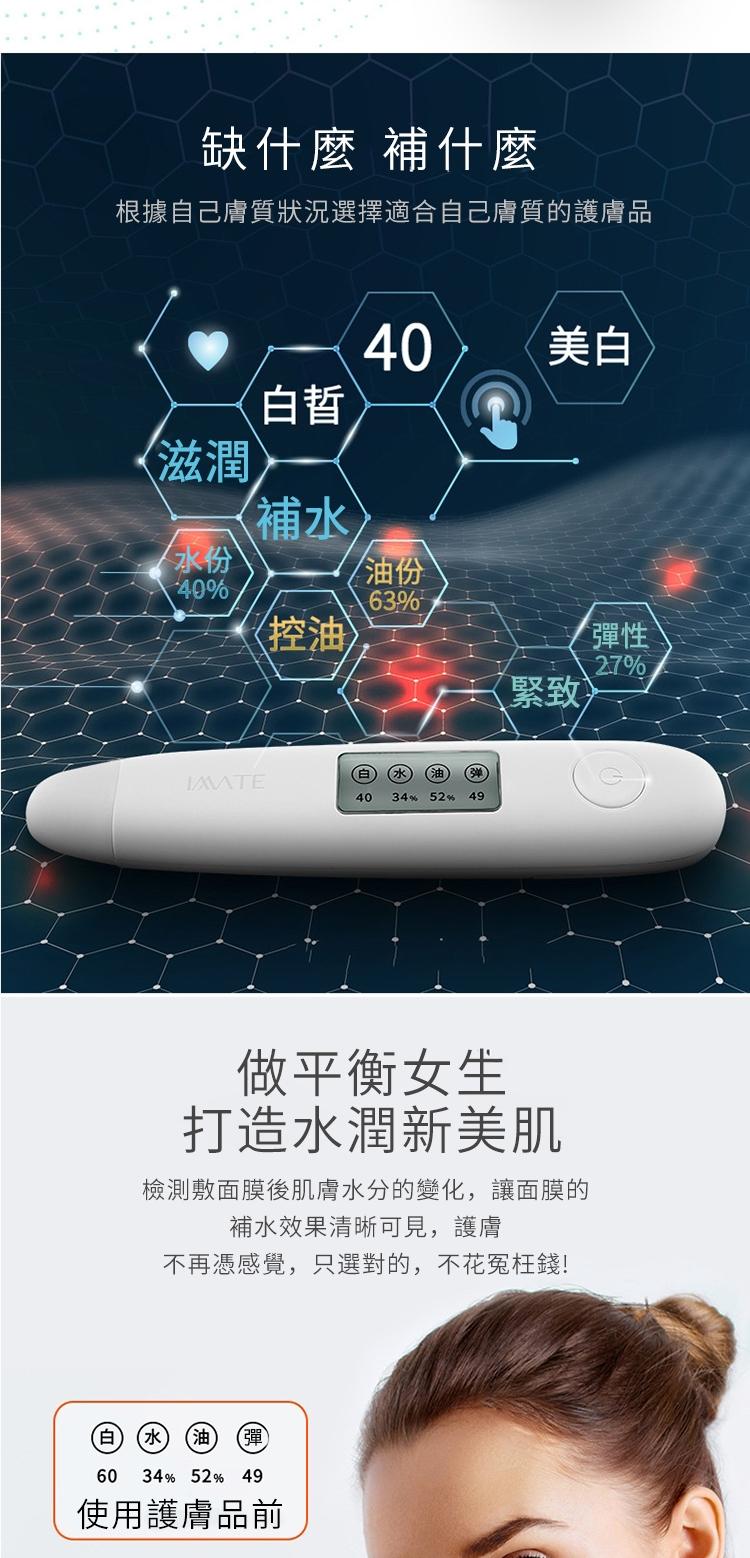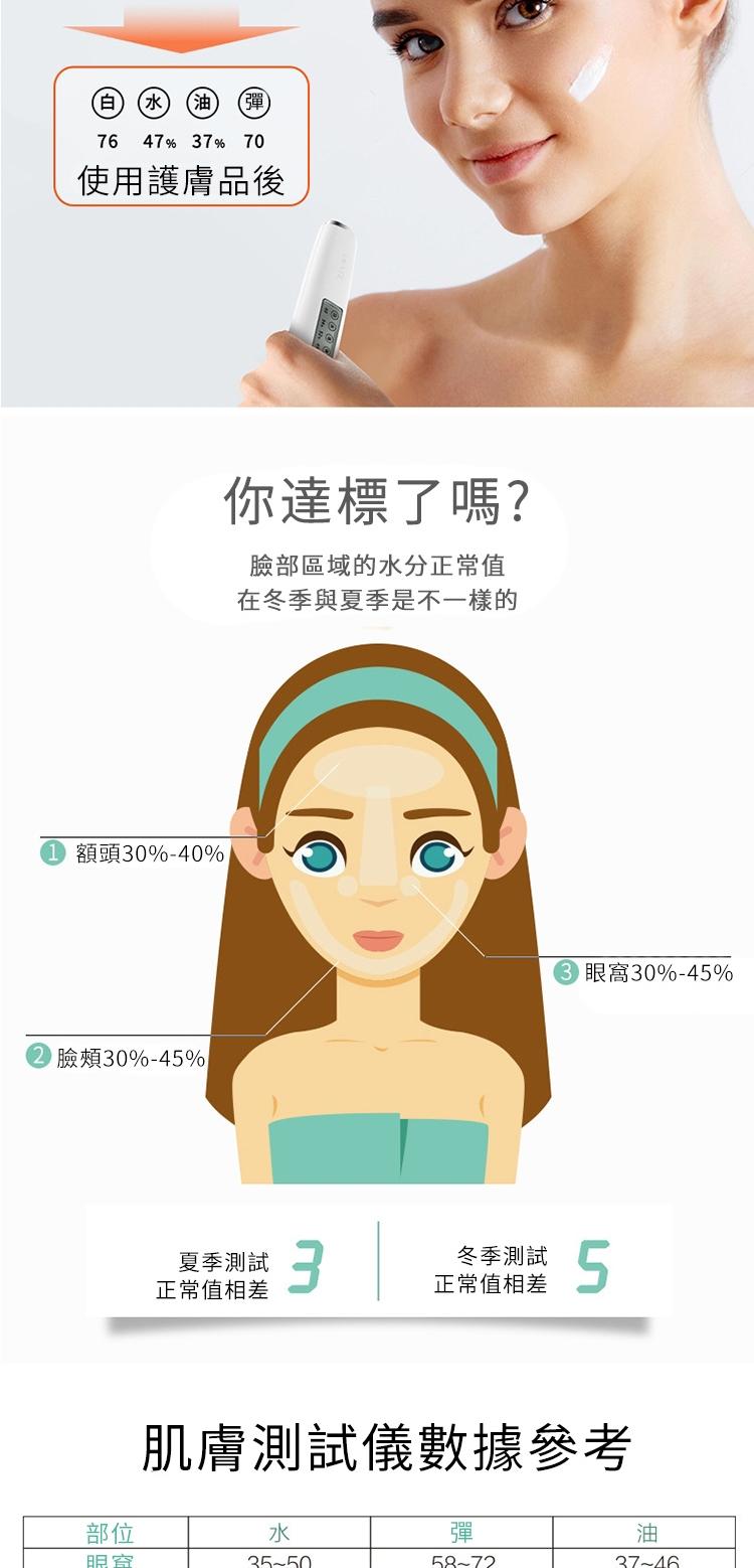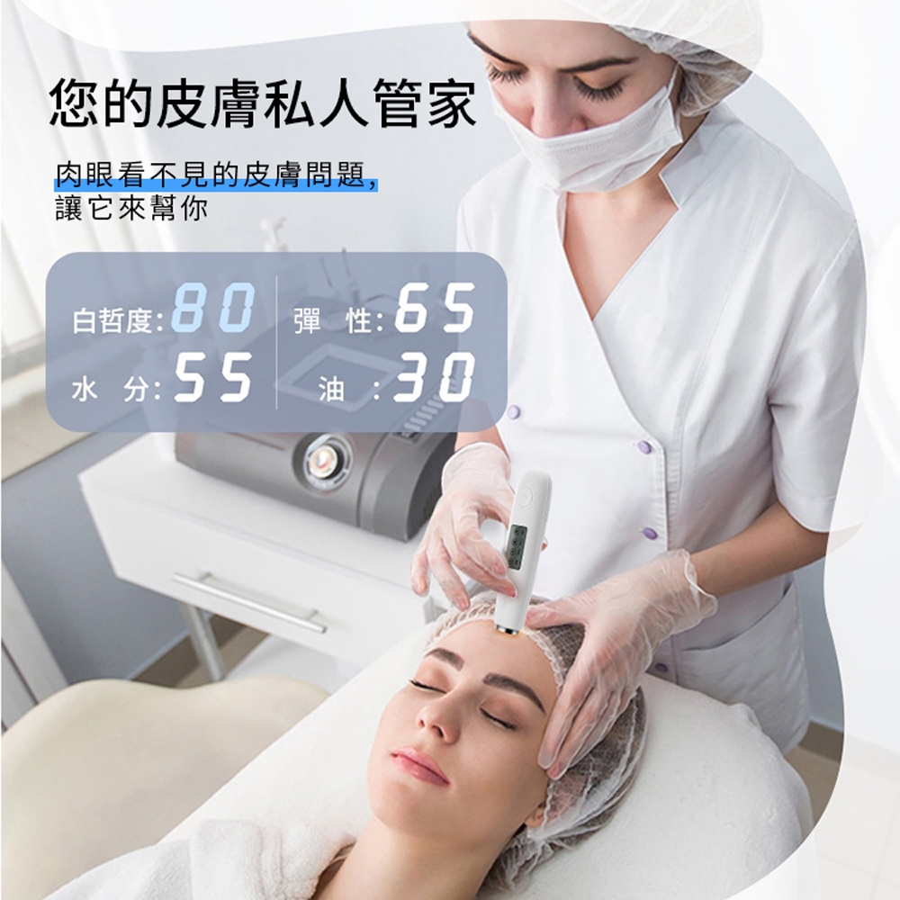 全功能私人管家級肌膚檢測儀 | 水分油脂彈性白皙度全監測 | 生物電阻抗脈衝黑科技 | 無線便攜超實用 | 大熒幕液晶數顯 | 水分油脂皮膚檢測儀