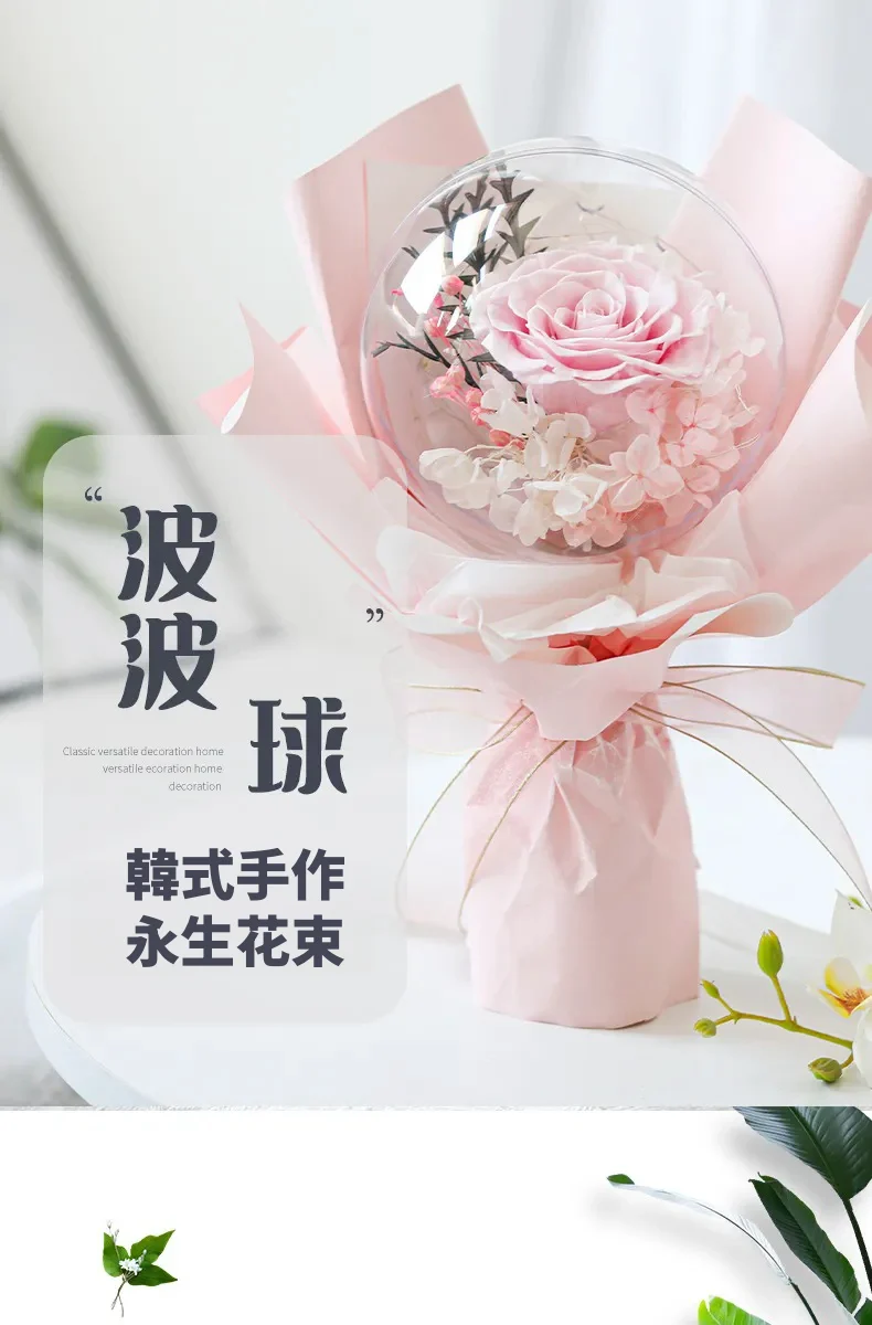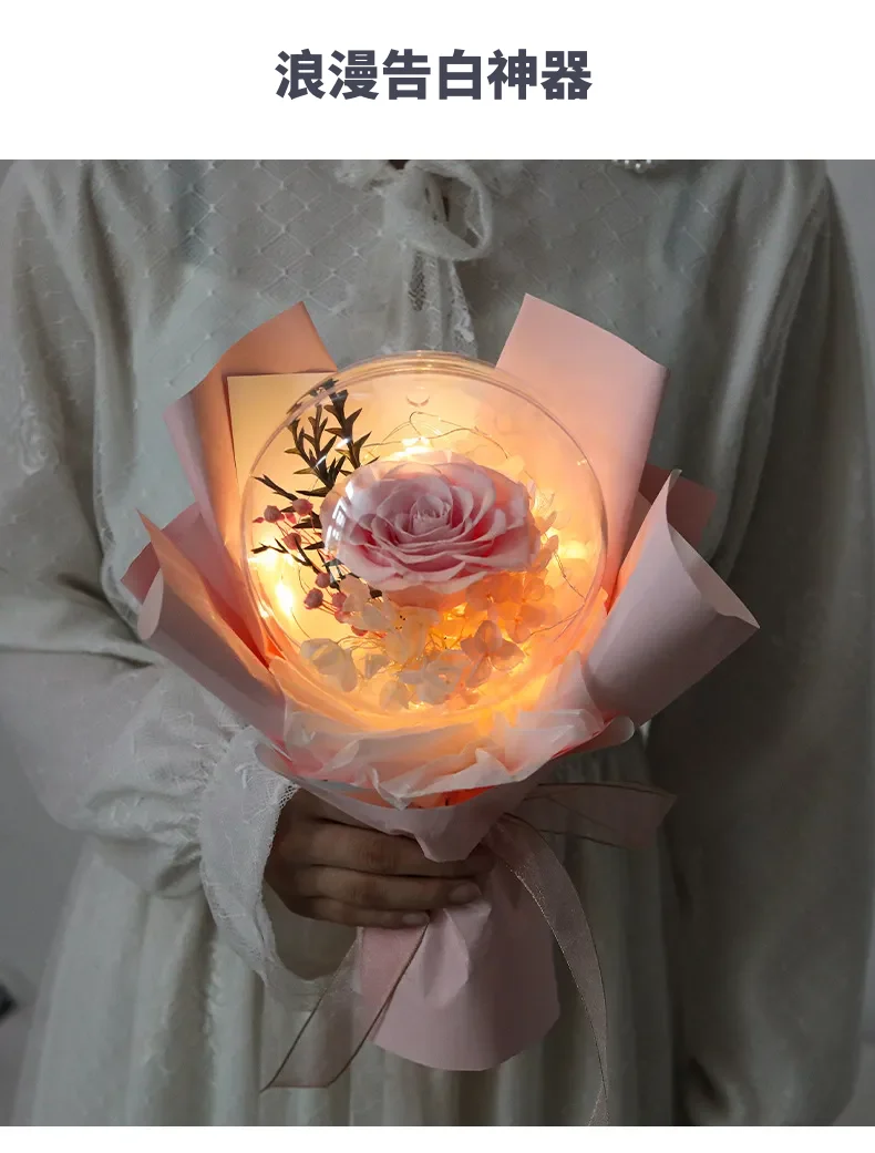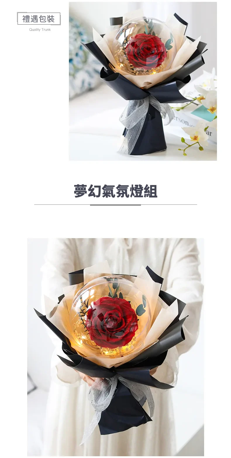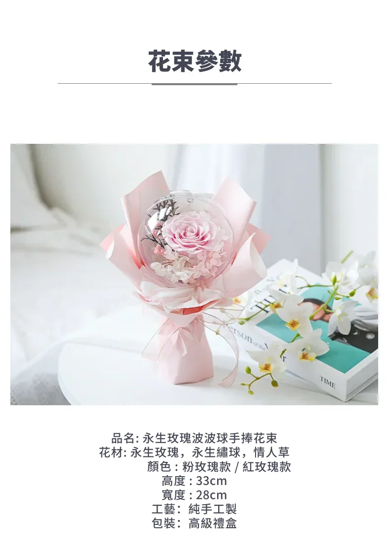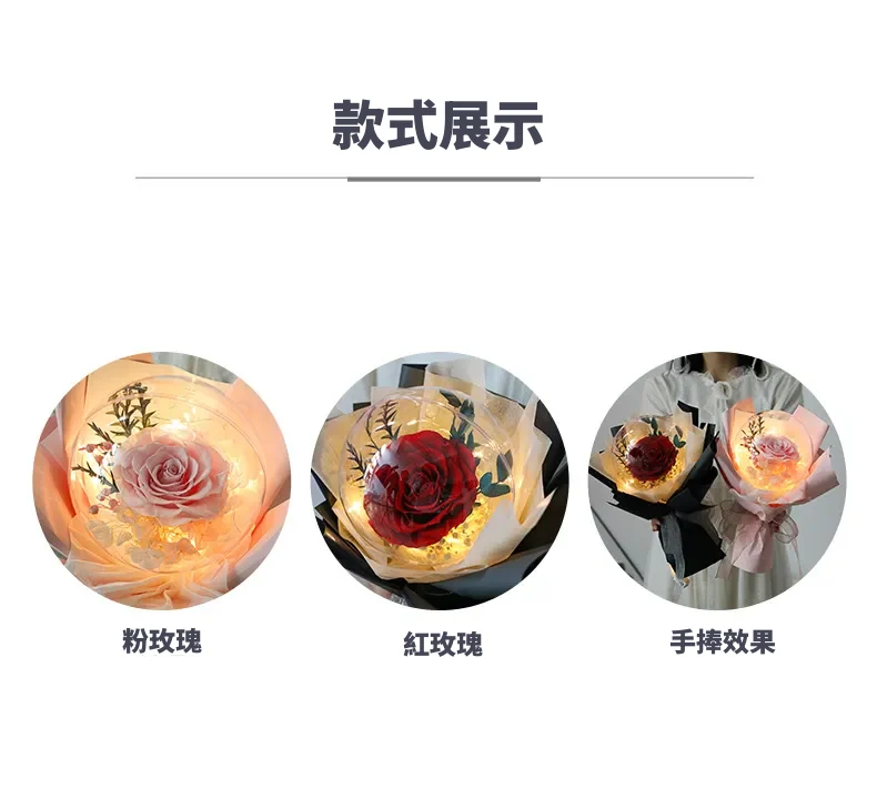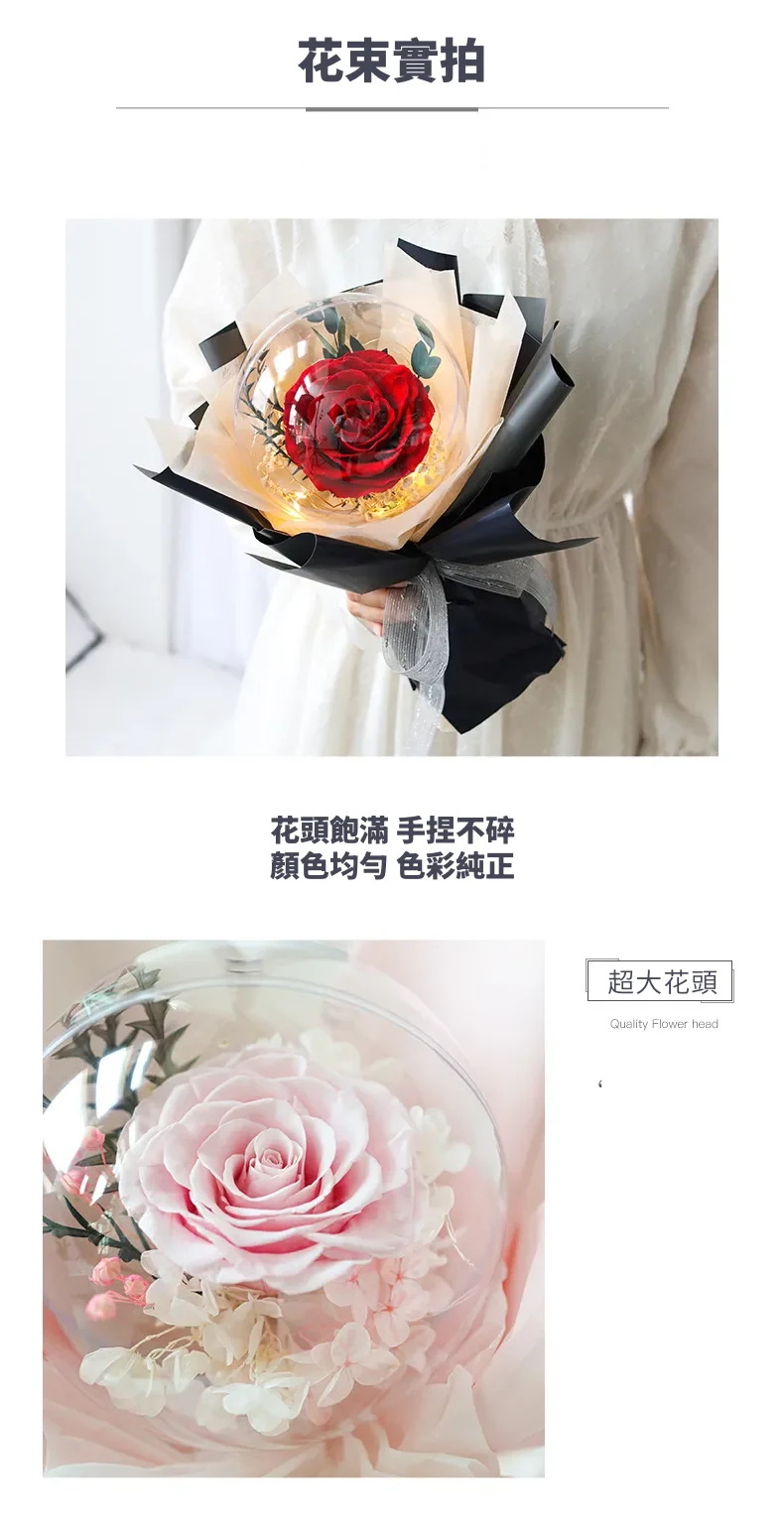 感謝時光不偏不倚 | 韓式永生玫瑰波波球花束 | 超大花頭不凋真玫瑰 | 日式永生保鮮工藝 | 夢幻LED氣氛燈組 | 超心動送女生禮物手捧永生花花束