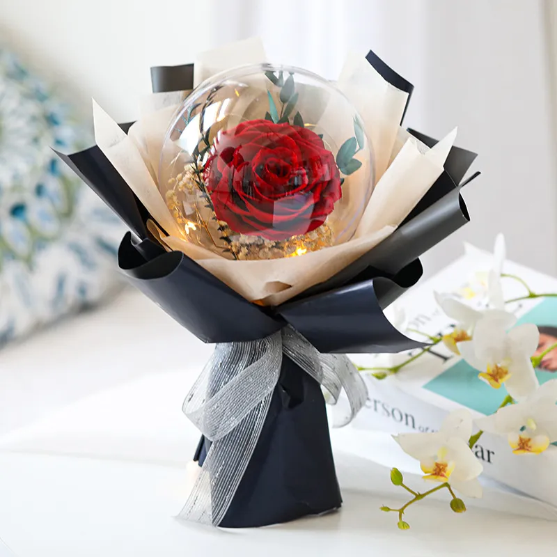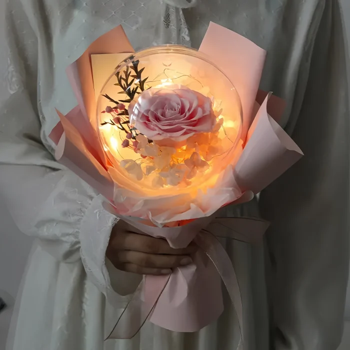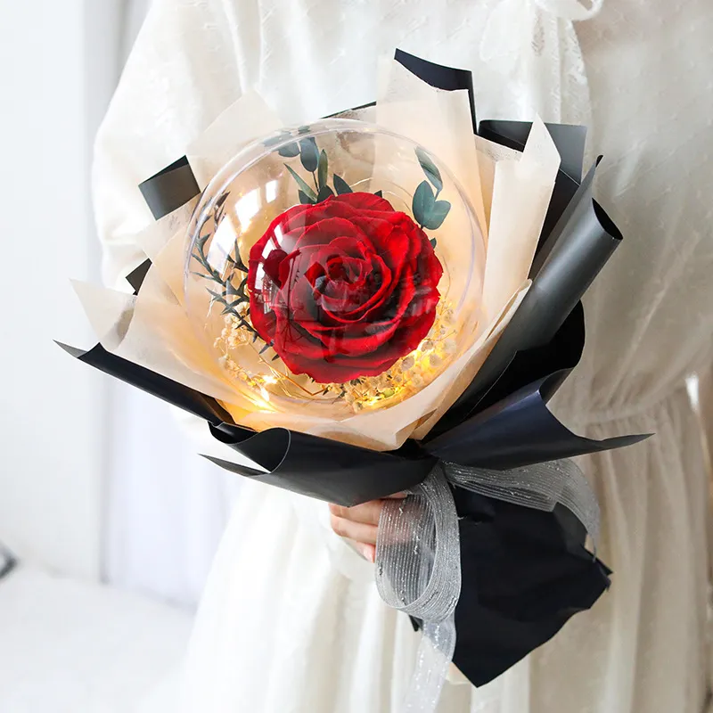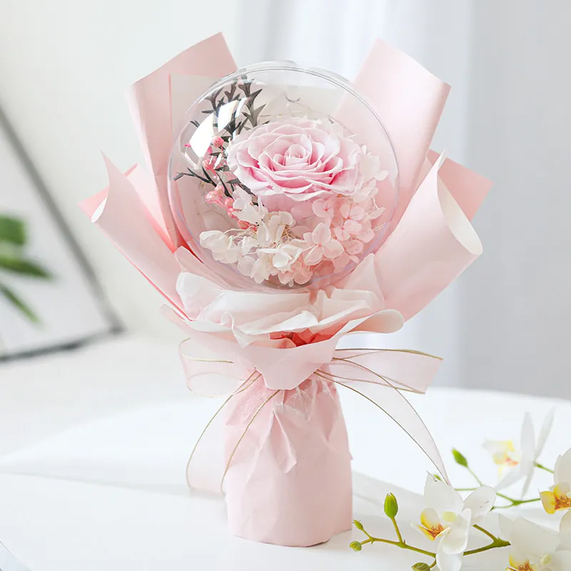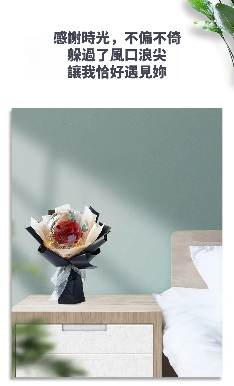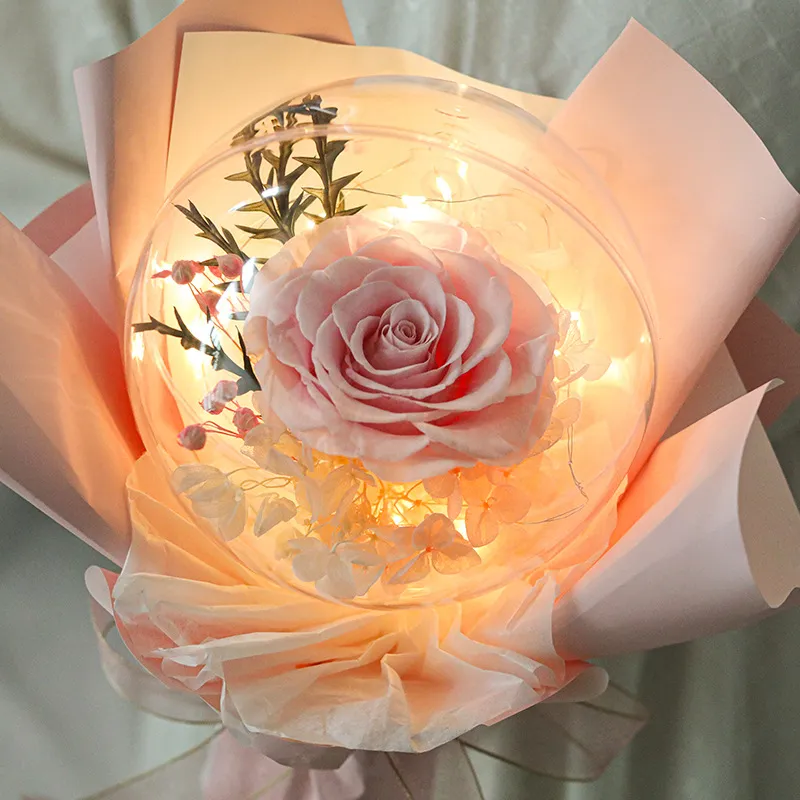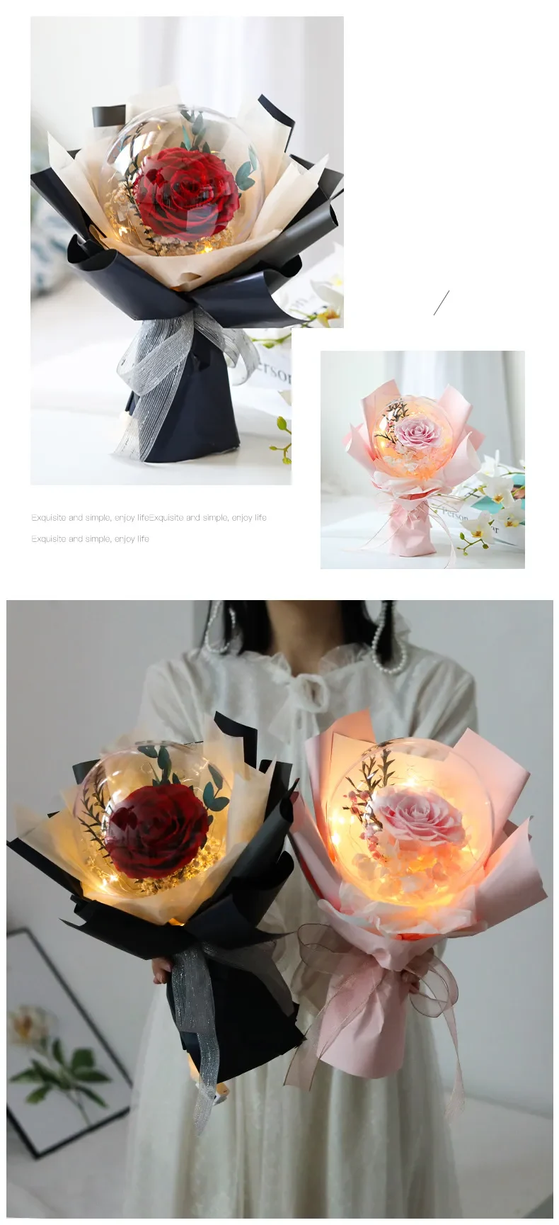 感謝時光不偏不倚 | 韓式永生玫瑰波波球花束 | 超大花頭不凋真玫瑰 | 日式永生保鮮工藝 | 夢幻LED氣氛燈組 | 超心動送女生禮物手捧永生花花束