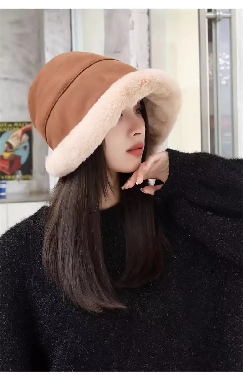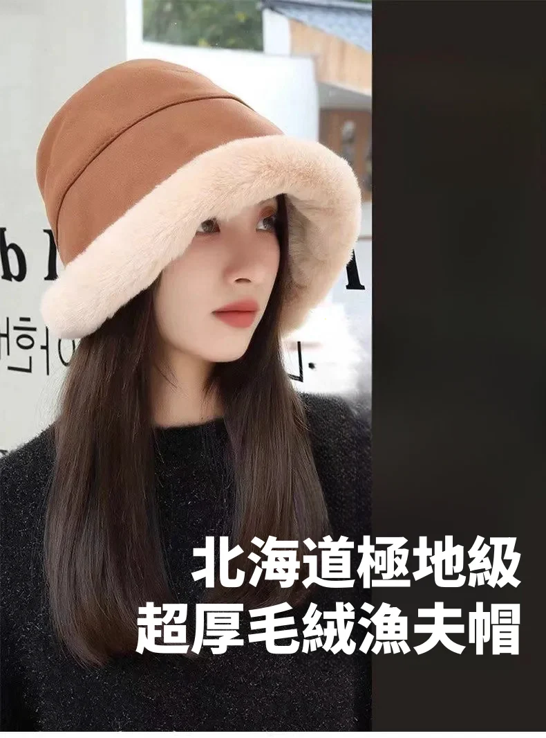 限時買一送一 | 北海道極地級超厚毛絨護耳漁夫帽 | 奢級親膚水晶密絨 | 前長後短立體帽型 | 時尚百搭減齡秋冬保暖女生漁夫帽