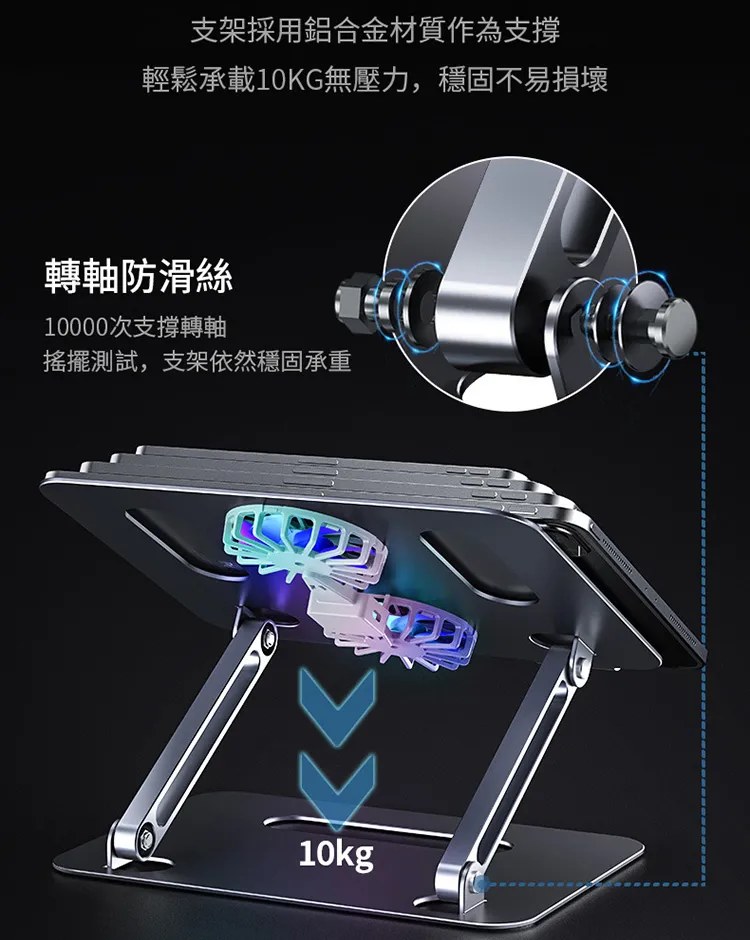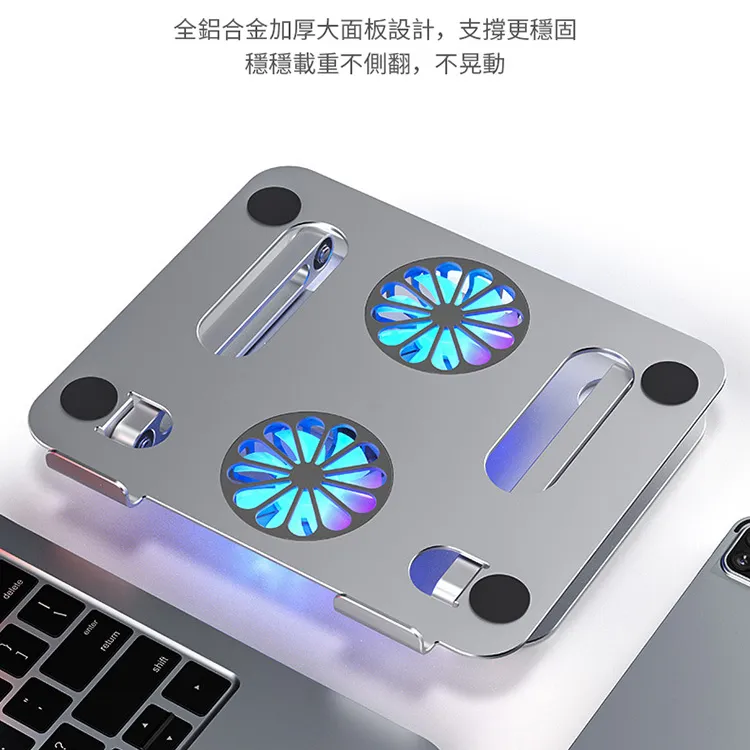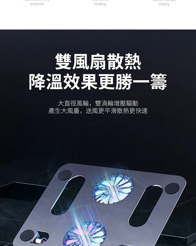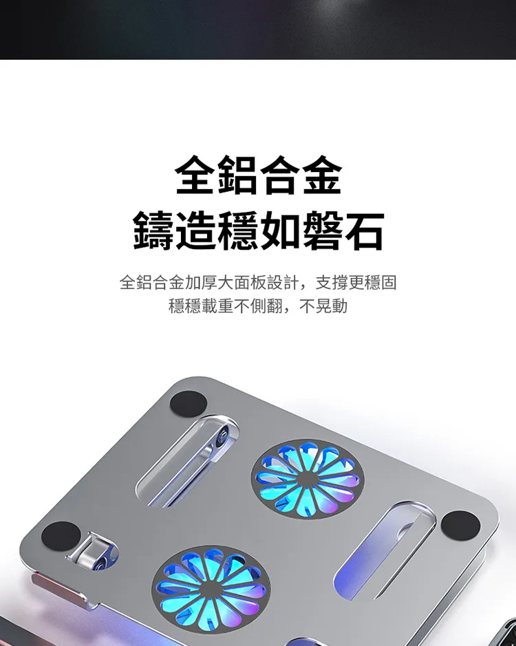 奢級全鋁合金懸停風冷筆電散熱支架 | 雙渦輪增壓風冷 | 隨意懸停穩穩支撐 | 10KG高強承重 | 矽膠保護不傷機器 | 專業級設計電競筆記本散熱支架