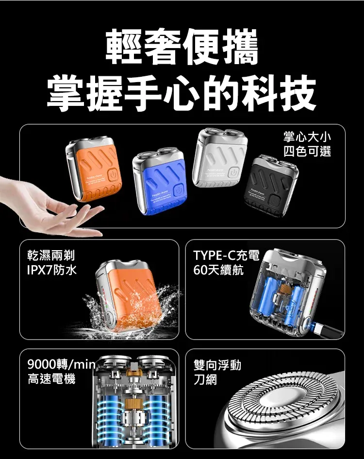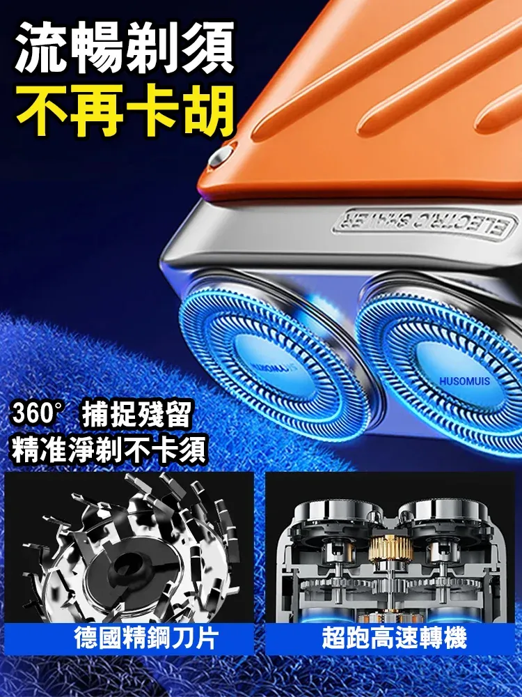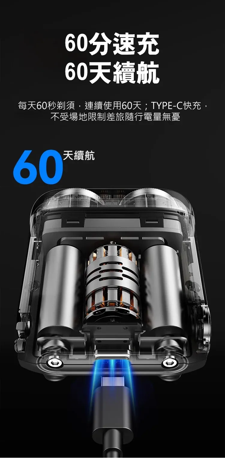 男人的第二把刮鬍刀 | 磁吸雙向浮動刀頭 | 無痛刮鬍不卡鬚 | 60分鐘速充60天續航 | 德國精鋼自研磨刀片 | IPX7級防水乾濕兩用電動刮鬍刀