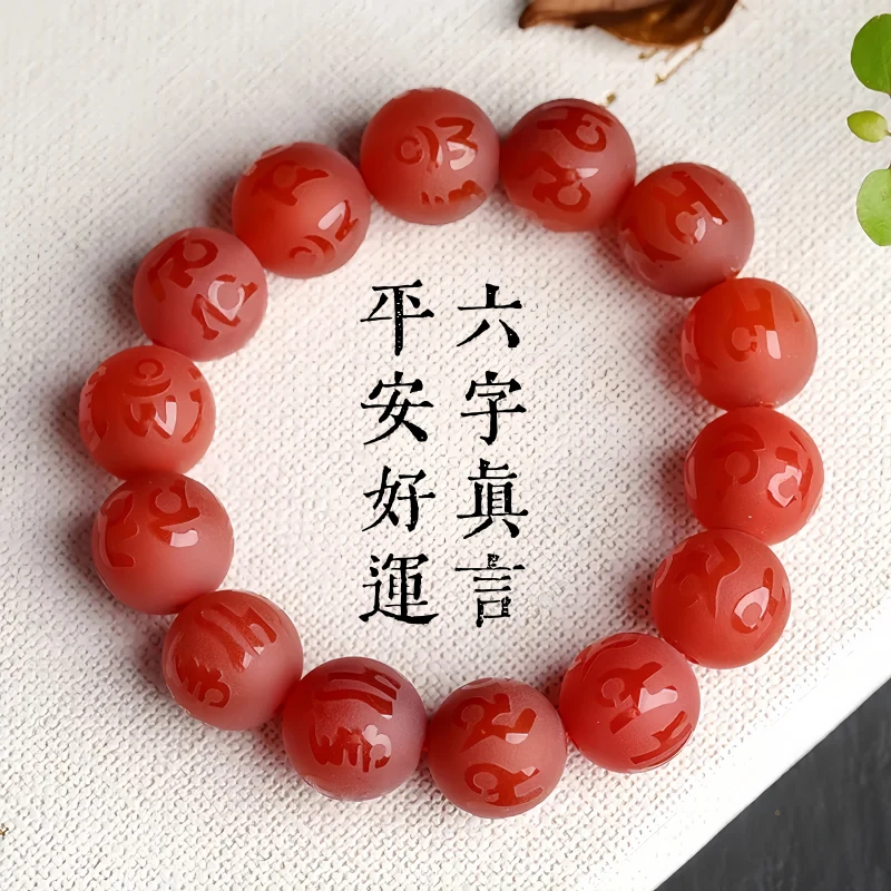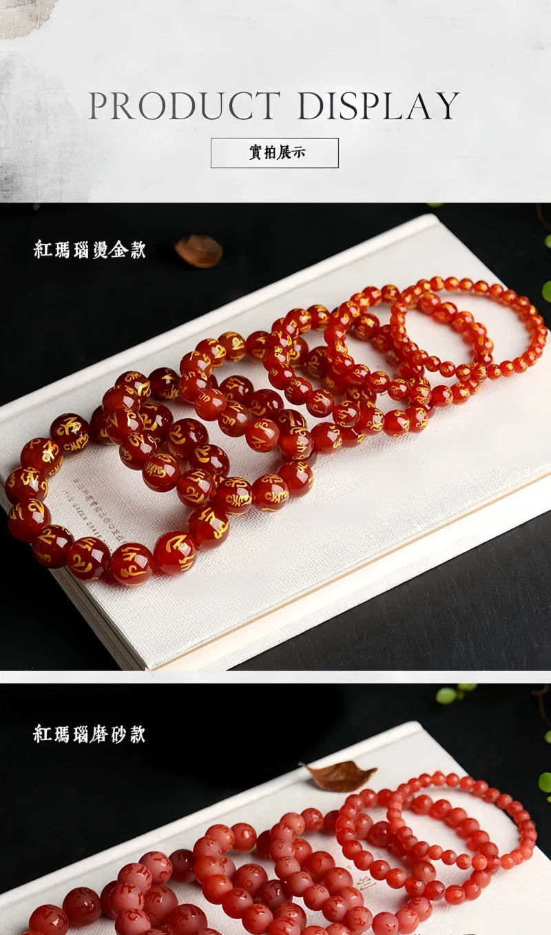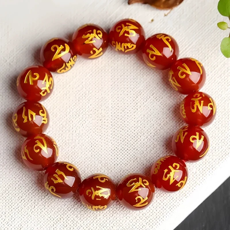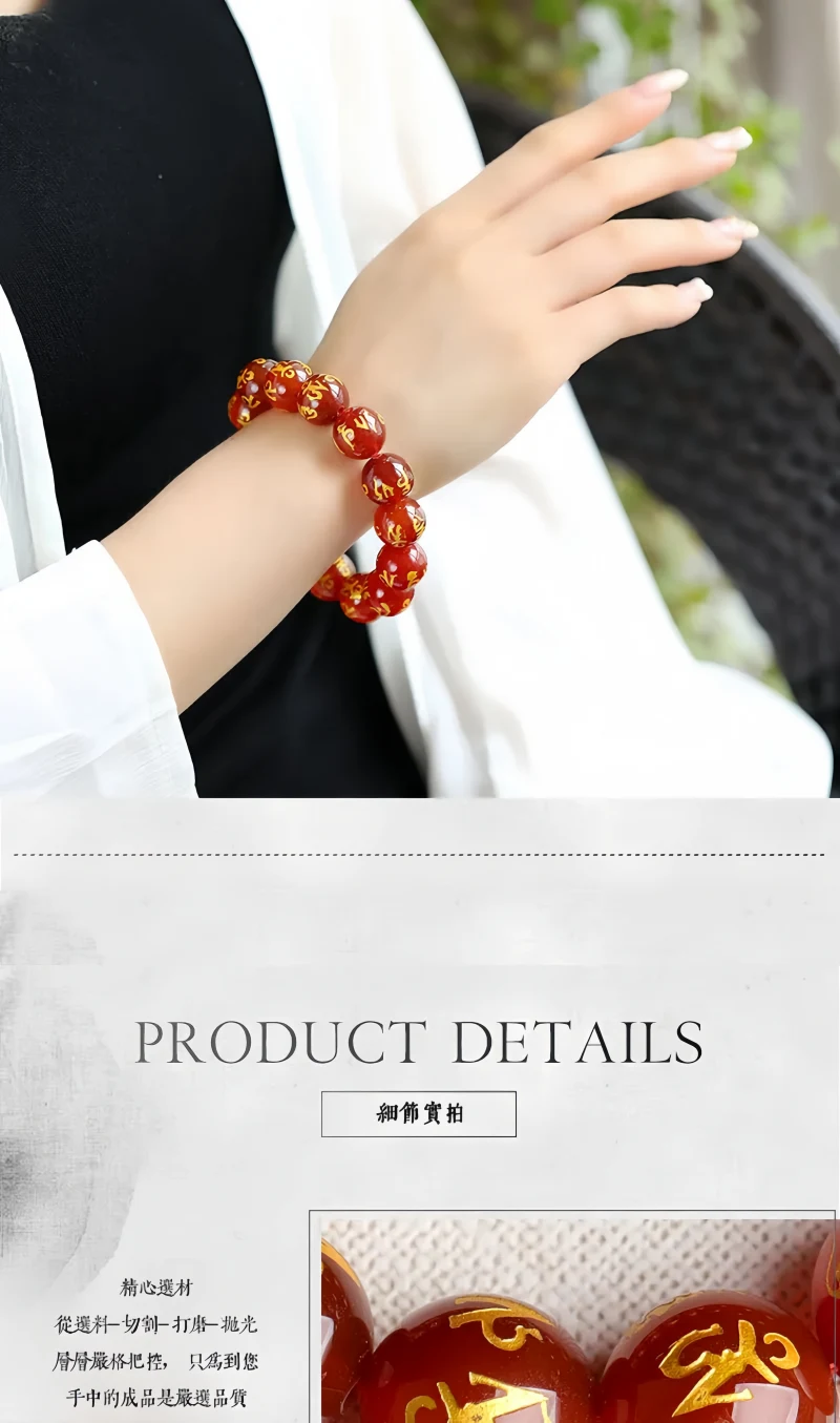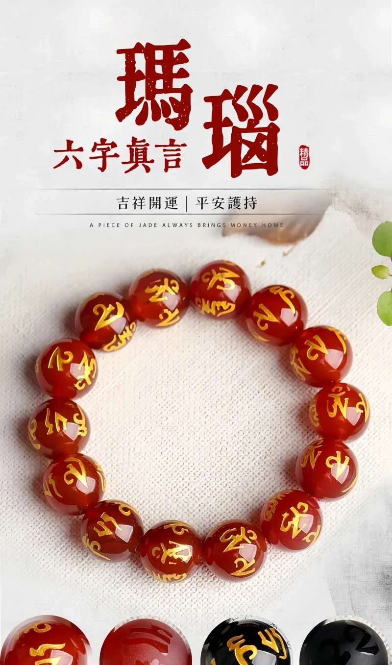 六字真言 | 平安好運 | 天然寶石級紅瑪瑙手鍊 | 燙金六子真言 | 吉祥開運 | 平安護持 | 2025招財納福天然紅瑪瑙六字真言手鍊