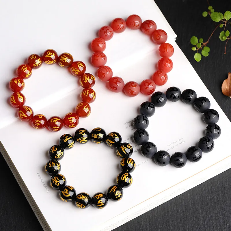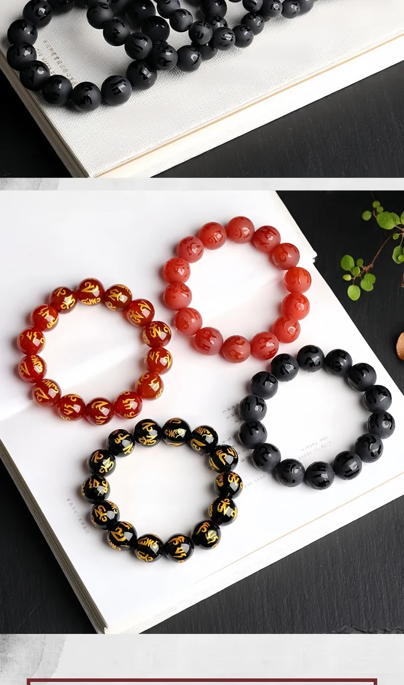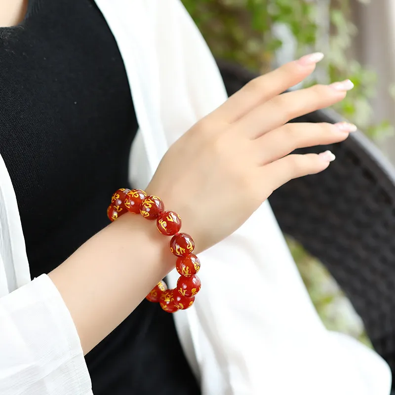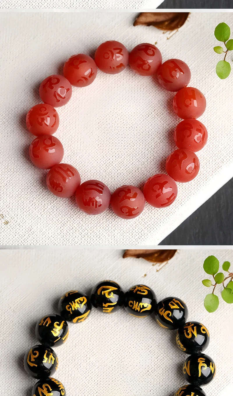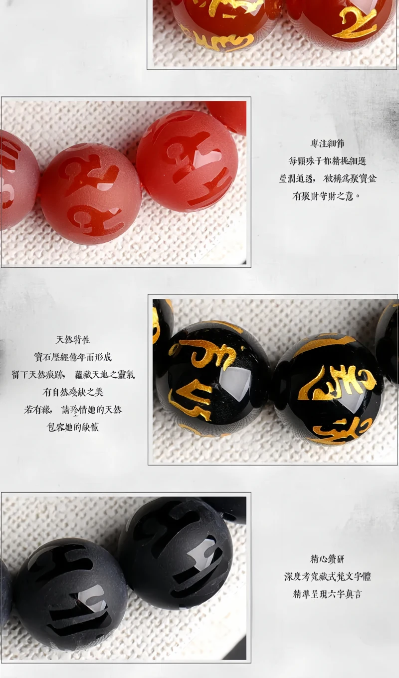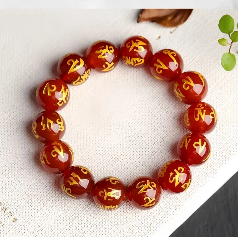 六字真言 | 平安好運 | 天然寶石級紅瑪瑙手鍊 | 燙金六子真言 | 吉祥開運 | 平安護持 | 2025招財納福天然紅瑪瑙六字真言手鍊