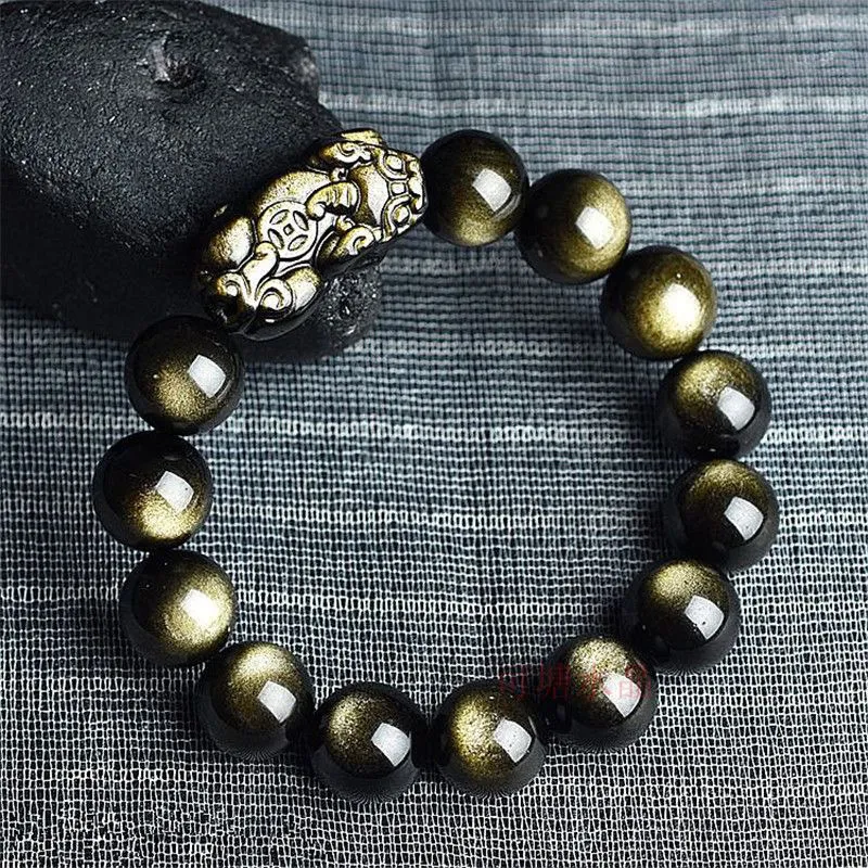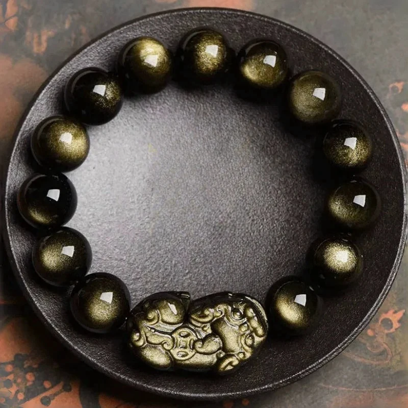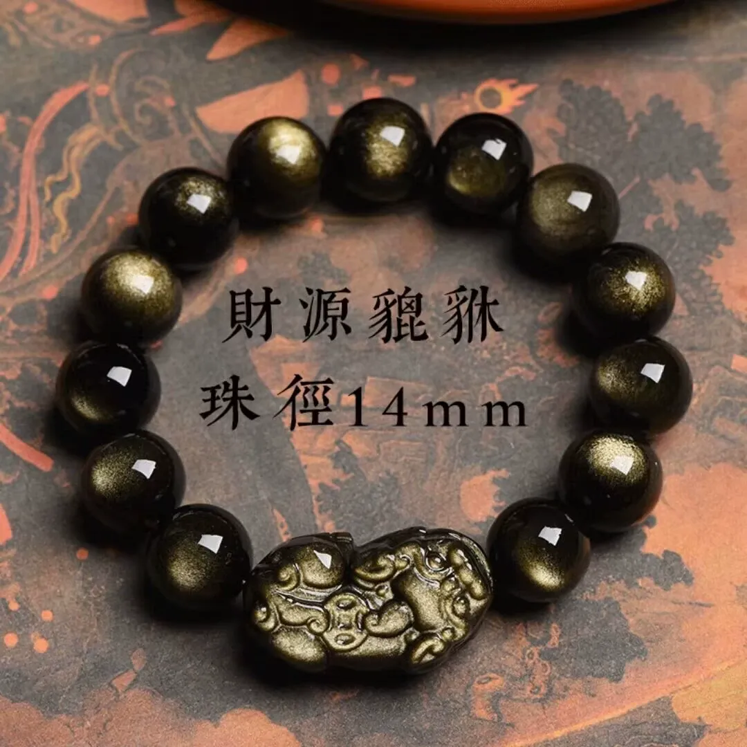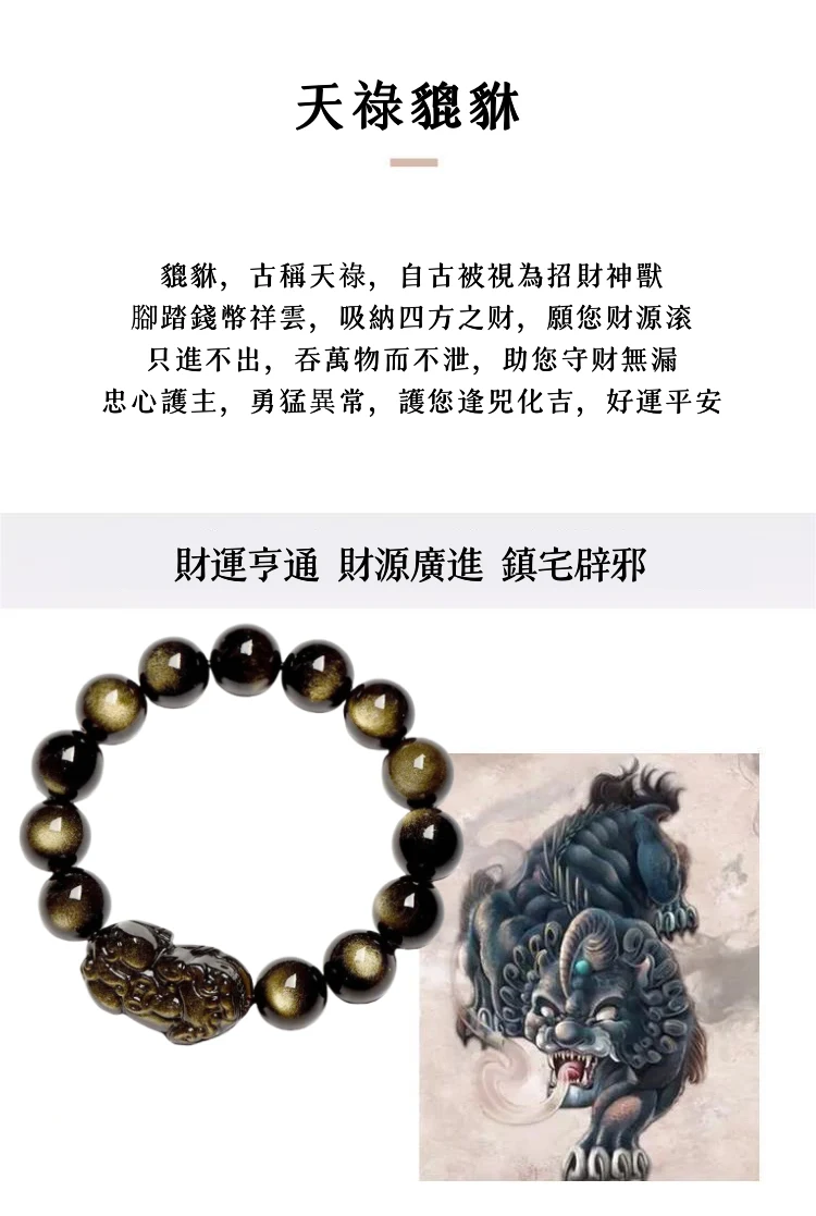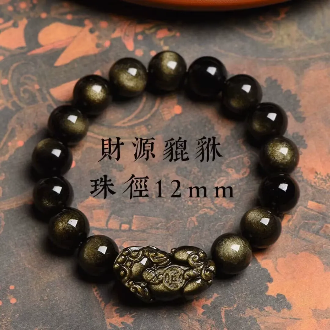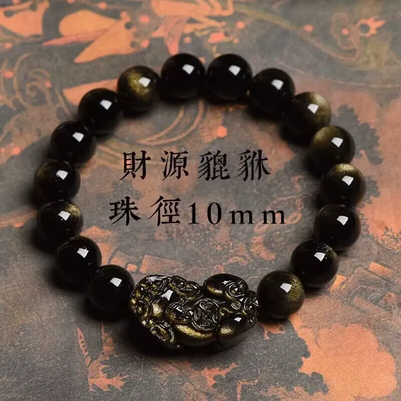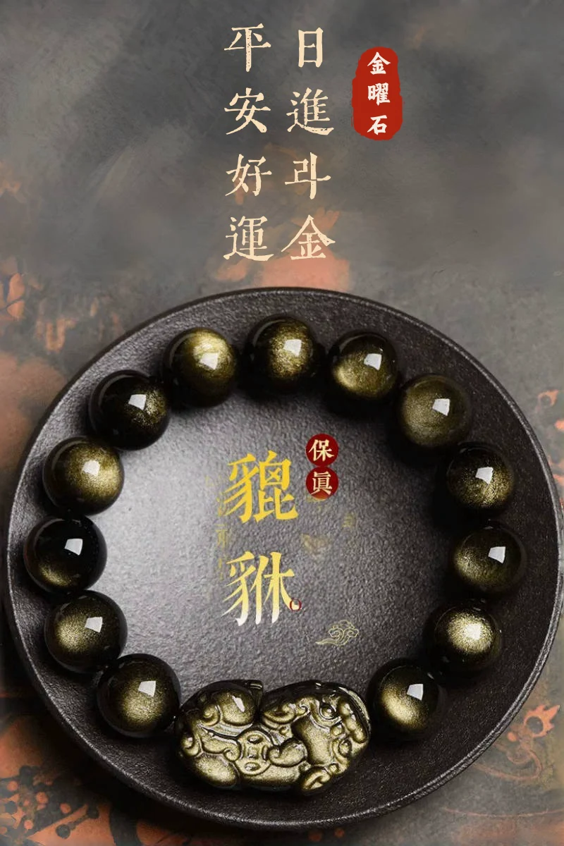 日進抖金 | 平安好運 | 天然金曜石貔貅手鍊 | 冰島寶石級曜石原礦 | 財源廣進 | 招財進寶 | 2025開運招財水晶能量金曜石貔貅手鍊