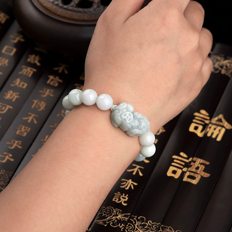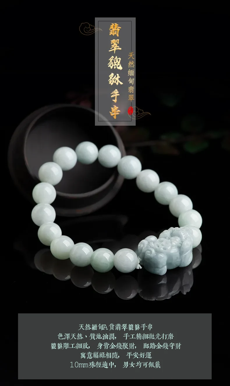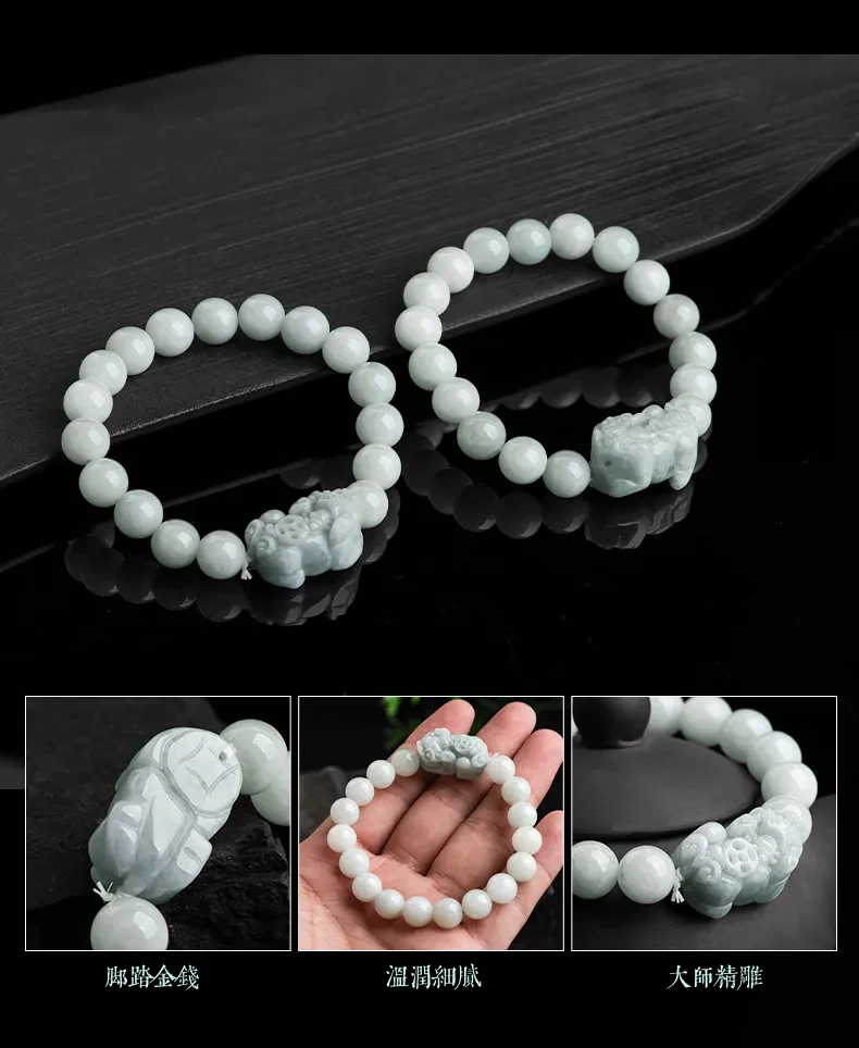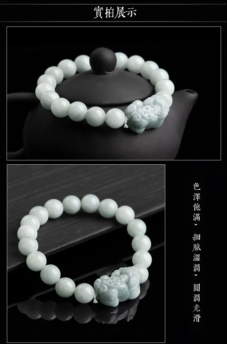 招財開運 | 福瑞相隨 | 天然緬甸翡翠貔貅手鍊 | 飽滿細膩 | 圓潤光滑 | 立體精雕瑞獸貔貅 | 2025開運聚財天然翡翠招財貔貅手鍊手串