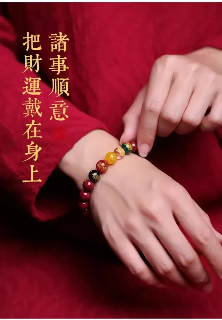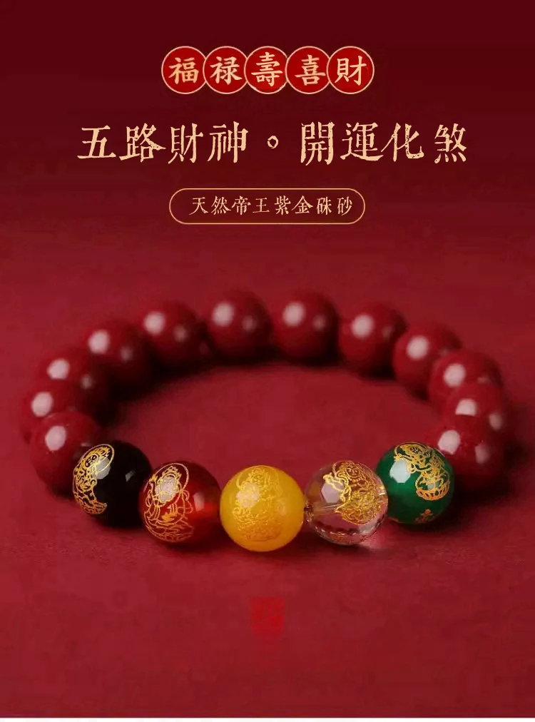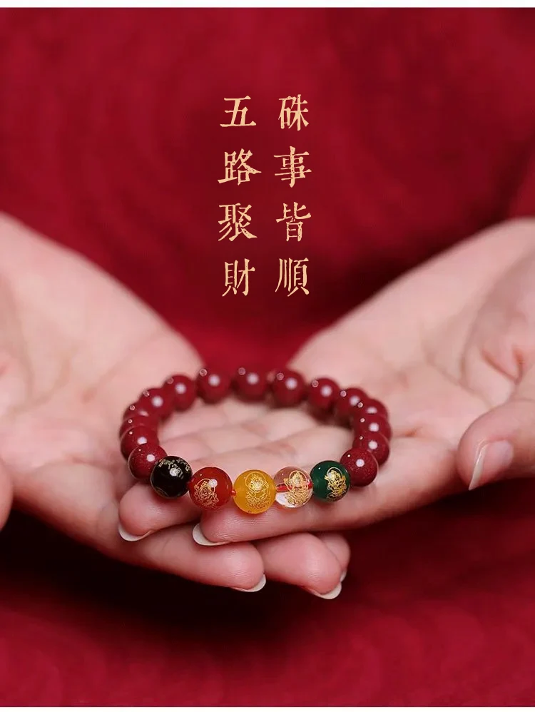 順風順水順財神 | 五路財神 | 天然帝王紫金硃砂手鍊 | 五色瑪瑙財神珠 | 五路聚財 | 2025硃事順意開運納福天然瑪瑙硃砂手鍊