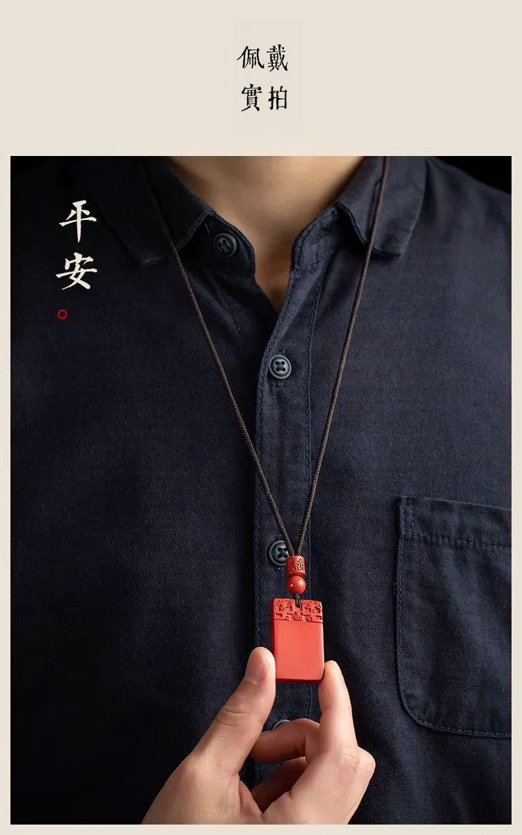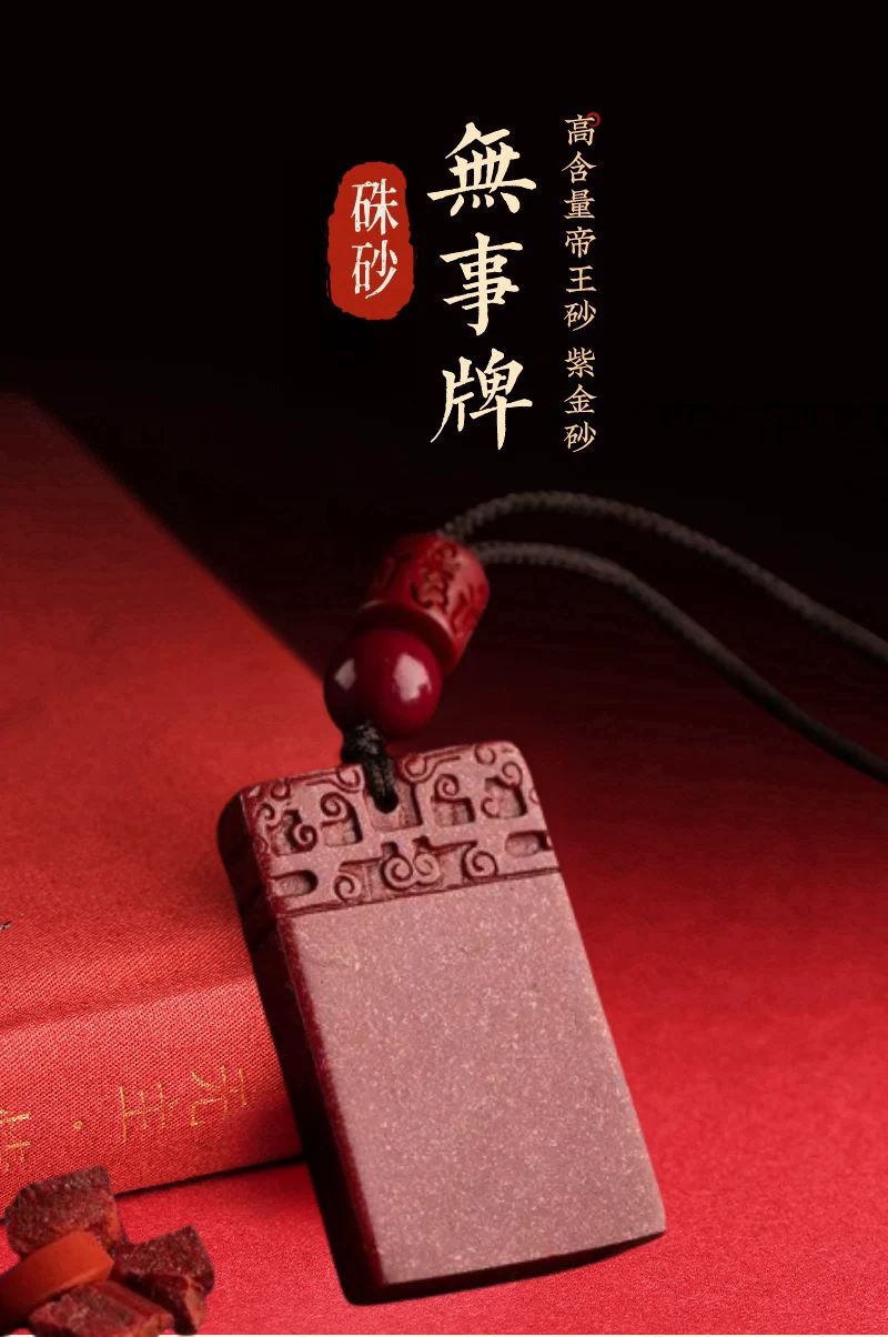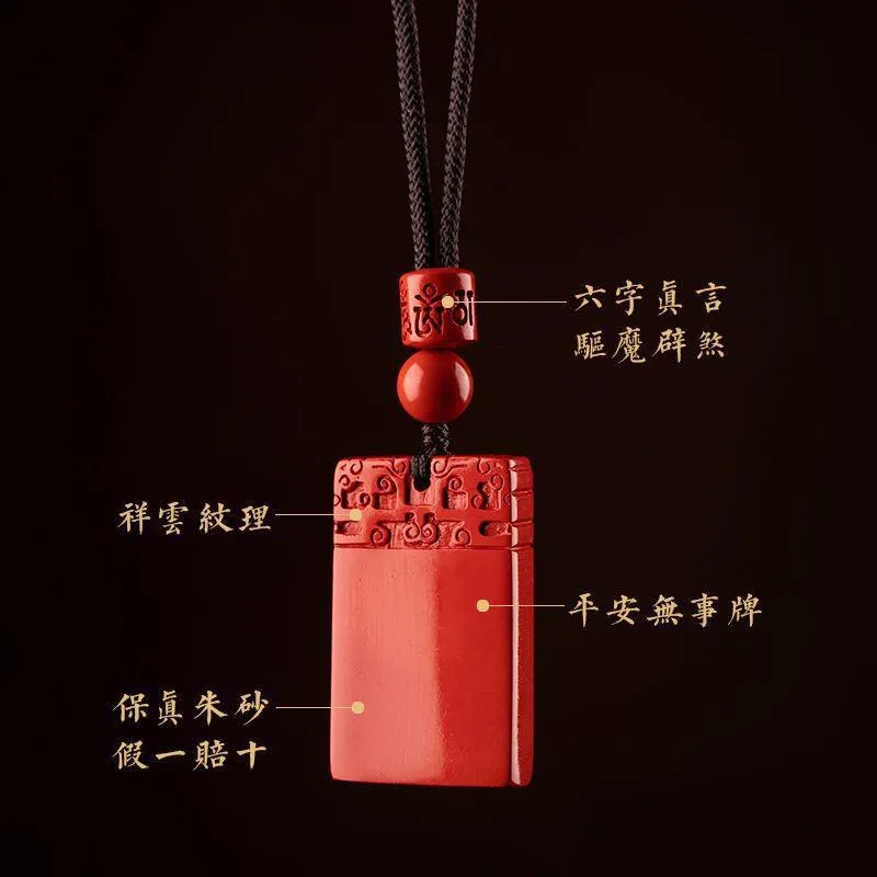 平安無事 | 諸事順遂 | 天然硃砂平安無飾牌吊墜項鍊 | 收藏級帝王紫金正紅硃砂 | 六字真言 | 祥雲紋理 | 2025平安順遂天然硃砂平安無事牌項鍊