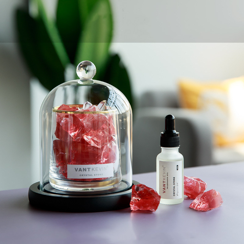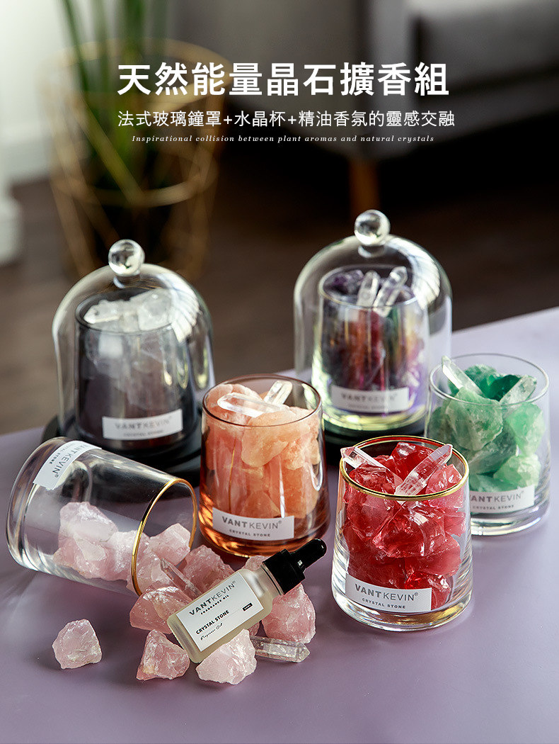 【奢級玻璃鐘罩水晶杯擴香組】【天然能量紅水晶】【贈送20ml天然植物精油】法式輕奢手工玻璃罩水晶杯天然能量水晶擴香石無火精油擴香組