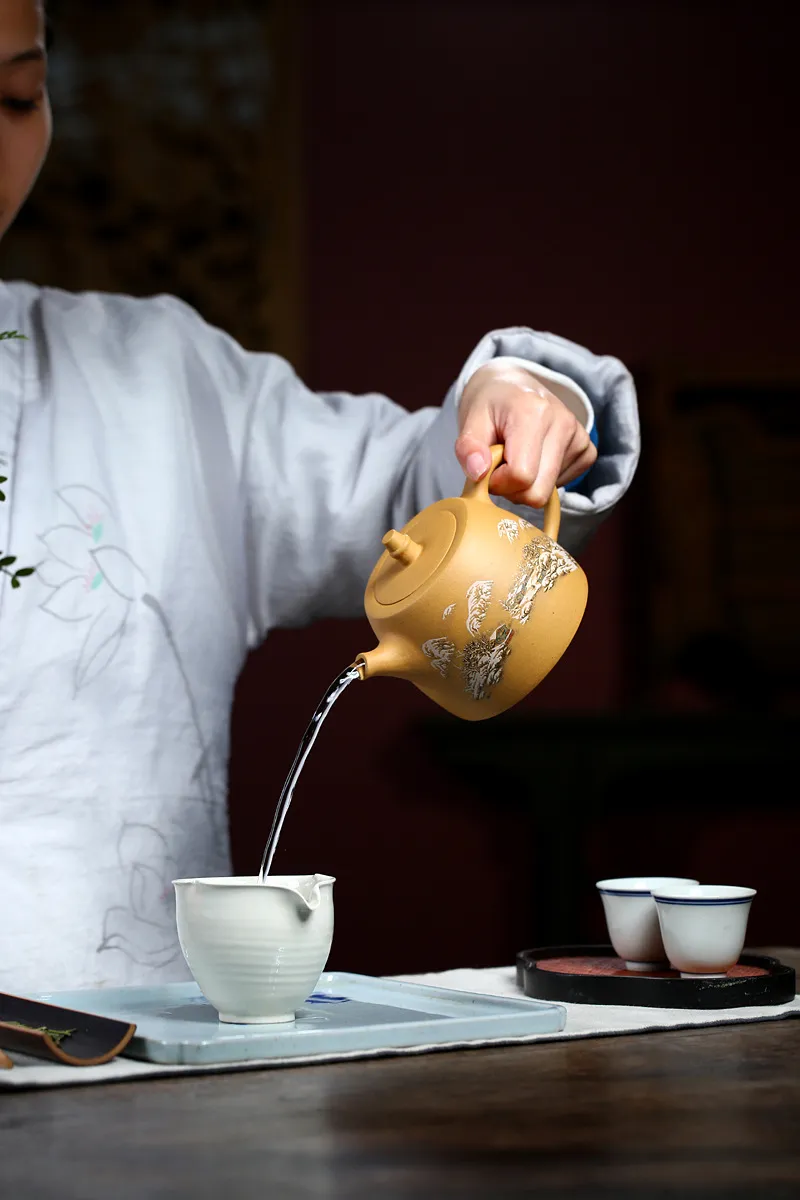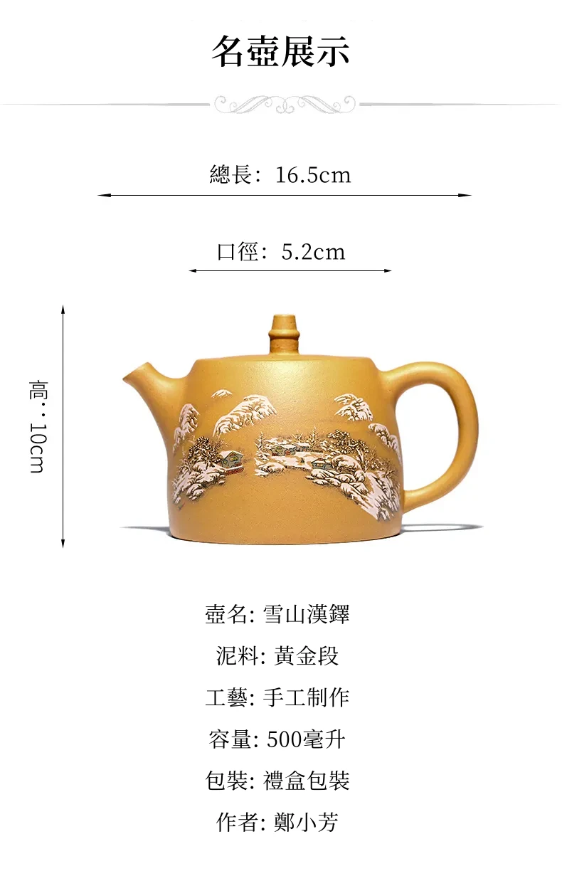 名壺雪山漢鐸 | 鄭小芳製 | 古法手工泥繪 | 原礦黃金段泥 | 印鑒俱全 | 溫潤莊重 | 質樸自然 | 宜興名家手製原礦紫砂茶壺手工紫砂壺