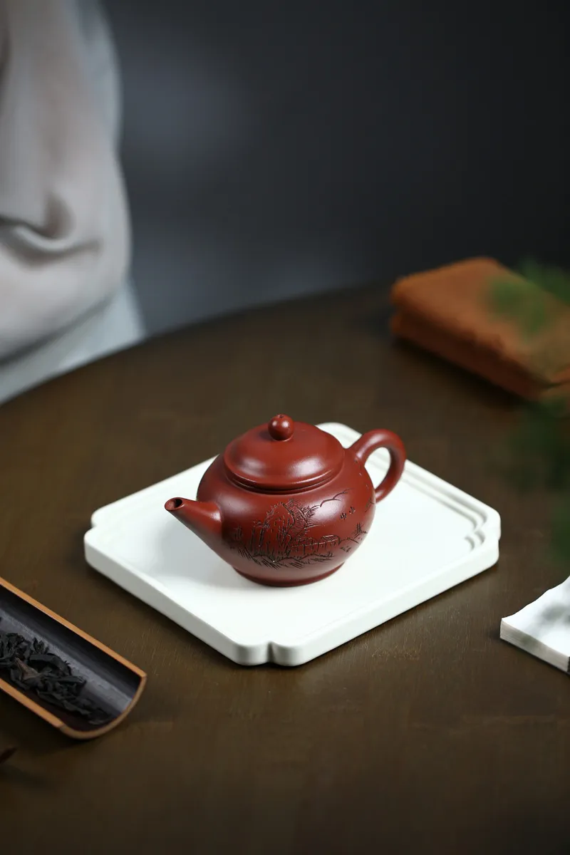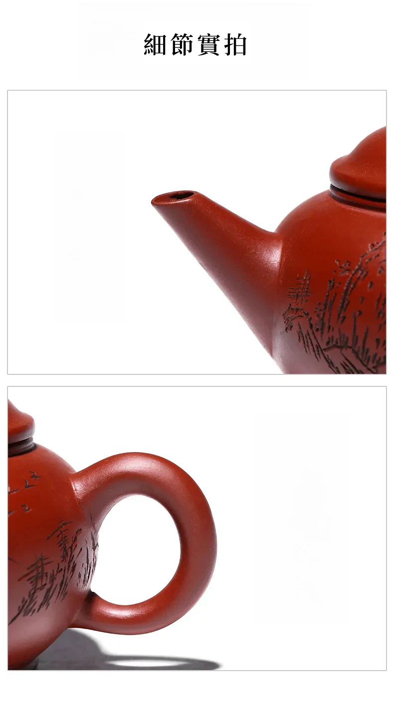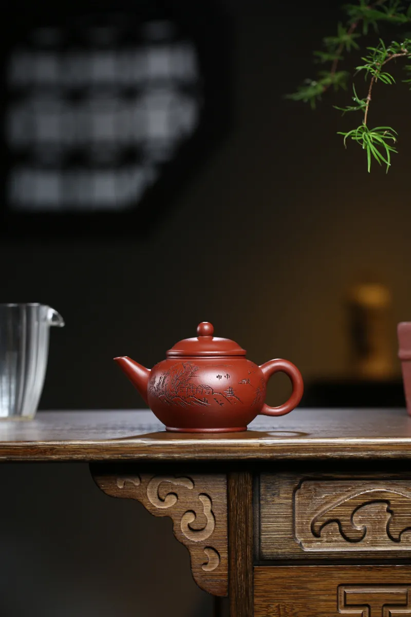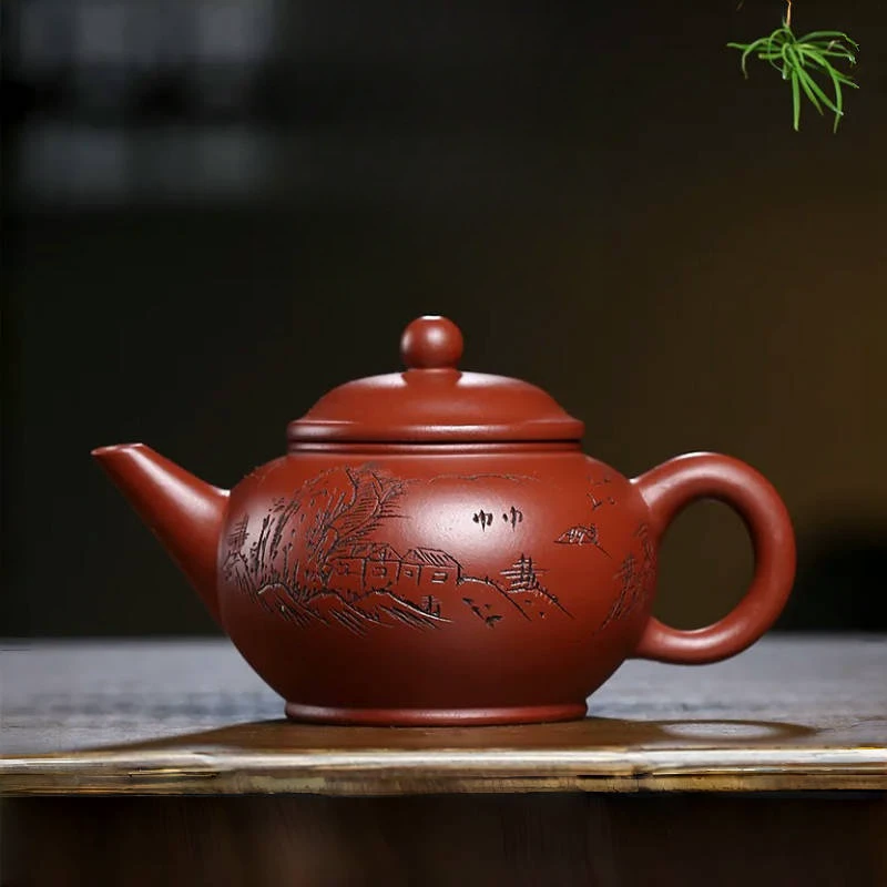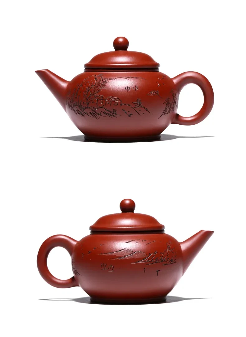 名壺山景水平 | 張繼麗製 | 古法全手工泥繪 | 原礦大紅袍泥料 | 印鑒俱全 | 圓潤飽滿 | 素雅古韻 | 宜興名家手製原礦紫砂茶壺手工紫砂壺