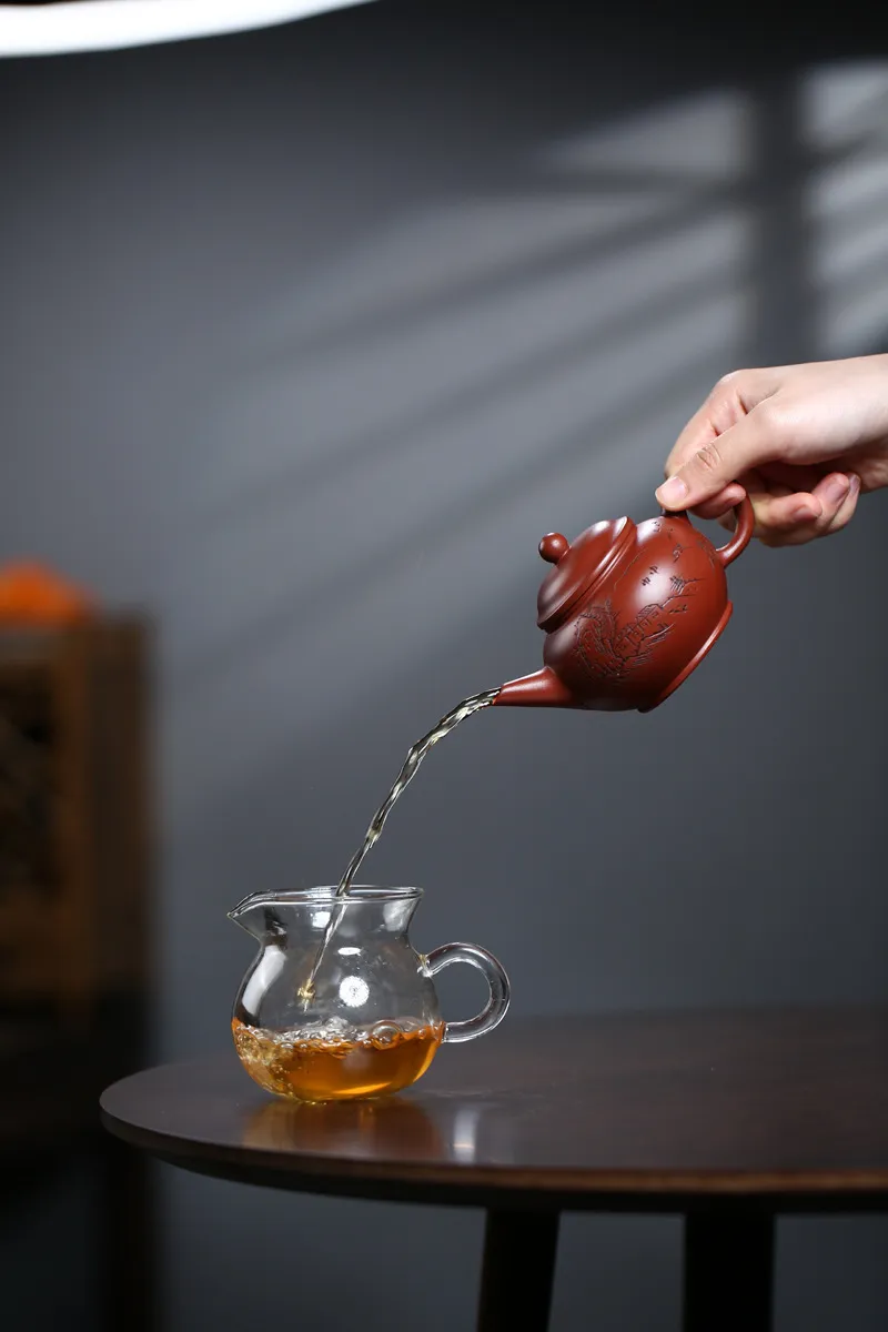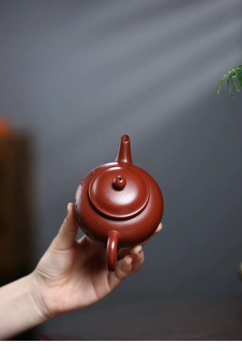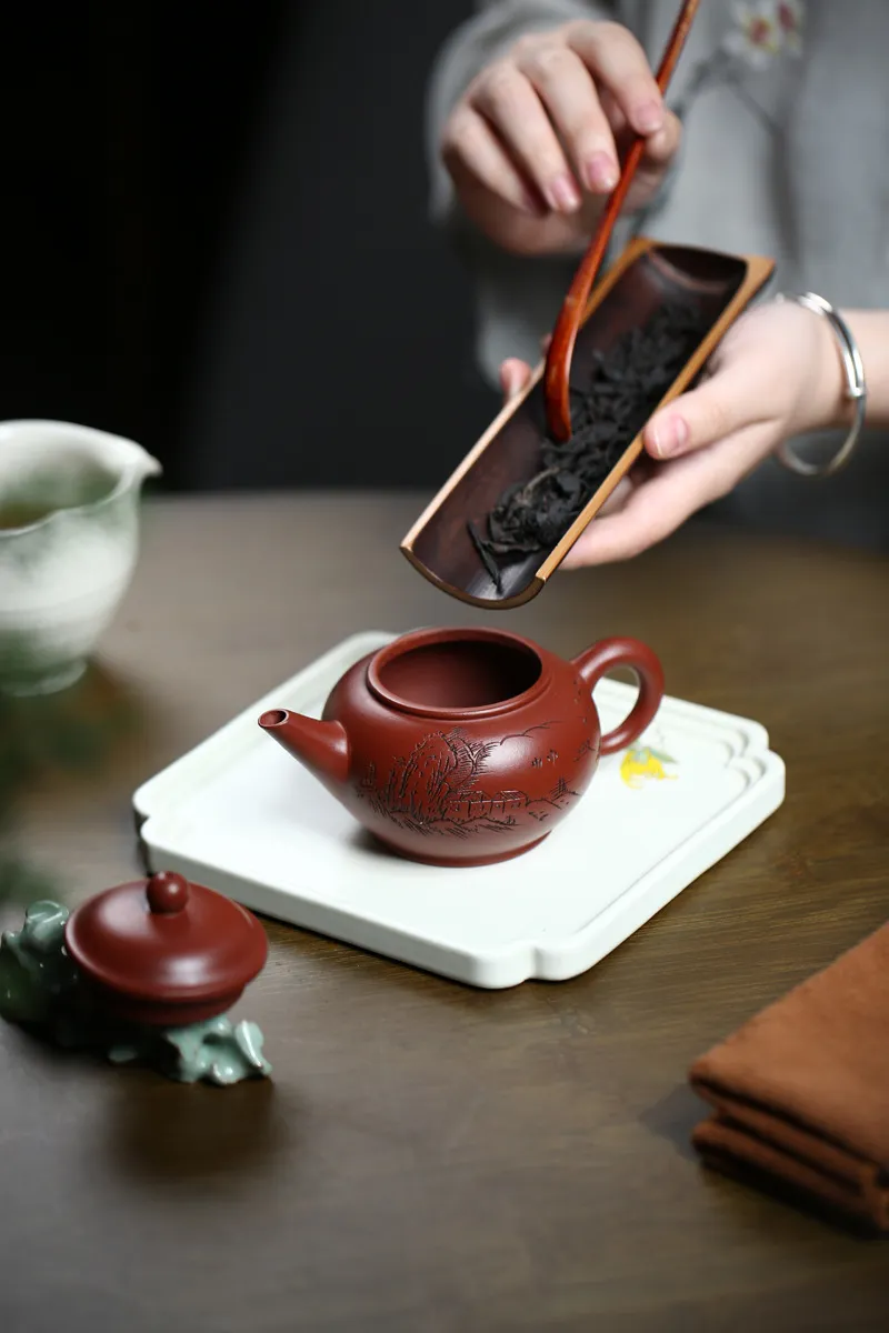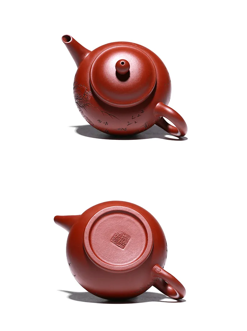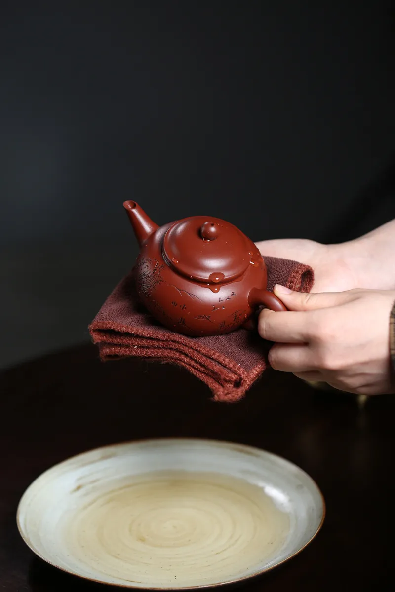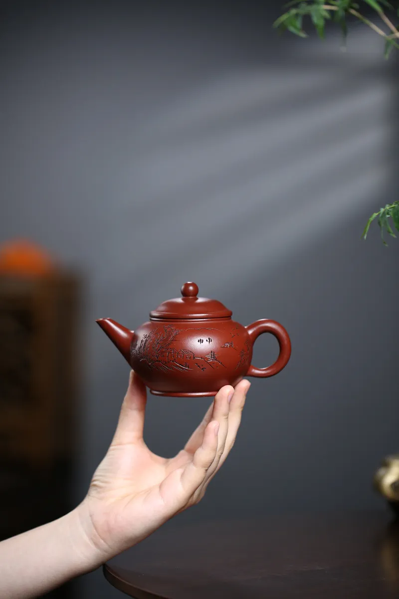 名壺山景水平 | 張繼麗製 | 古法全手工泥繪 | 原礦大紅袍泥料 | 印鑒俱全 | 圓潤飽滿 | 素雅古韻 | 宜興名家手製原礦紫砂茶壺手工紫砂壺