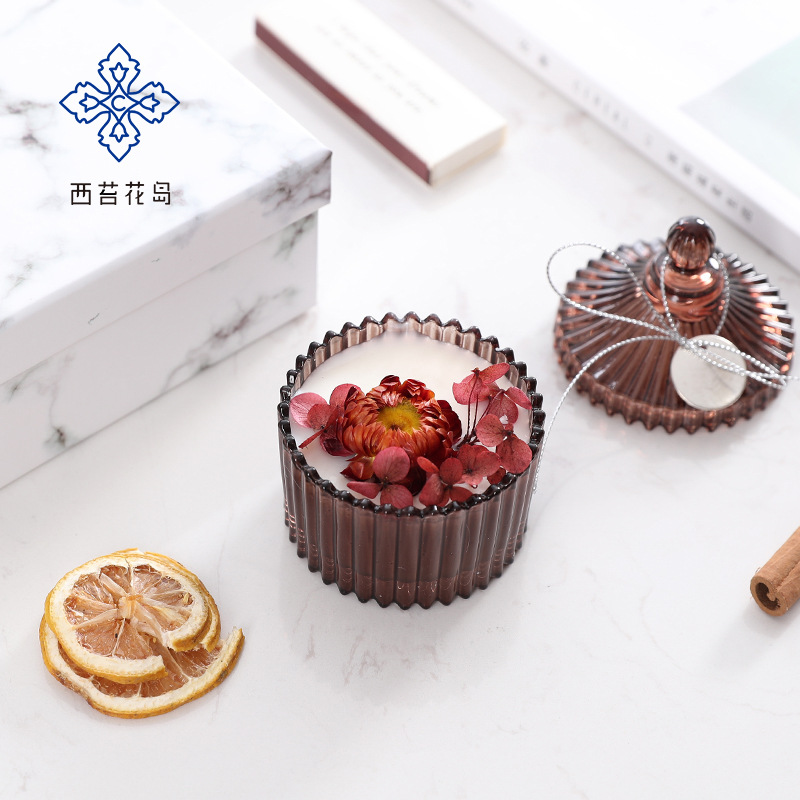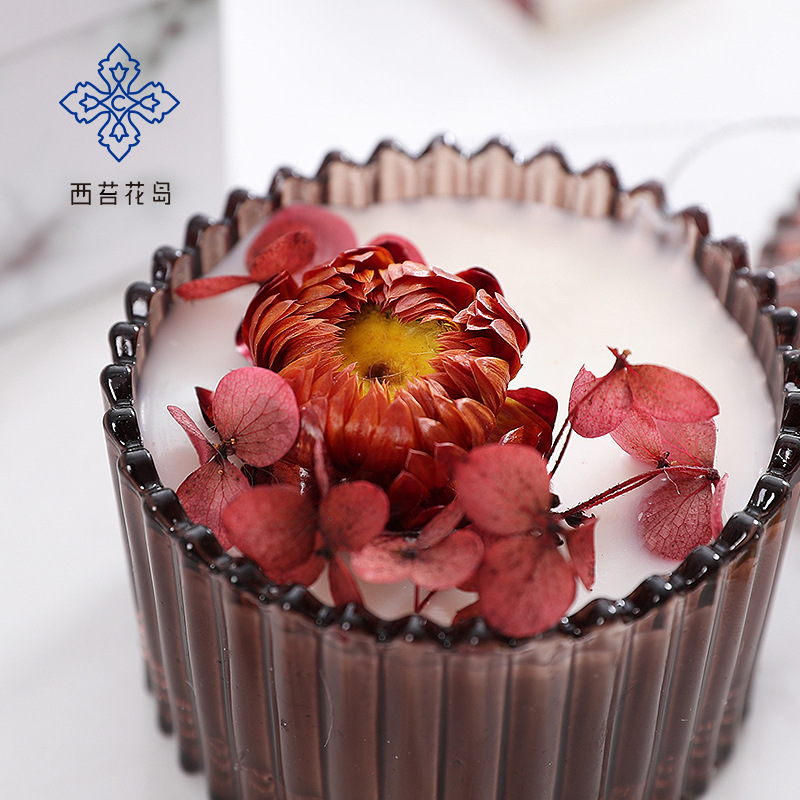 【買一贈一】【鳳梨菊香氛蠟燭】【植物大豆蠟】【紫羅蘭香型】英式杯裝永生菠蘿菊乾燥花大豆蠟香氛蠟燭禮盒