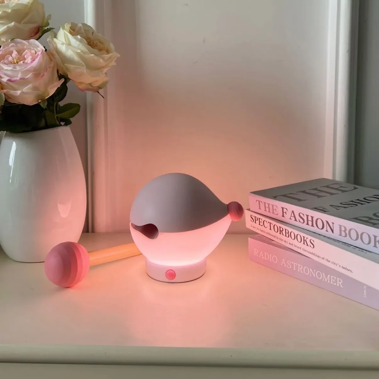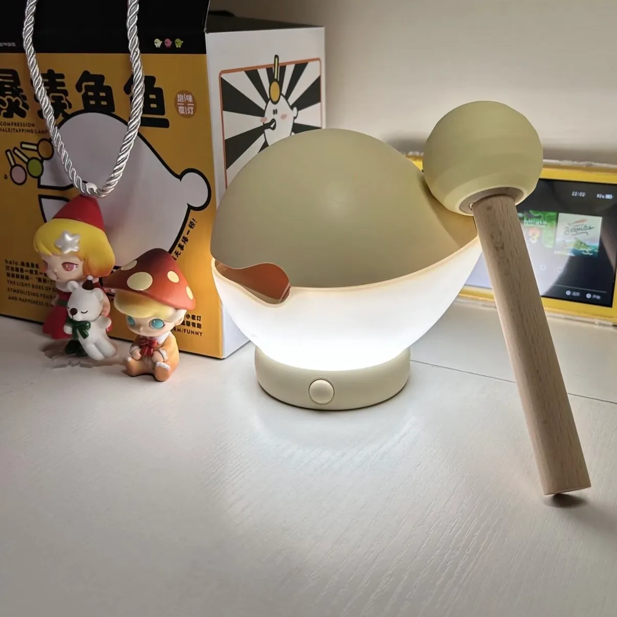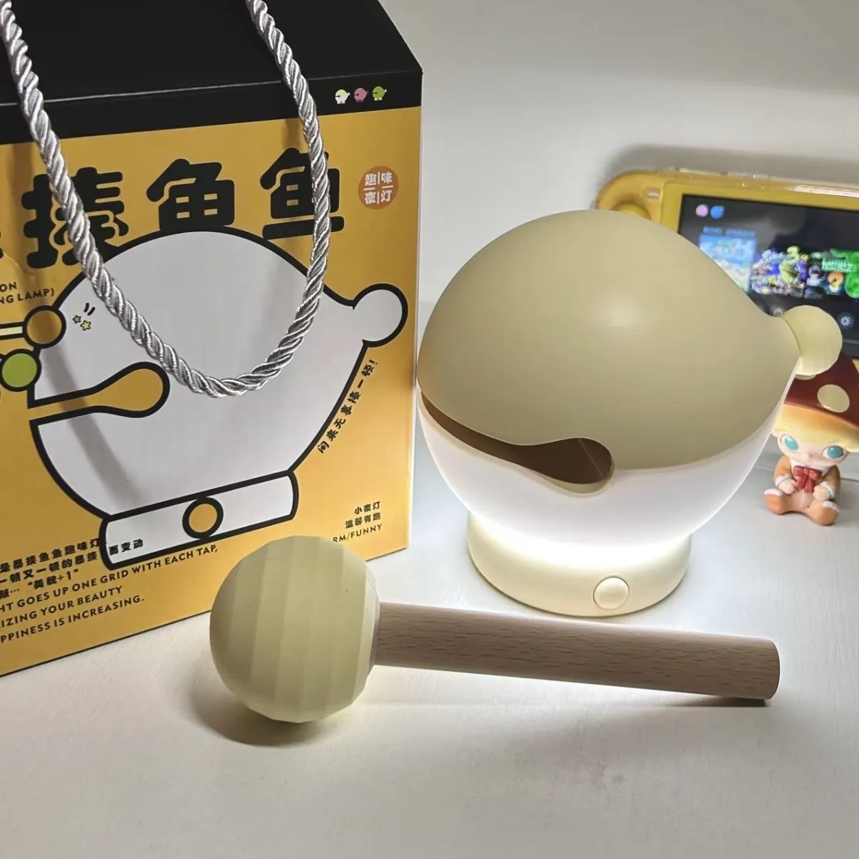 電子功德敲敲木魚紓壓小夜燈 | 三檔調光敲擊換檔 | 軟綿木槌手感超好 | 圓潤外觀順滑好摸 | 搞笑療愈送男女生日畢業交換禮物充電木魚小夜燈