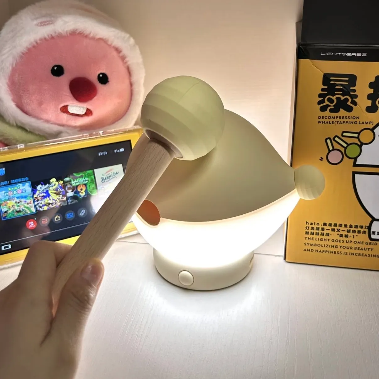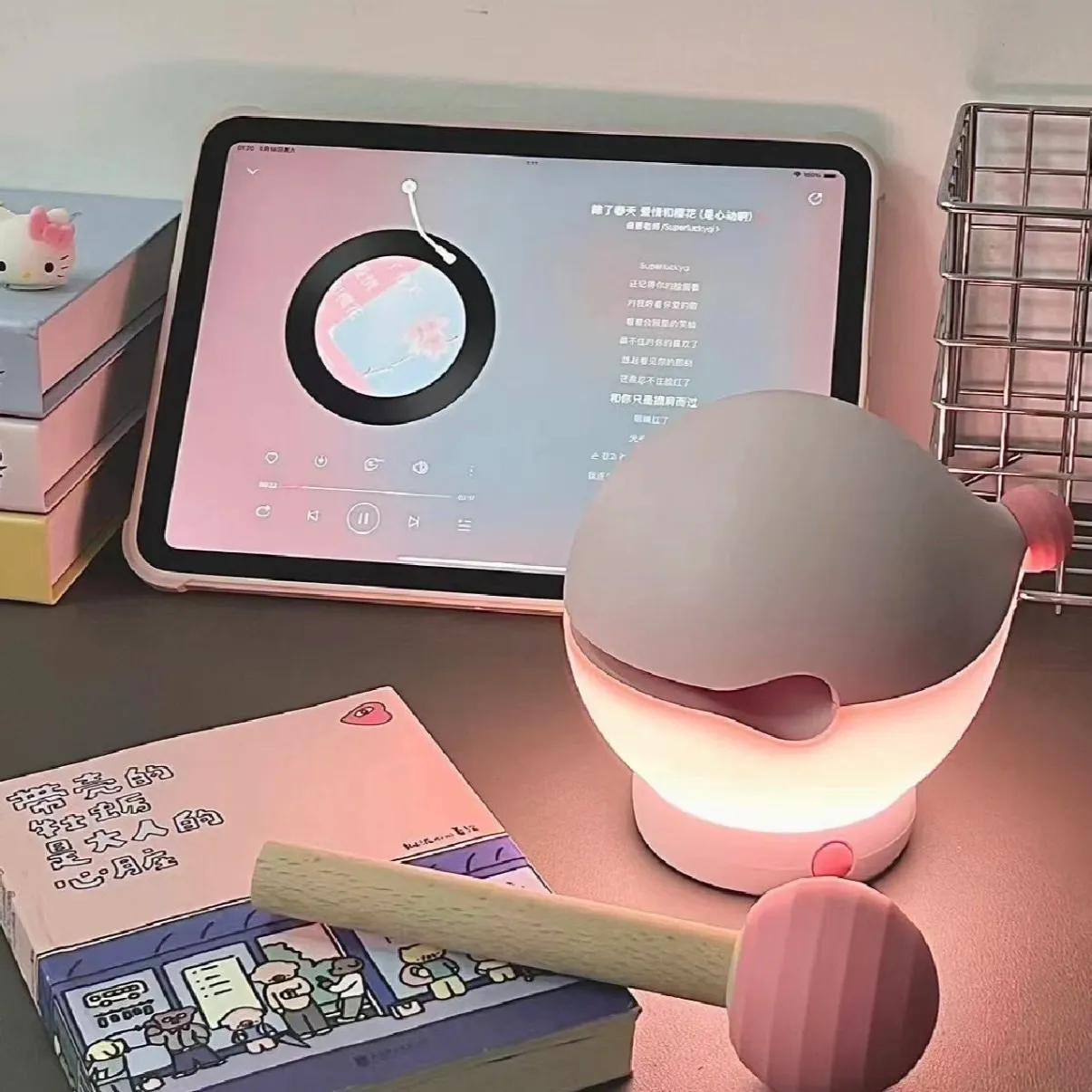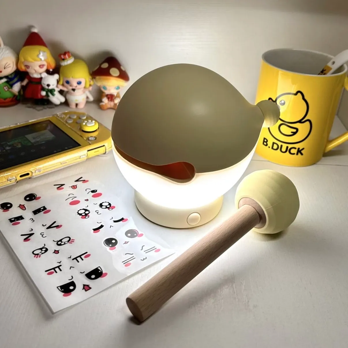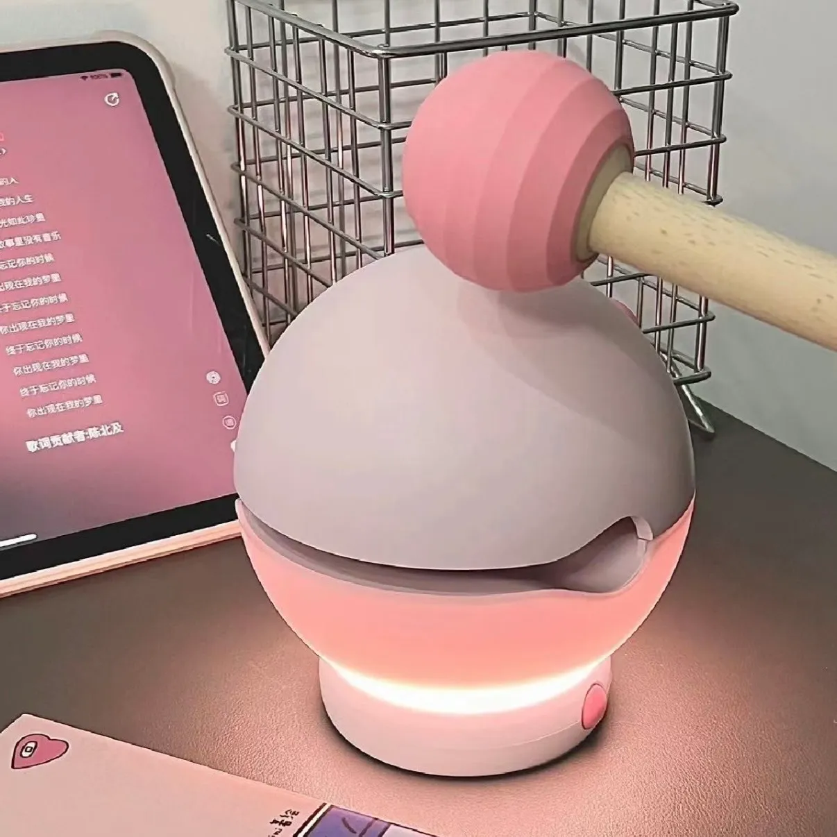 電子功德敲敲木魚紓壓小夜燈 | 三檔調光敲擊換檔 | 軟綿木槌手感超好 | 圓潤外觀順滑好摸 | 搞笑療愈送男女生日畢業交換禮物充電木魚小夜燈