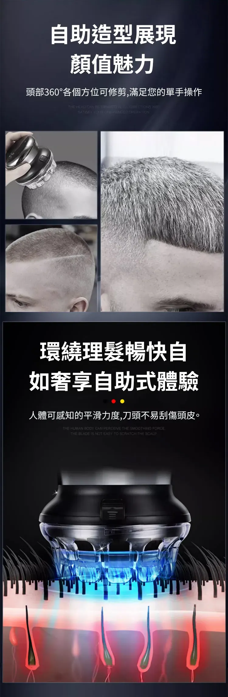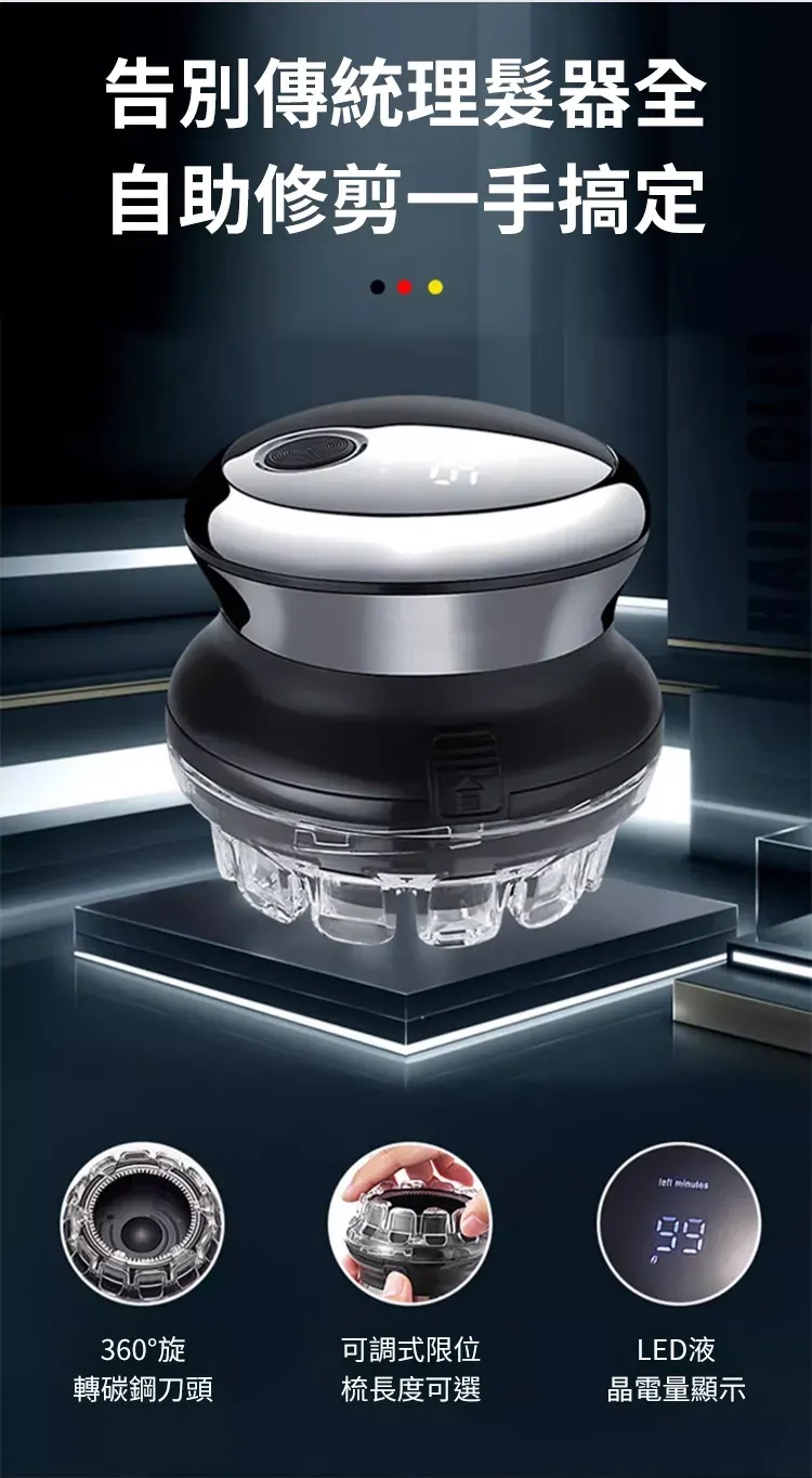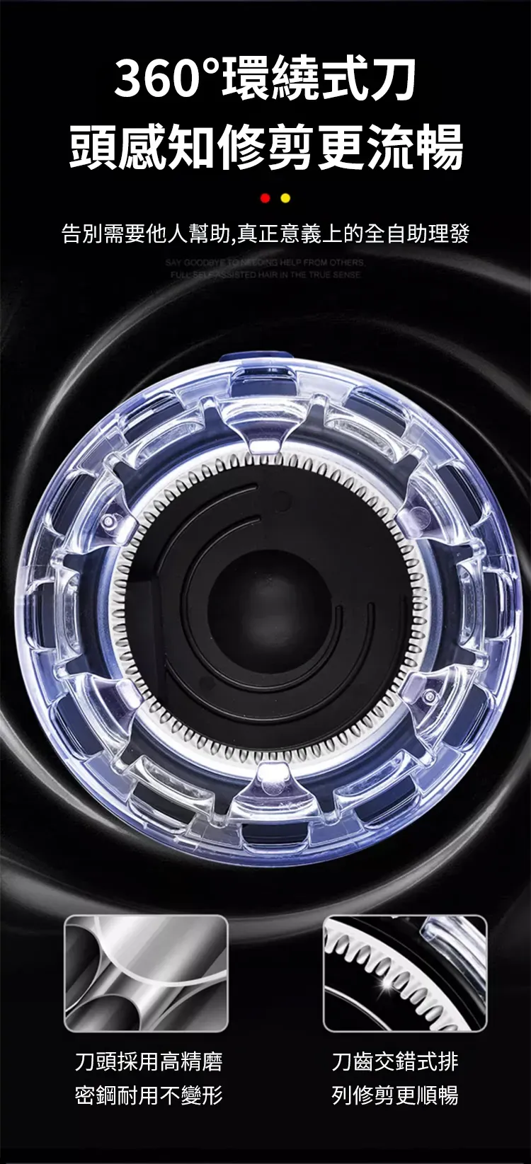 秒變髮型師全自助電動理髮器 | 高效安全暢快修剪 | 360度旋轉碳鋼刀頭 | 可調式限位梳極簡操作 | 60分鐘超長續航 | 奢級全自助男士理髮器