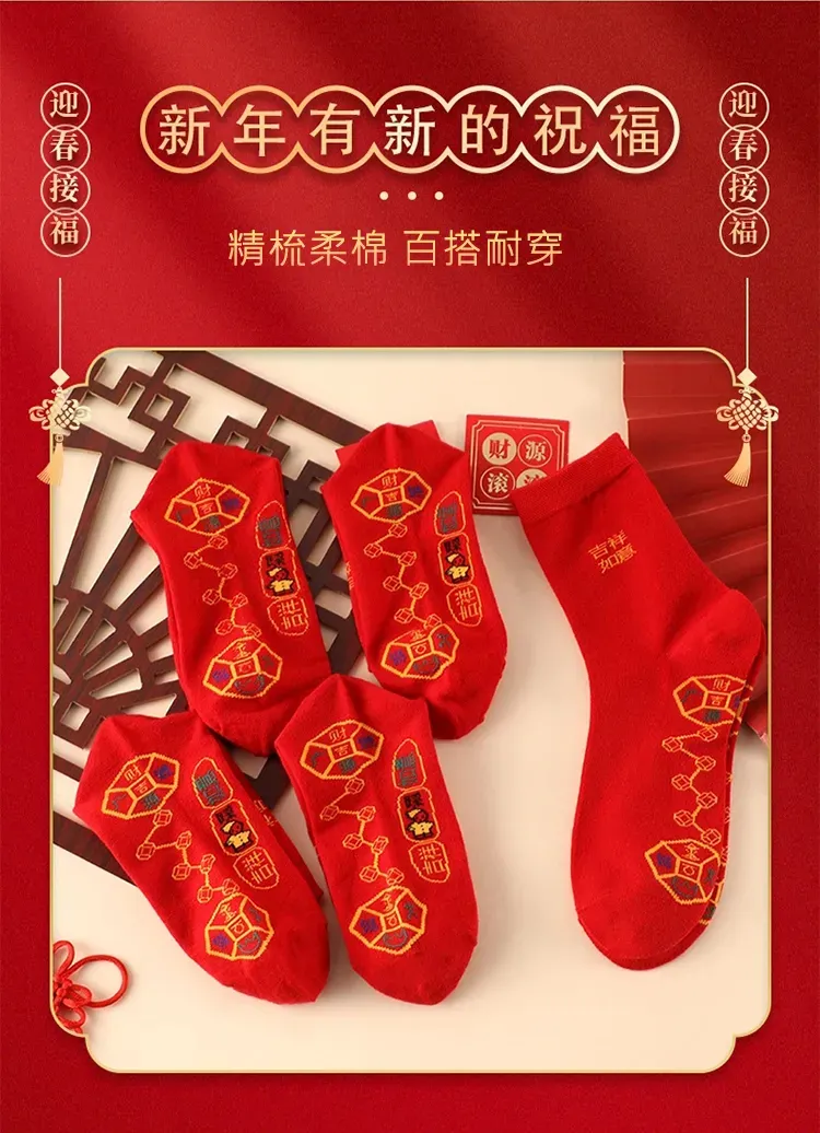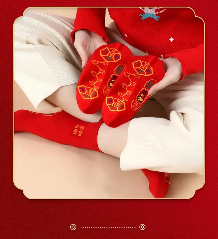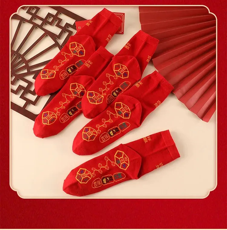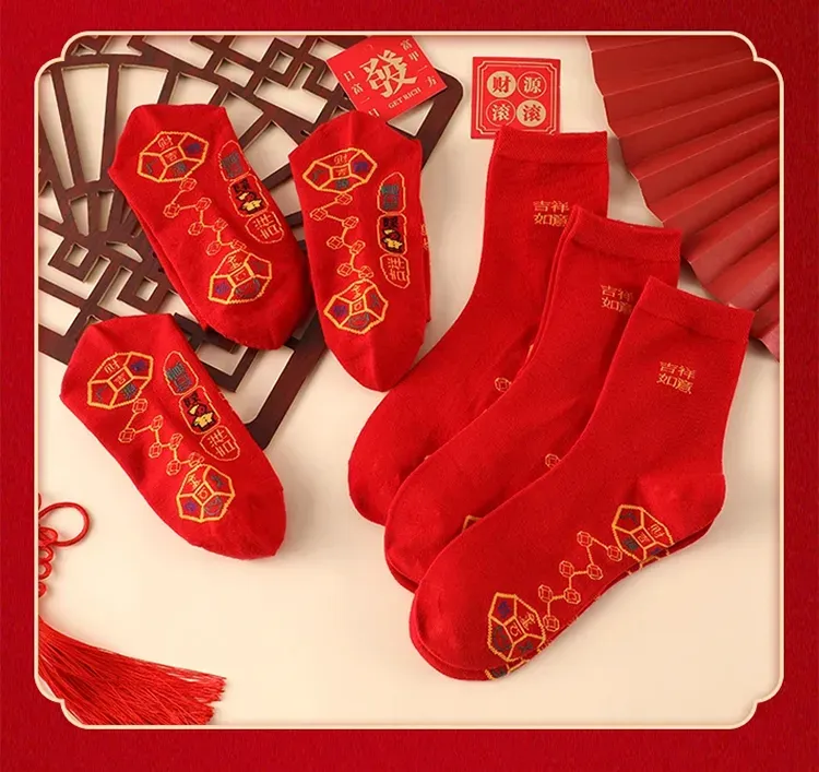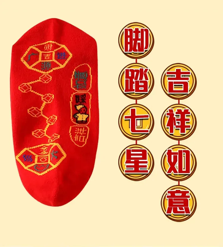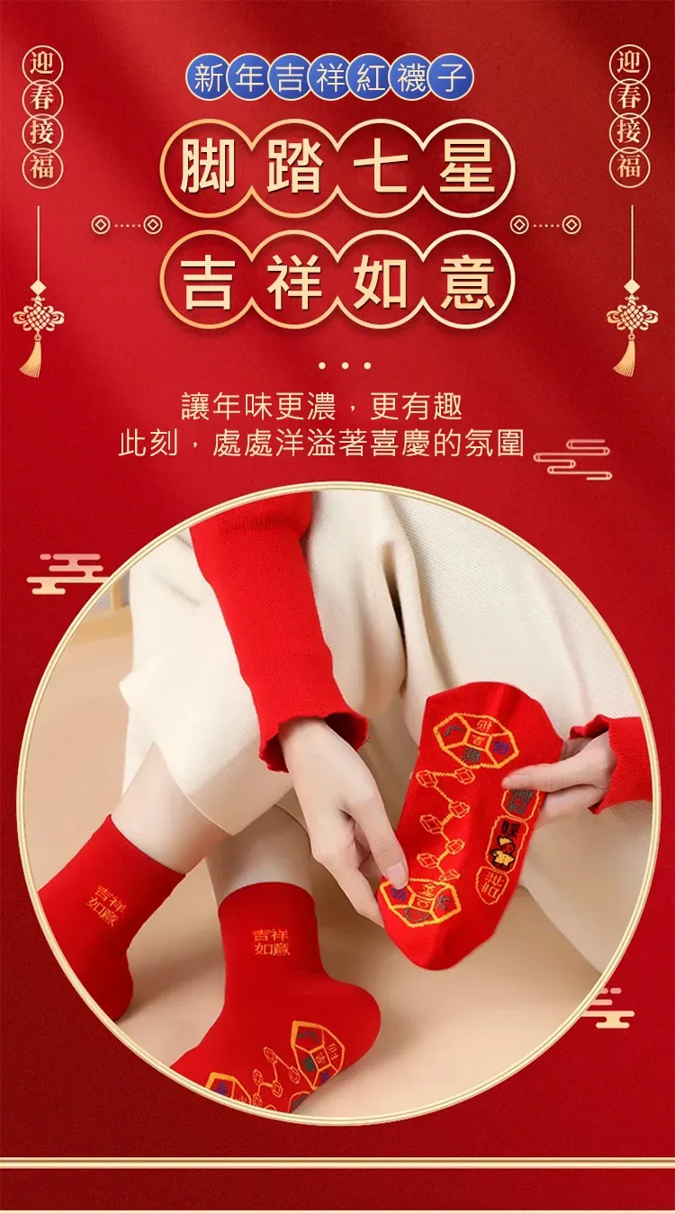 超值七雙入 | 腳踏七星吉祥如意 | 正紅開運七星刺繡 | 軟糯精梳吸汗棉質 | 透氣清爽久穿防臭 | 招財開運本命年大紅色系吉祥如意女襪子