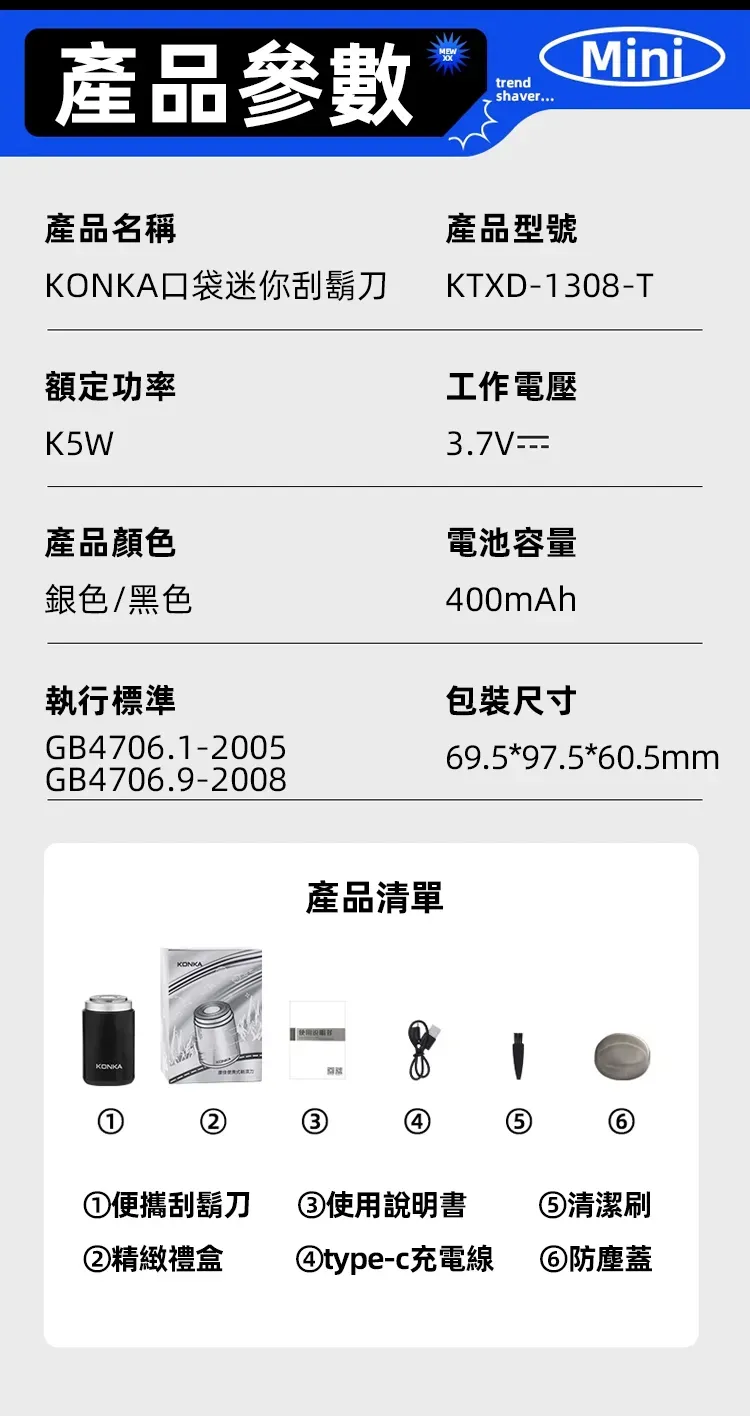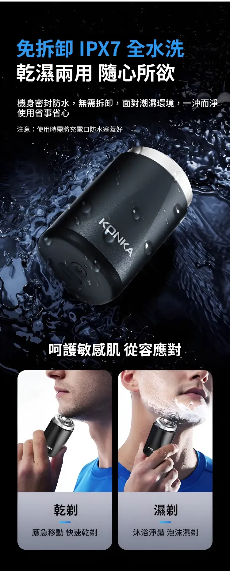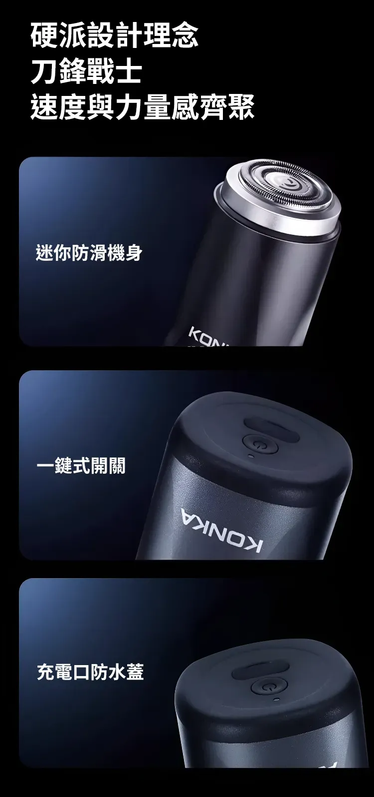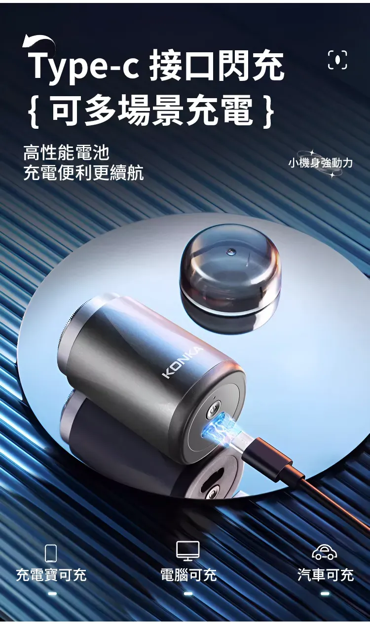 3.0無感理容智慧口袋刮鬍刀 | 精鋼15葉自研磨刀片 | 蜂巢貼面雙環刀網 | 高速馬達強勁動力 | 免拆沖洗乾濕兩用 | KONKIA不挑鬍鬚迷你電動刮鬍刀