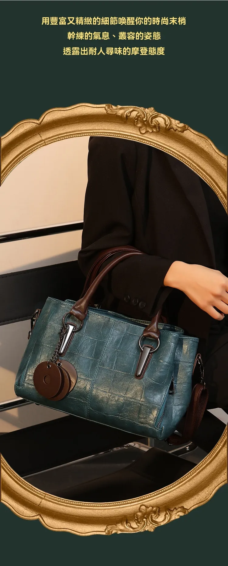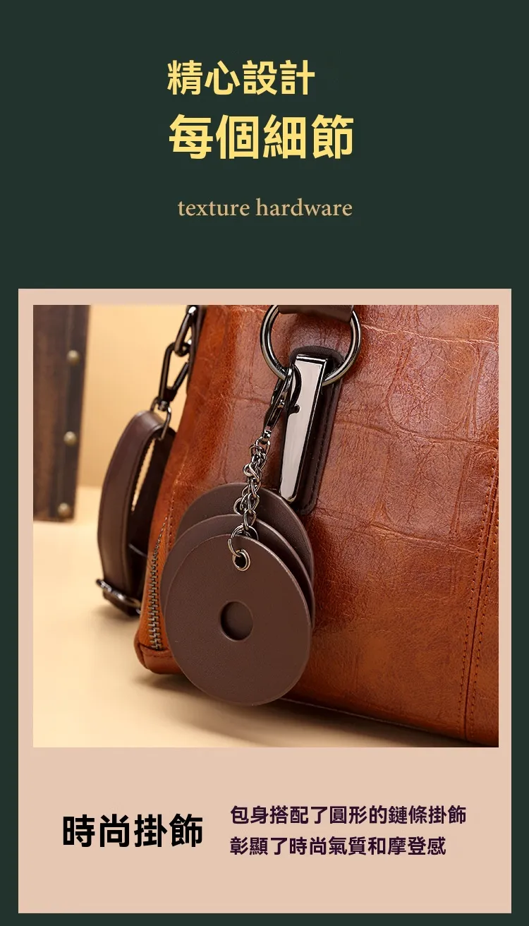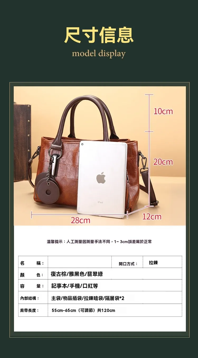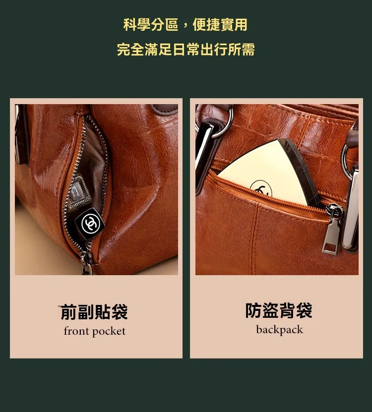 歐式古典風情油蠟皮手提側背包 | 飽滿細紋油蠟皮革 | 復古質感五金 | 科學分區好收納 | 率性實用大容量百搭油蠟皮女包手提側背斜背包
